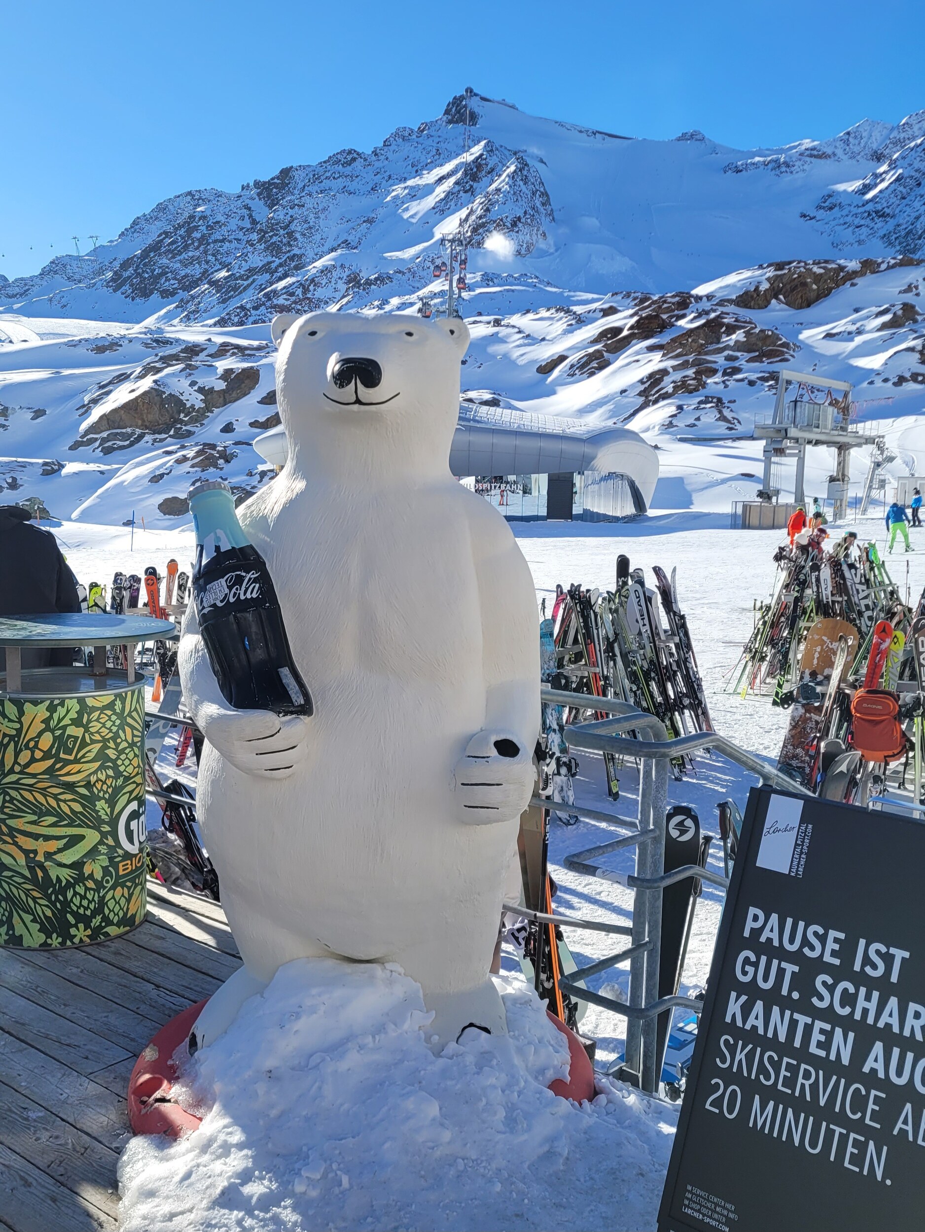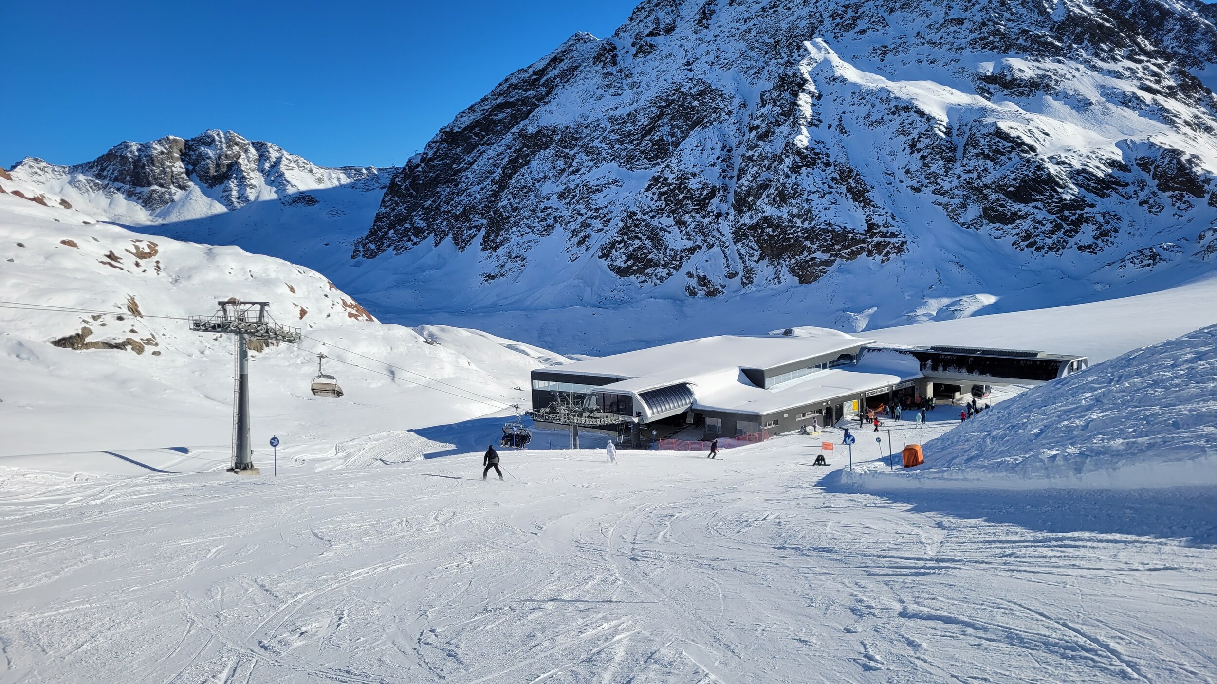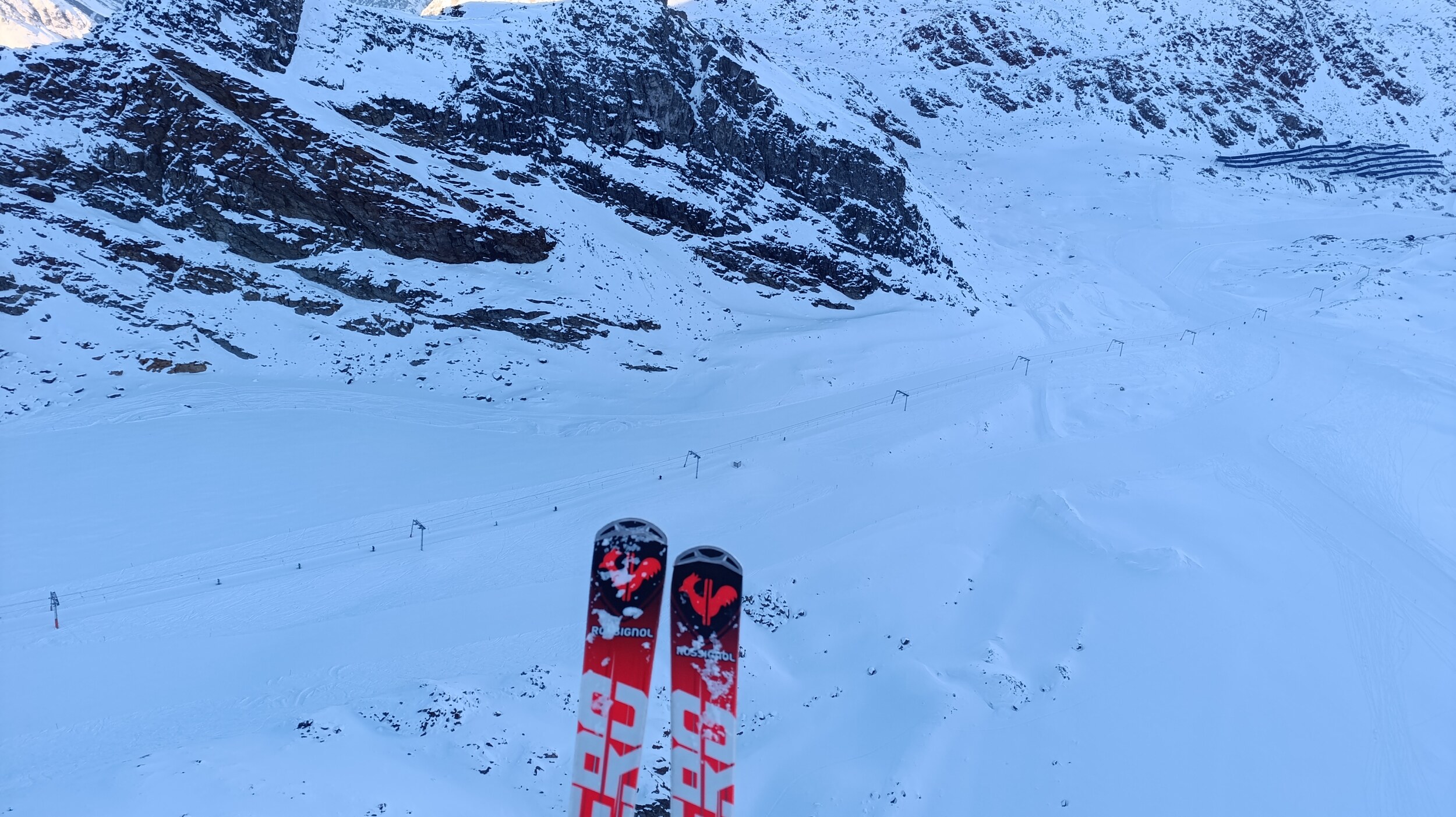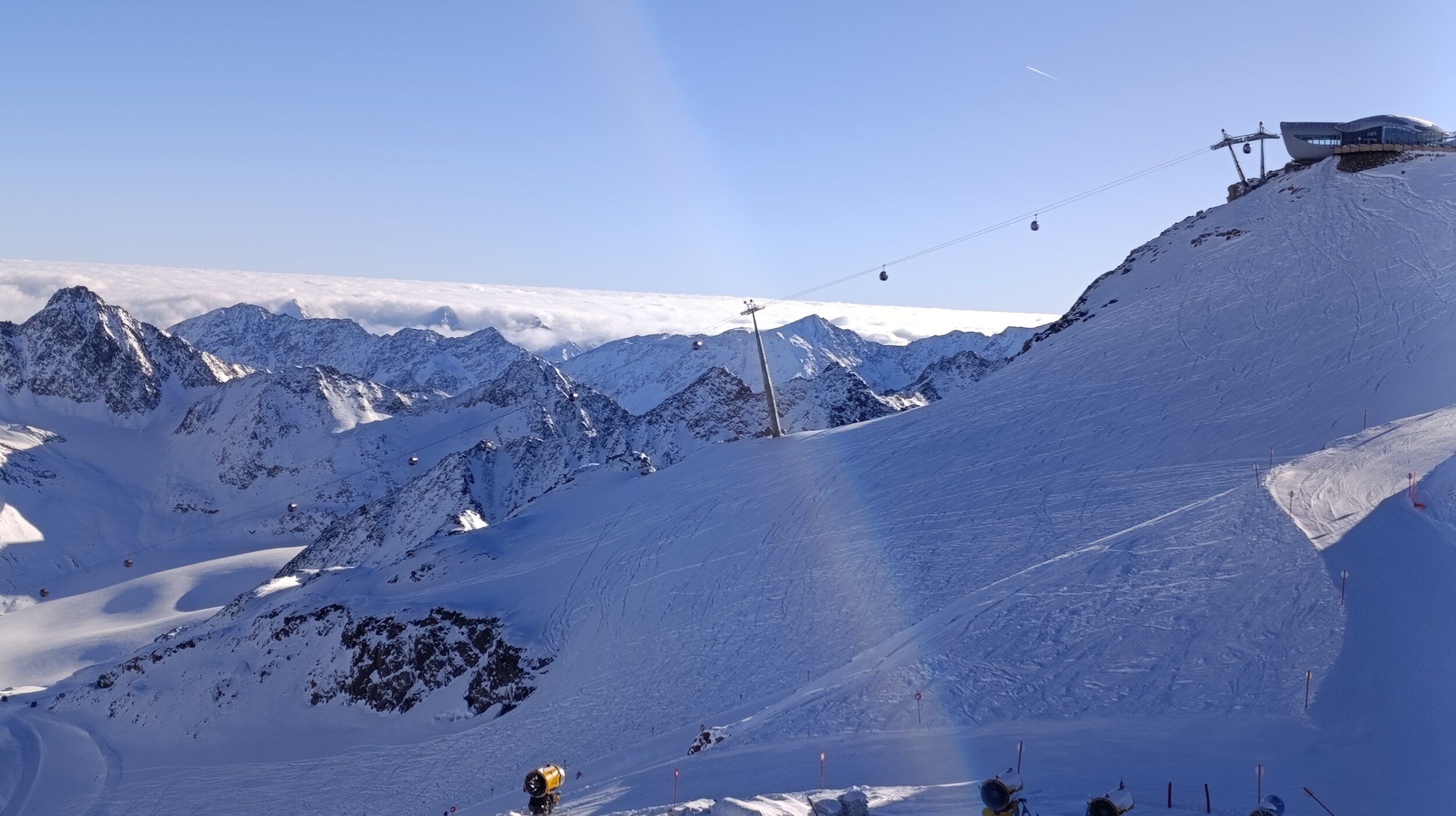 Am rifflsee ist natürlich leer, die Pisten dort halt auch zum vergessen aktuell. Am Gletscher sind die Pisten perfekt gewalzt aber noch ziemlich weich. Gut dass ich bei der Talstation vorbei gefahren bin und vom Slalom Rennski auf die all mountain gewechselt bin. Selbst mit 90er Mittelbreite fast Bootout. Mit schmalen Ski ist man heute falsch hier....