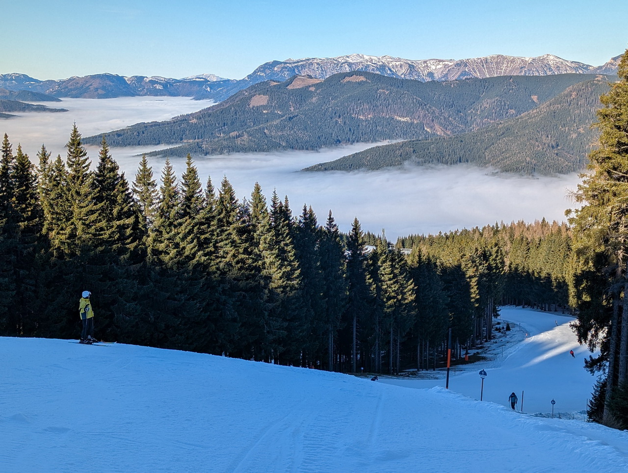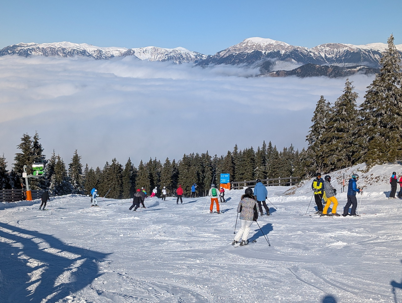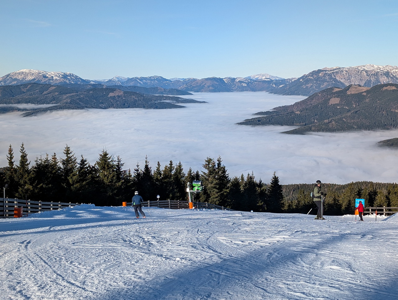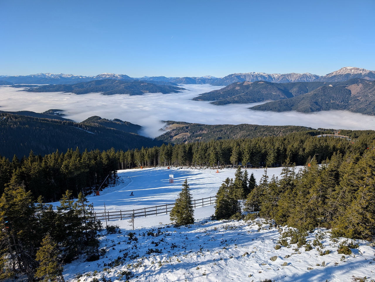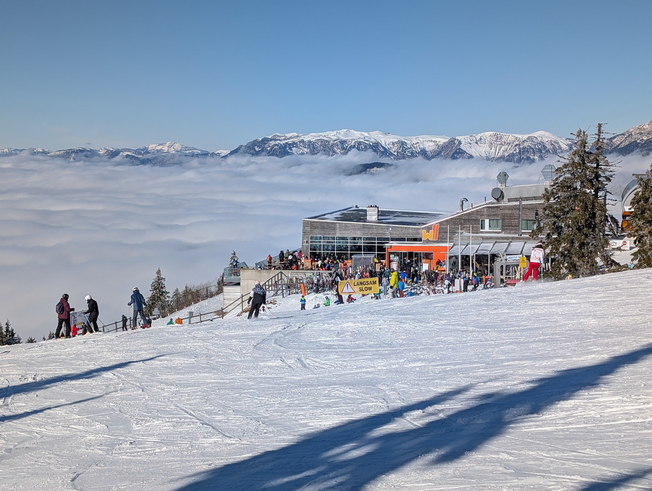 Aber ich zittere mit den Betreibern bissl um ihr Weihnachstgeschäft. Weil heute war's schon recht warm am Berg und es soll noch einige Tage so bleiben.