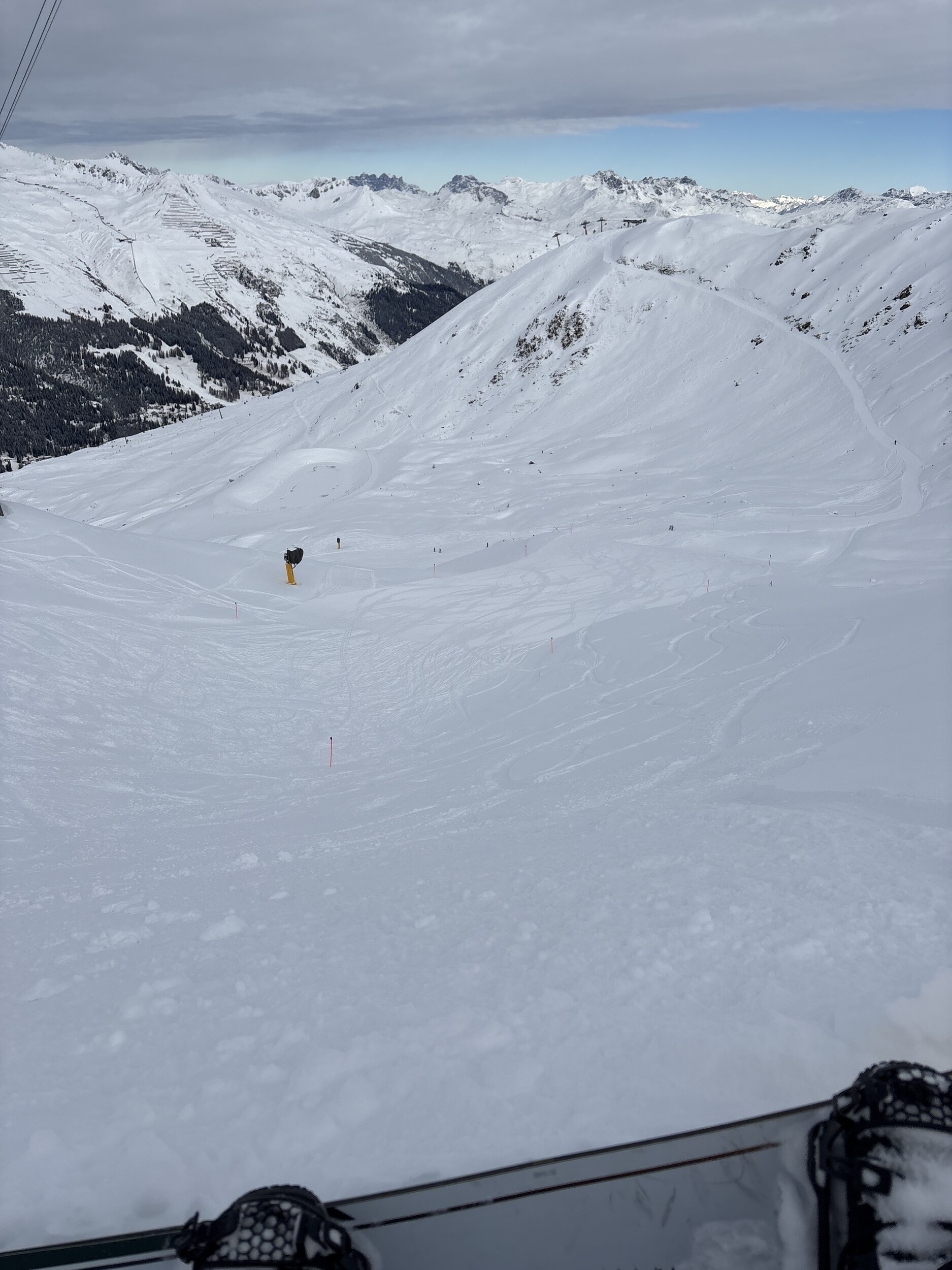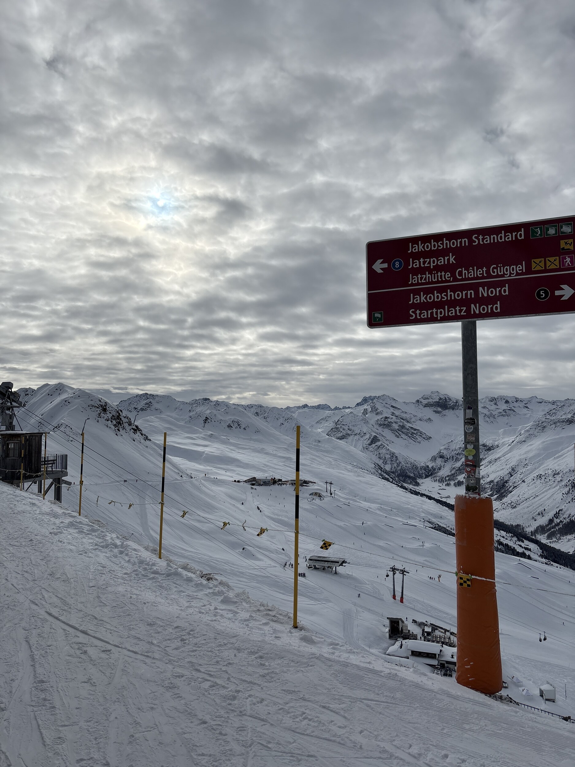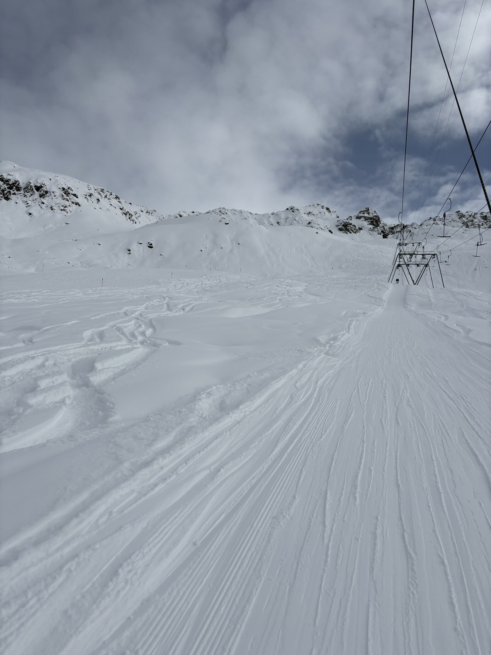 Hier noch ein paar Bilder vom Jakobshorn. Hat etwas zugezogen, Sicht ist aber noch gut. Die schwarze Piste vom Horn hatte oben viel Neuschnee, hier bin ich offpiste gefahren.