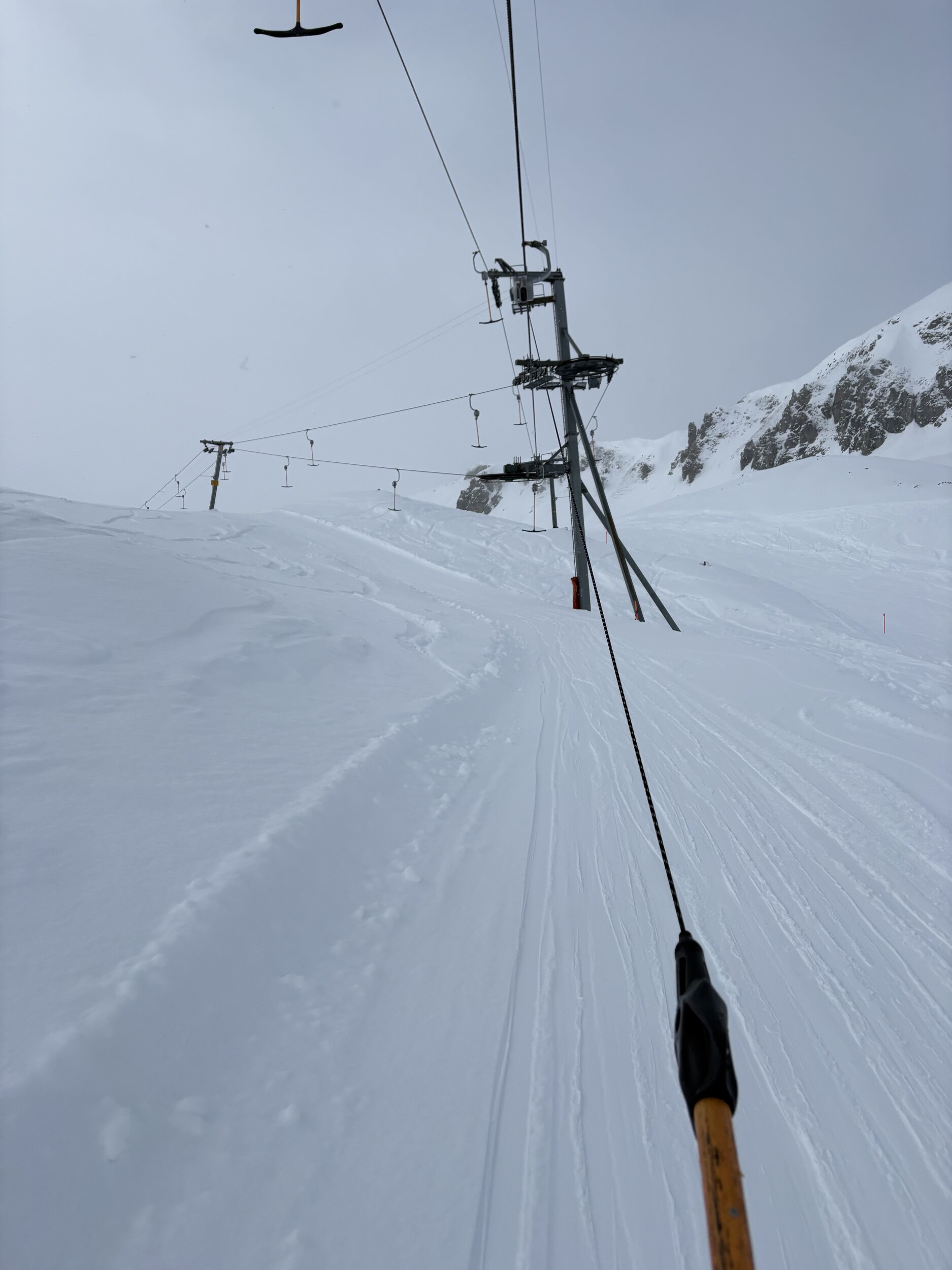 An den hinteren Liften sieht es zwar auch pulvrig aus, aber es hat noch viel durchscheinendes Gemüse.