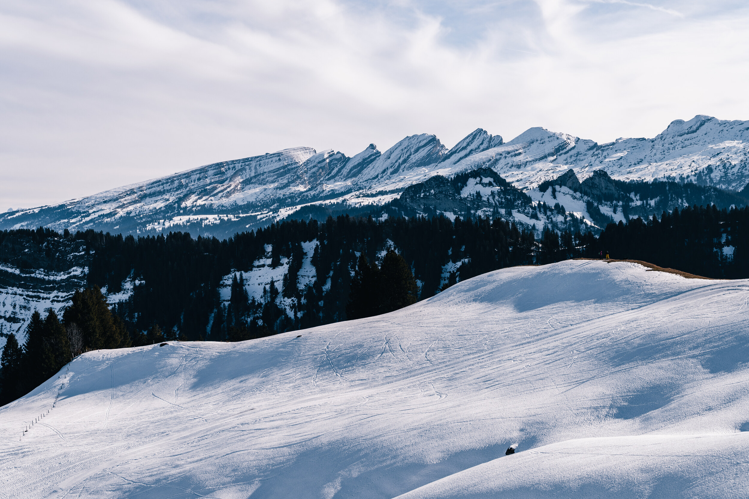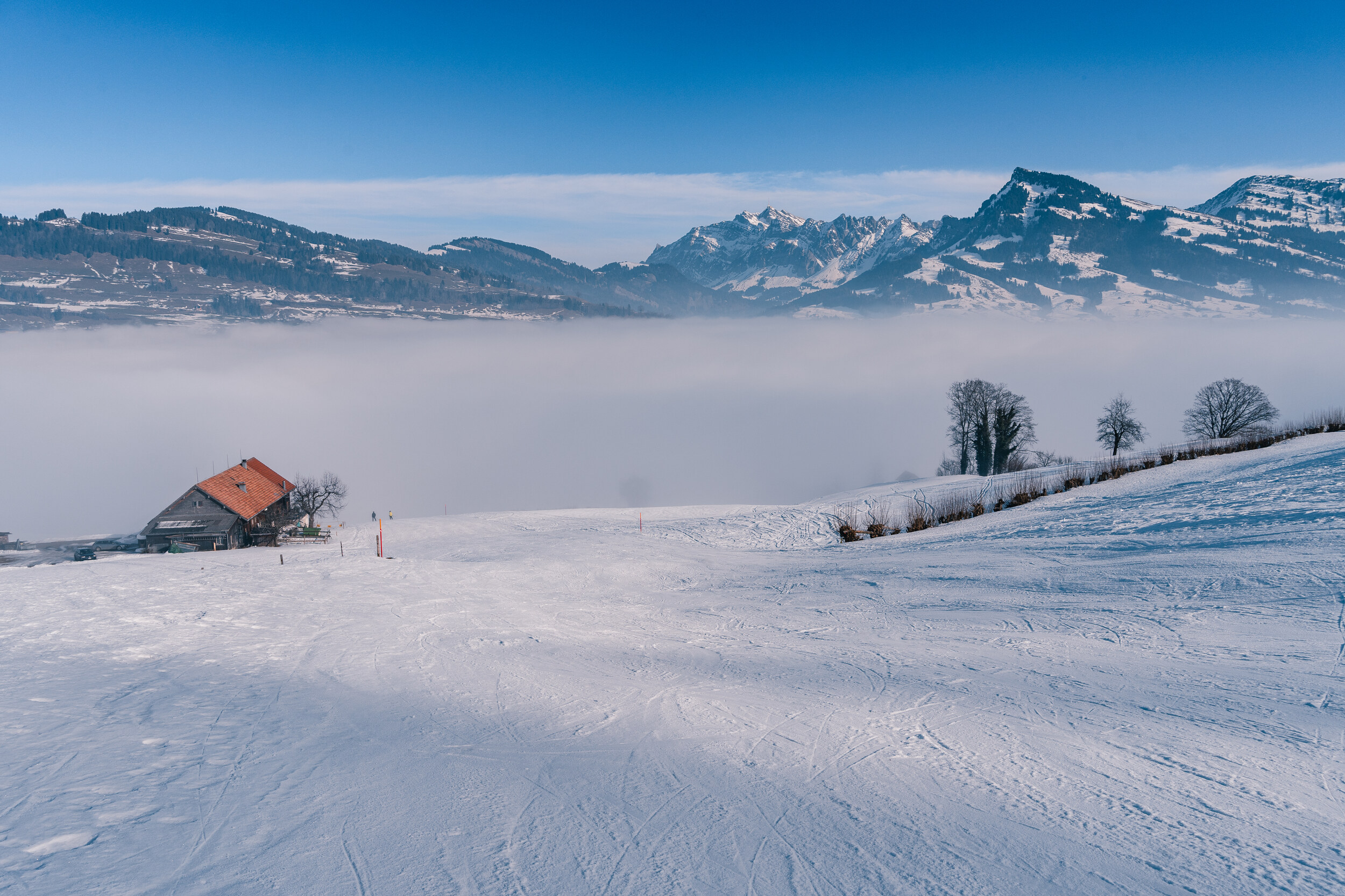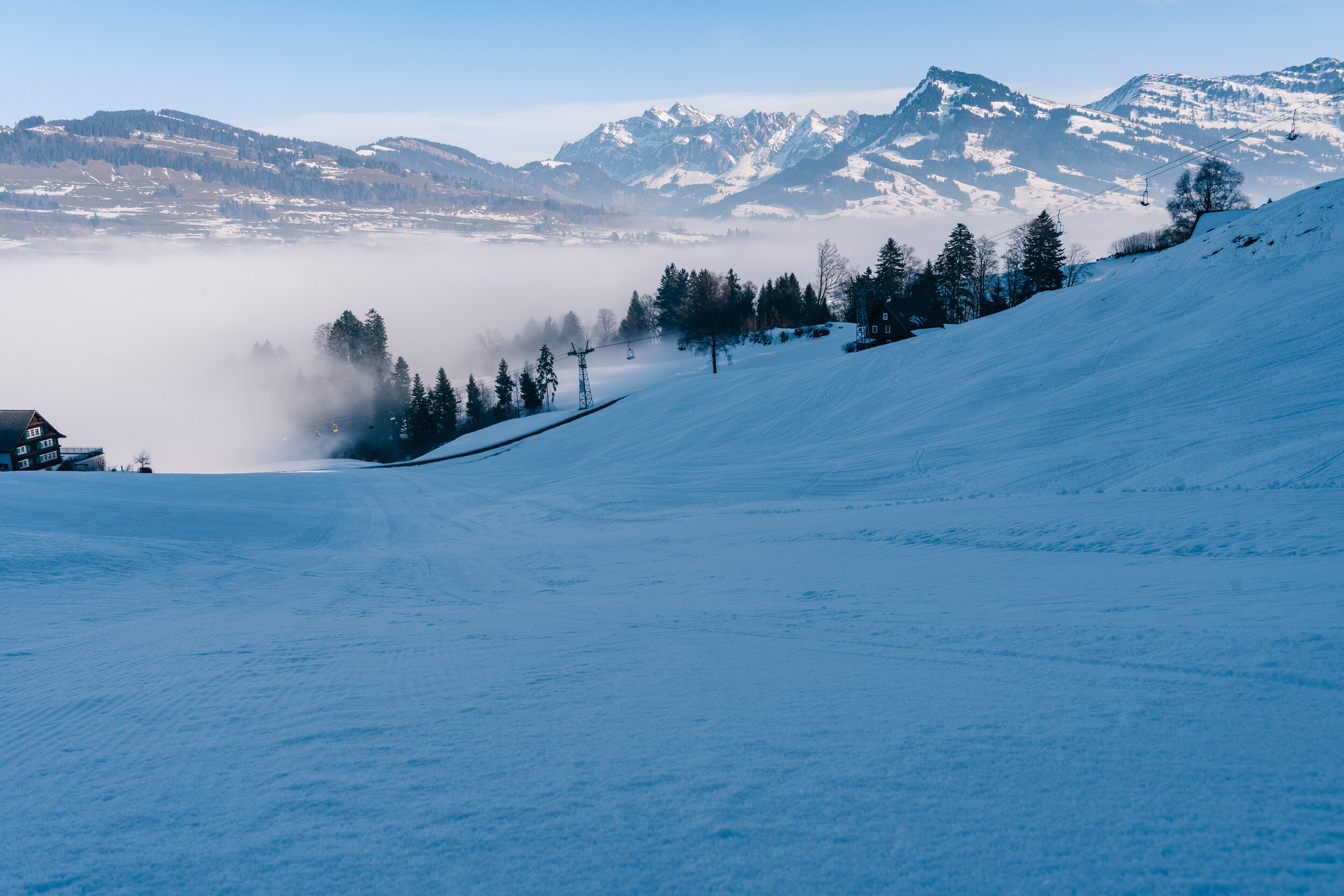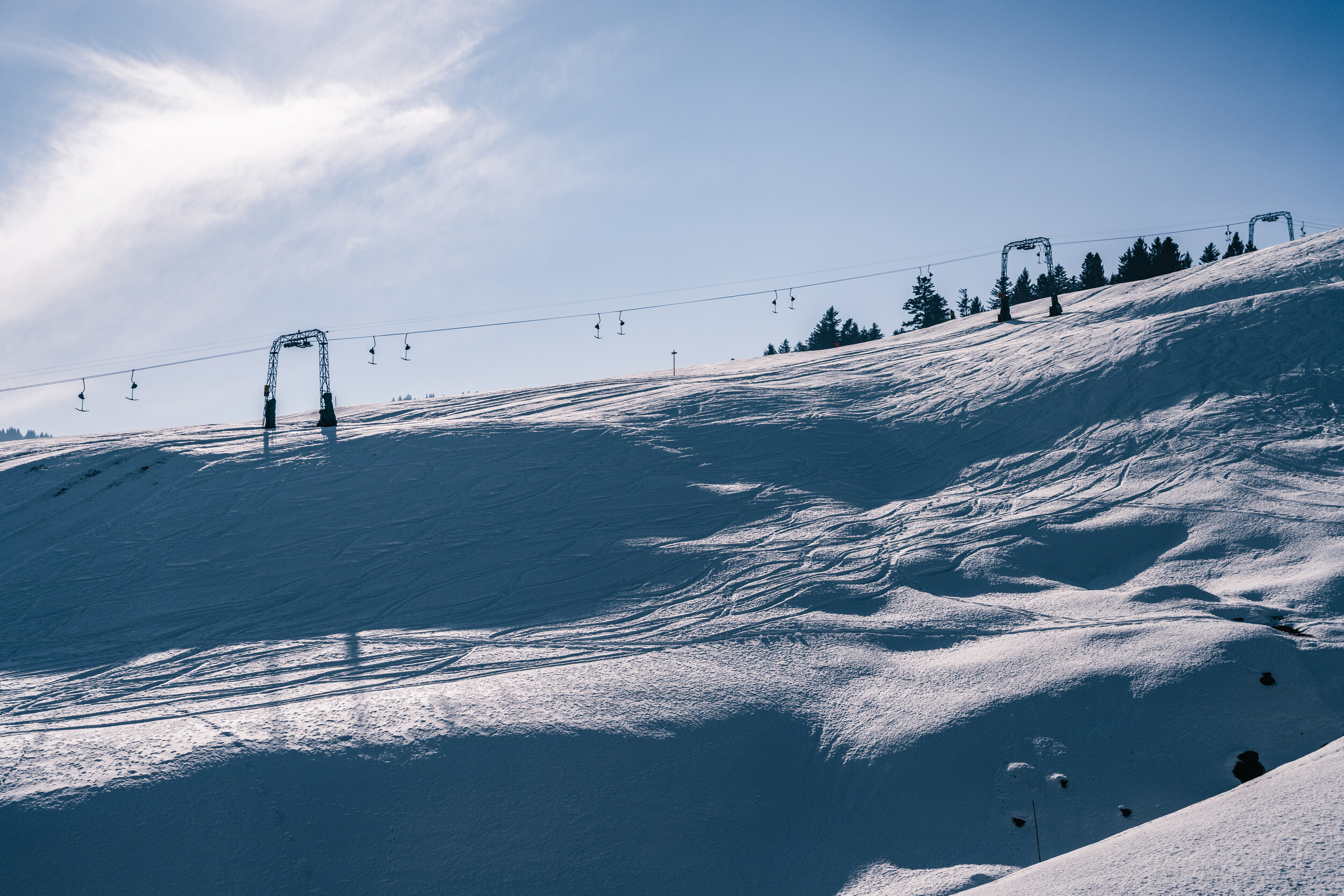 Dem ersten Punkt kann ich auf jeden Fall zustimmen. Für mich gibt es nur eine Ausnahme, wenn ich schon sehr oft im Skigebiet war, dann erlaube ich es mir auch ohne Kamera zu fahren. Ansonsten macht mir das auch zu sehr Freude die Winterwelt abzulichten. Auch bei unserem Besuch auf der Wolzenalp haben wir uns genau umgeschaut, an welchen Orten wir gute Perspektiven bekommen und haben dann Stück für Stück unsere Sports abgearbeitet (natürlich neben spontanen Bilderstops).