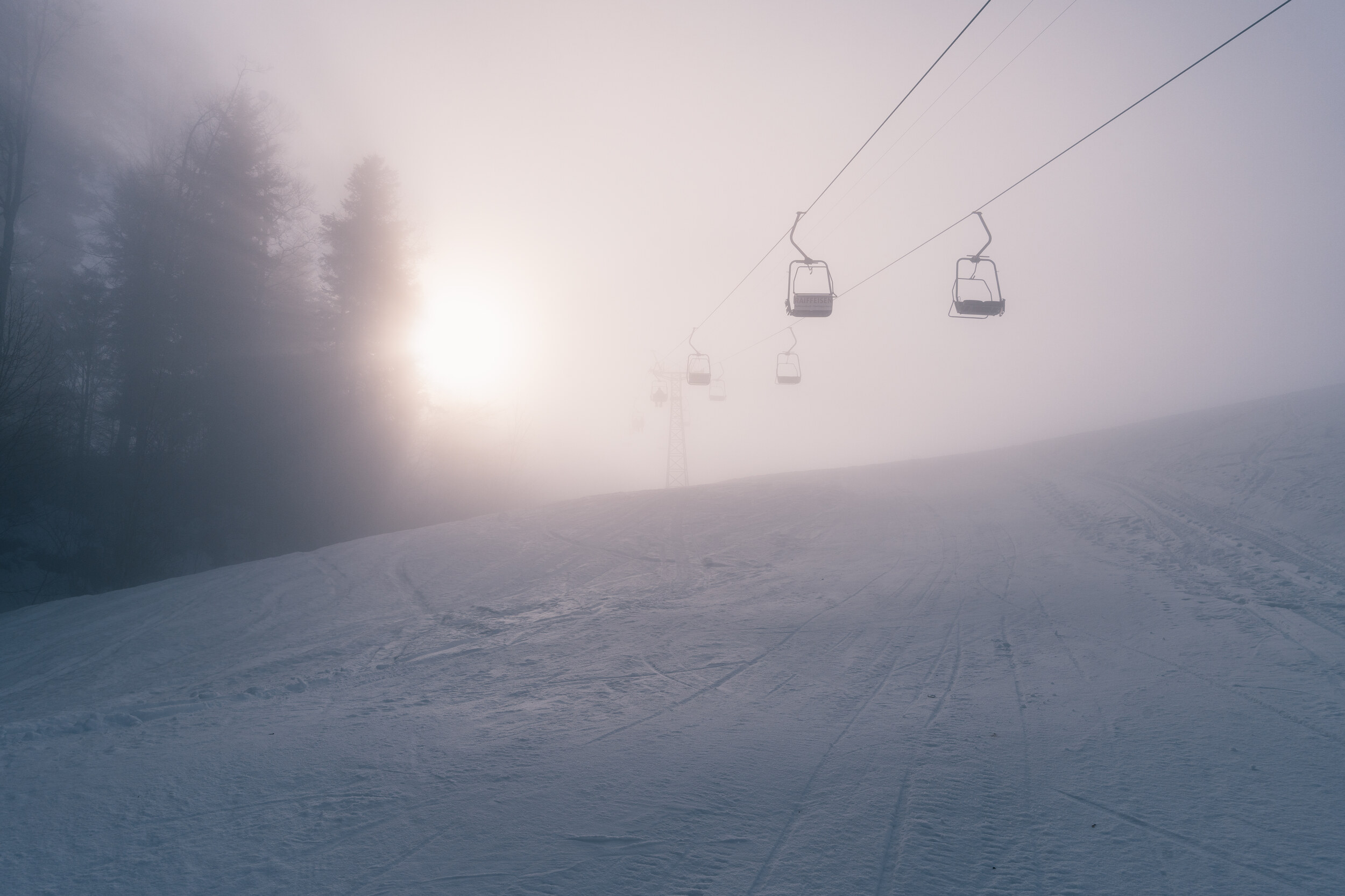 Bei meinem Besuch war es zwar weder kalt noch neblig, aber die Sesselbahn war mit 1.5m/s Zeitlupentempo unterwegs. Fährt sie im Winter wenigstens etwas schneller?