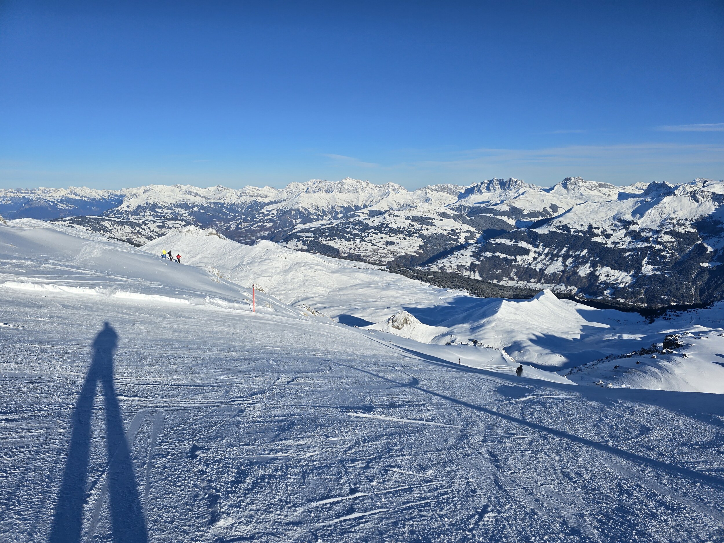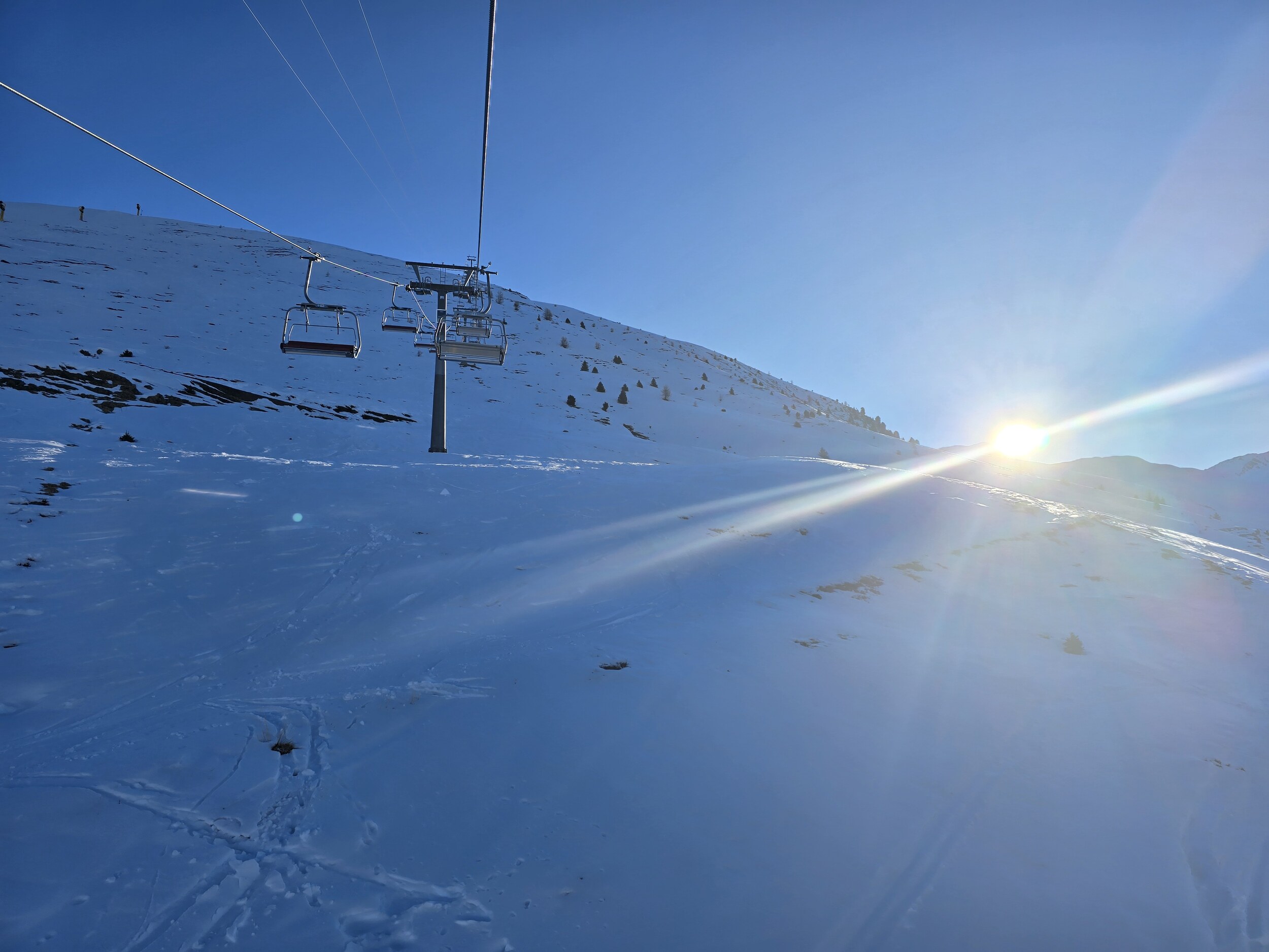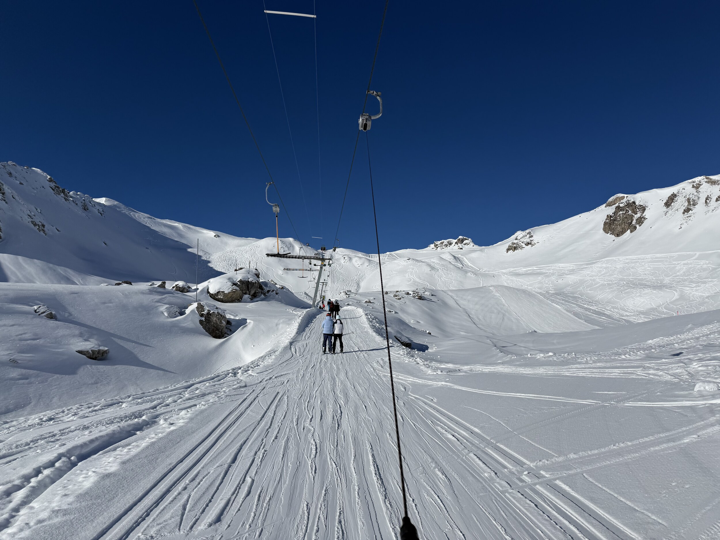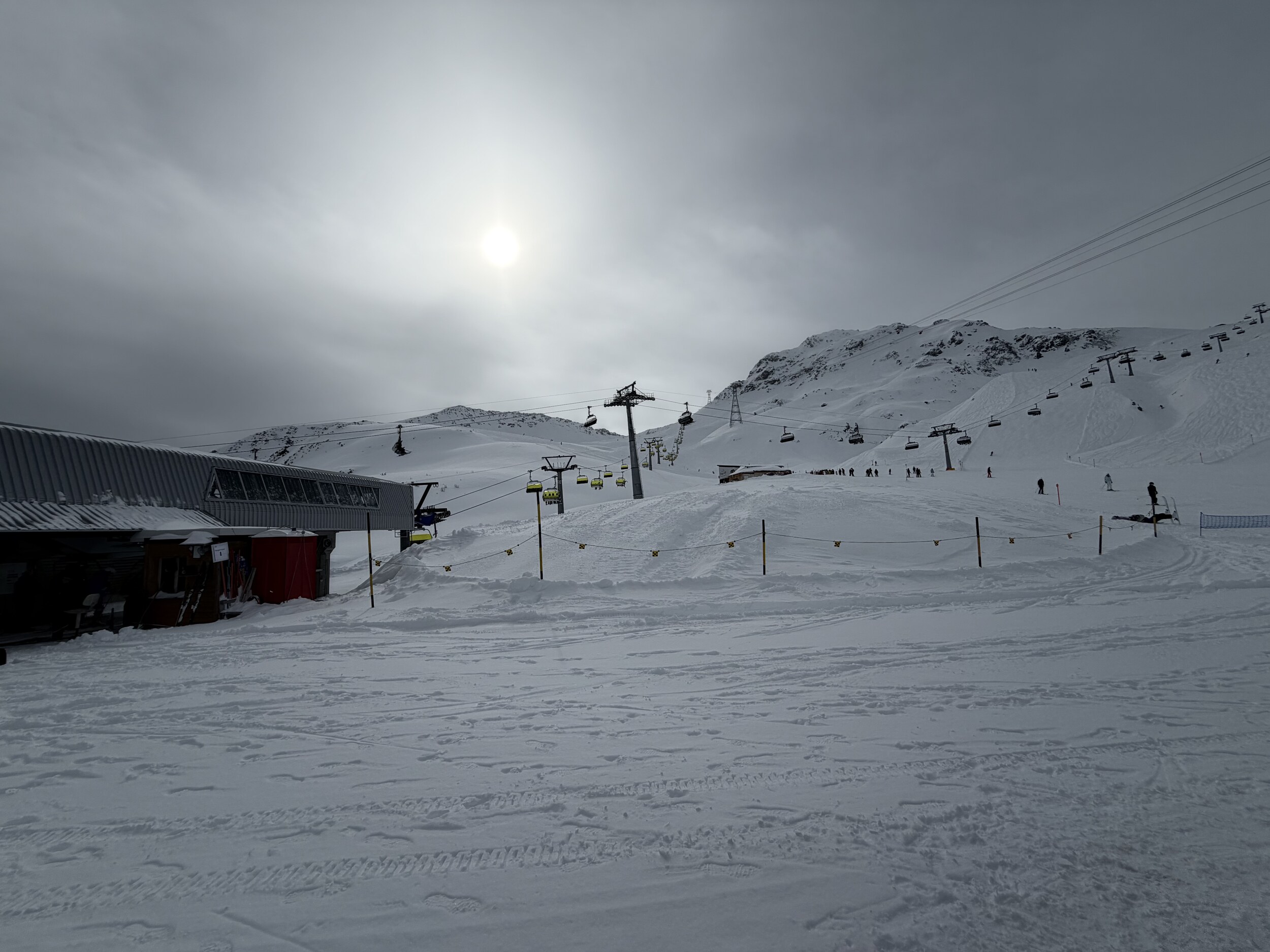 Die Pisten sind top, noch ist der Andrang oben gering. Der Rapid Lift schwankt ziemlich in 2 Teilbereichen, hab das noch nicht so erlebt. In der Gondel zum Gipfel, die ich im perfekten Timing erreiche, bekomme ich überraschenderweise eine Whatsapp-Nachricht, dass ich nach hinten schauen soll - tatsächlich, Tafaas ist da. Wir machen eine gemeinsame Abfahrt am Gipfel Nord, die in einem. guten Zustand ist.