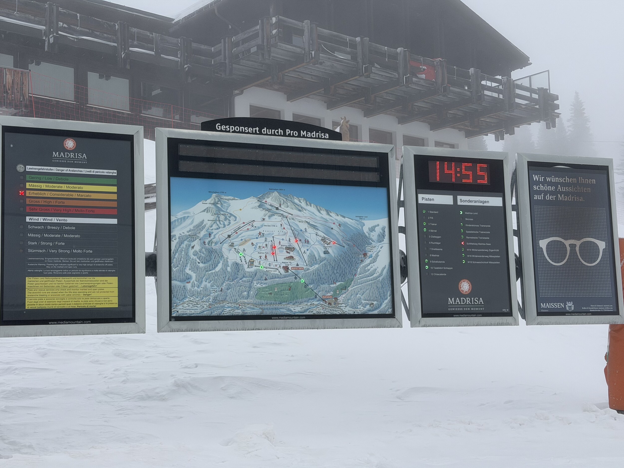 Sehr kurzer Skitag auf der Madrisa heute. Unten Regen bei 2 Grad, oben schneit es. Just als wir oben ankommen, steht der Schaffürgli, es stürmt. Die Leute müssen auf dem Sessel ausharren. Es dauert 15 Minuten, bis sie ihn im Schneckentempo leeren. Der Lift ist auf dem Pistenplan immer noch grün eingezeichnet, die Hoffnung stirbt zuletzt. Nach 1x Albeina schliesst dort auch der Tellerlift wegen zu schlechter Sicht. Wir machen nochmals den Bügel und die 2. Variante. Unten angekommen, gehen wir ins Restaurant, dort wird verkündet, dass die Skischule abgebrochen wird. Und ein Blick auf die interaktive Karte zeigt, dass nun alle Lifte bis auf die Förderbänder zu sind. Ein sehr kurzer Skitag... schade, die Talabfahrt wäre cool gewesen. Leider fehlt auch Schnee für die alte Talabfahrt.