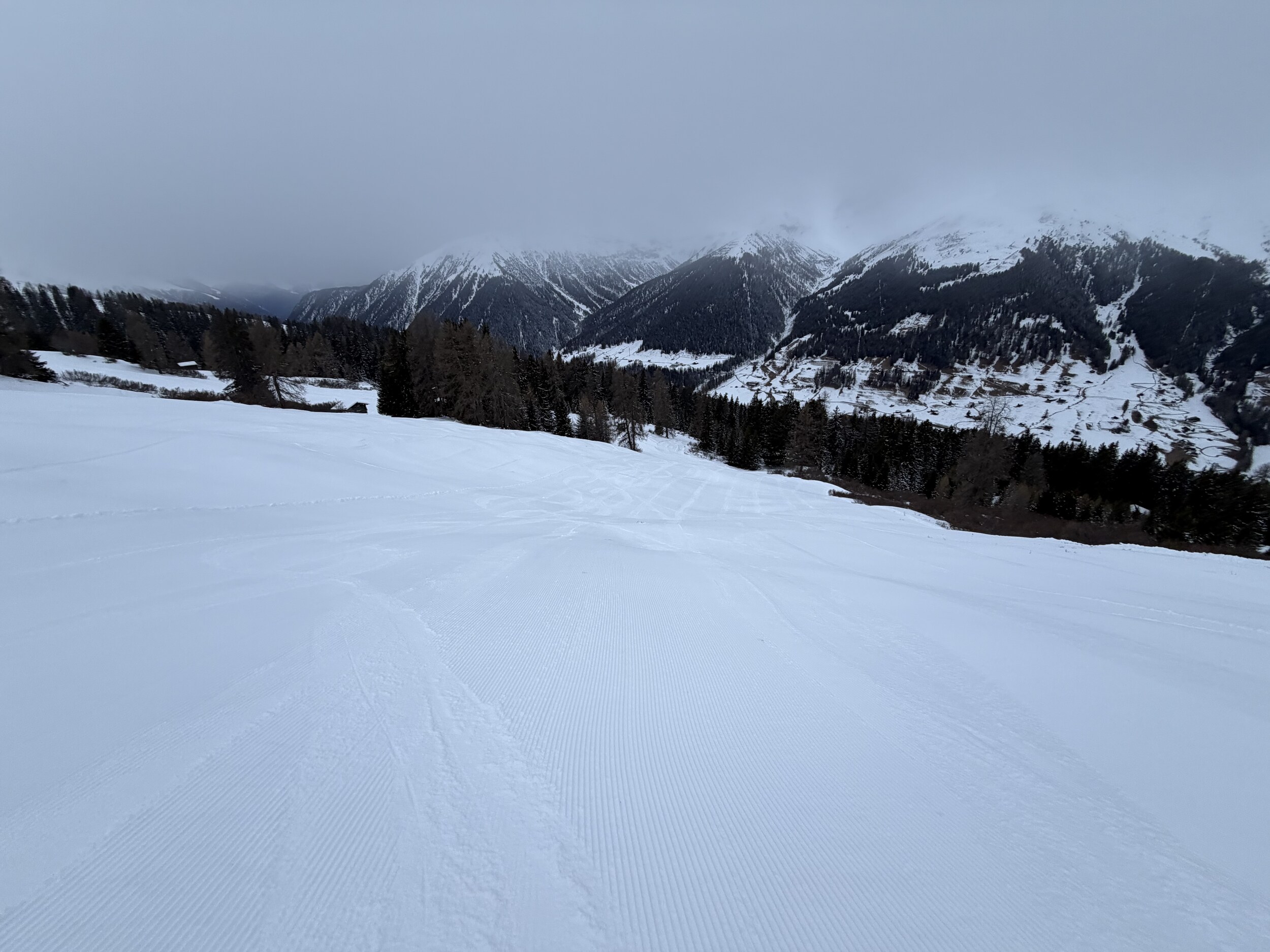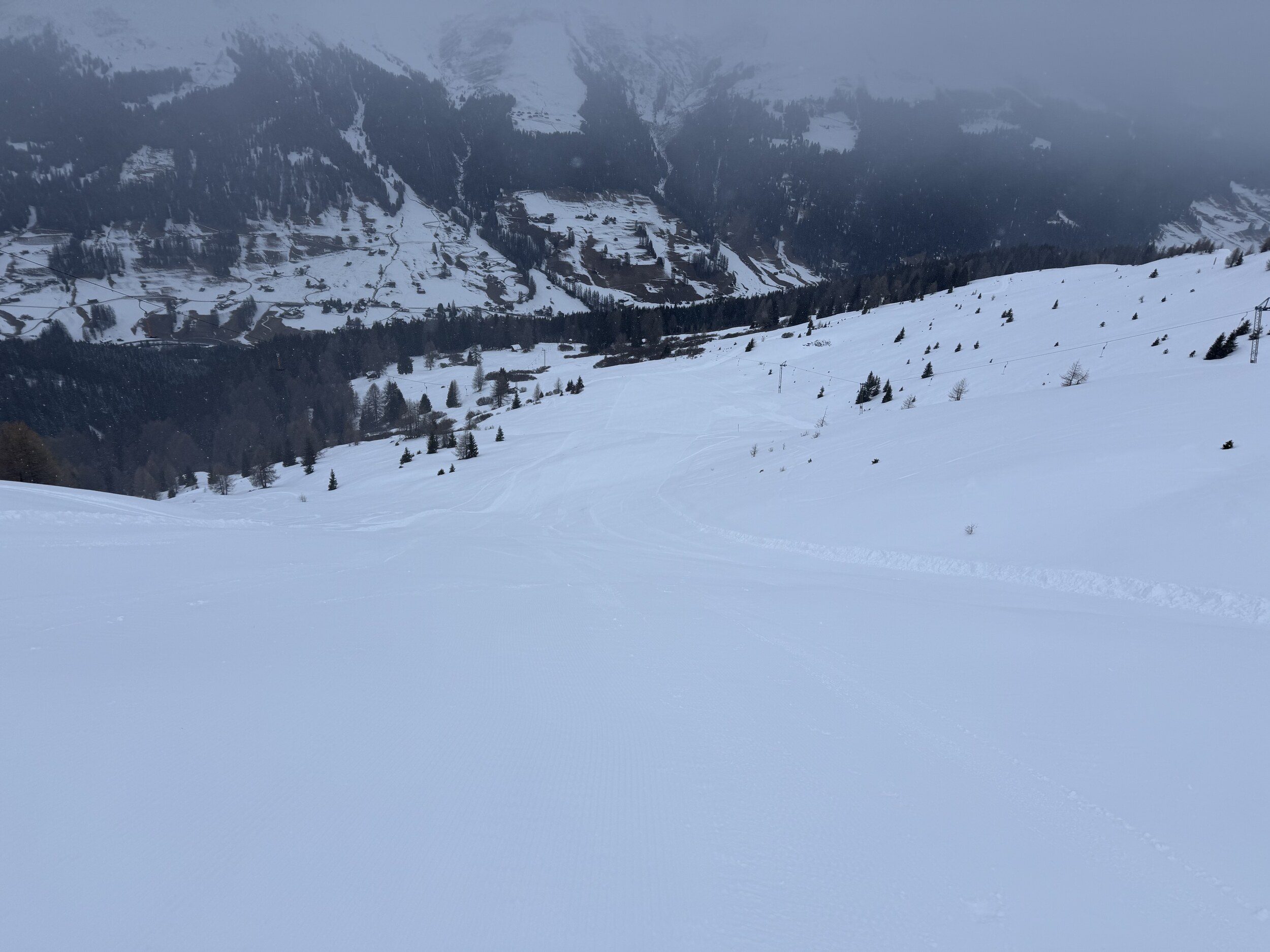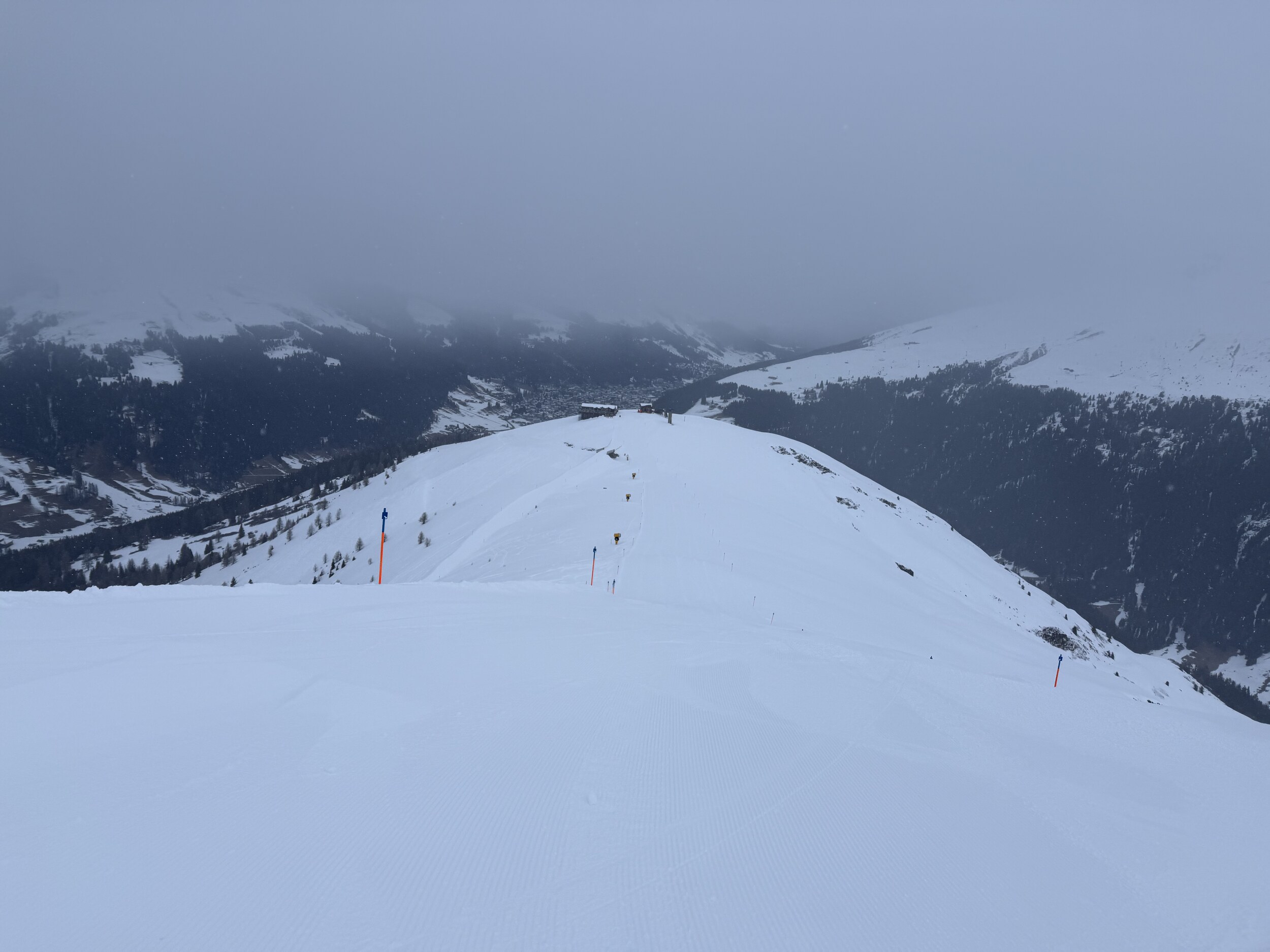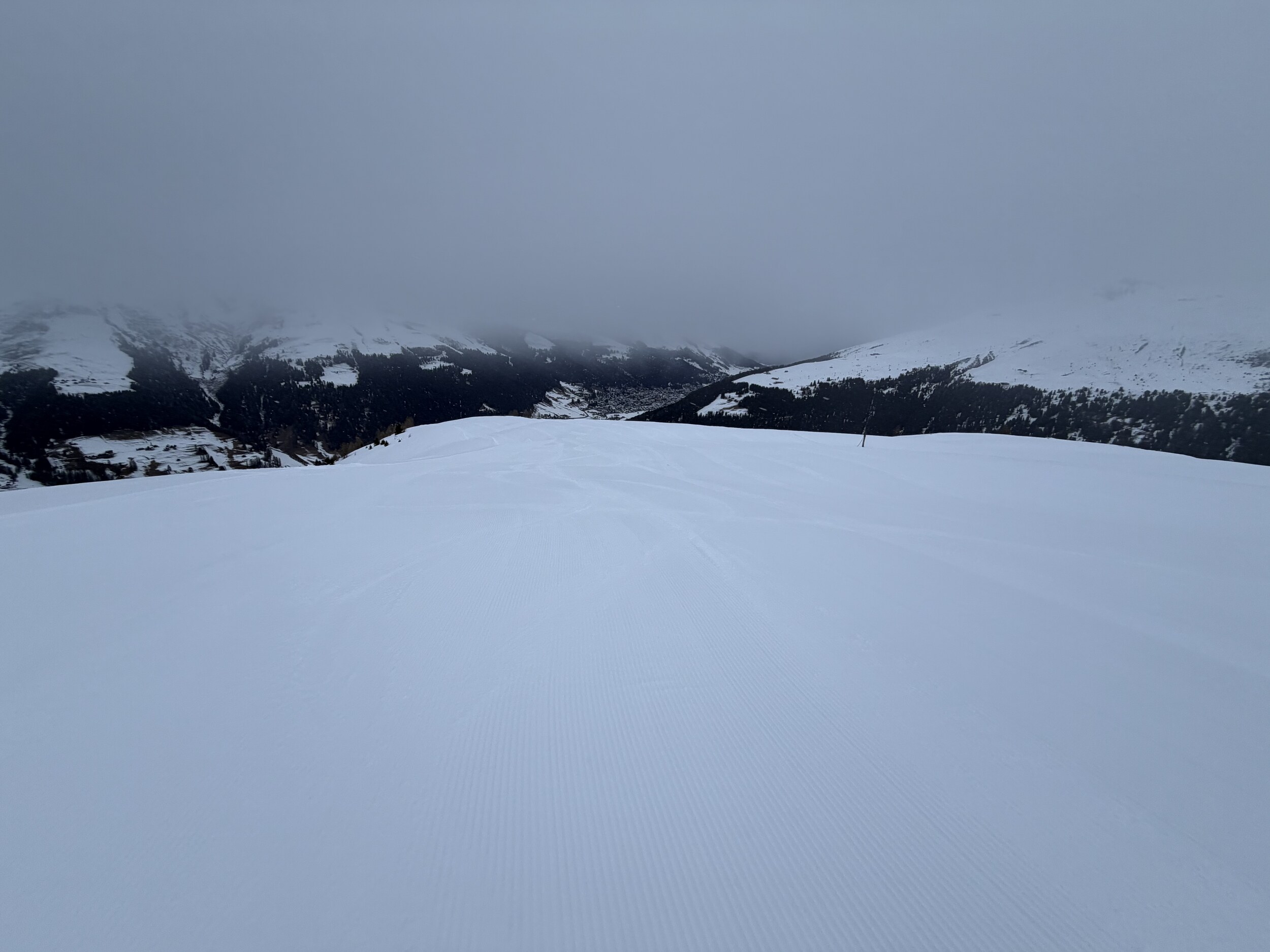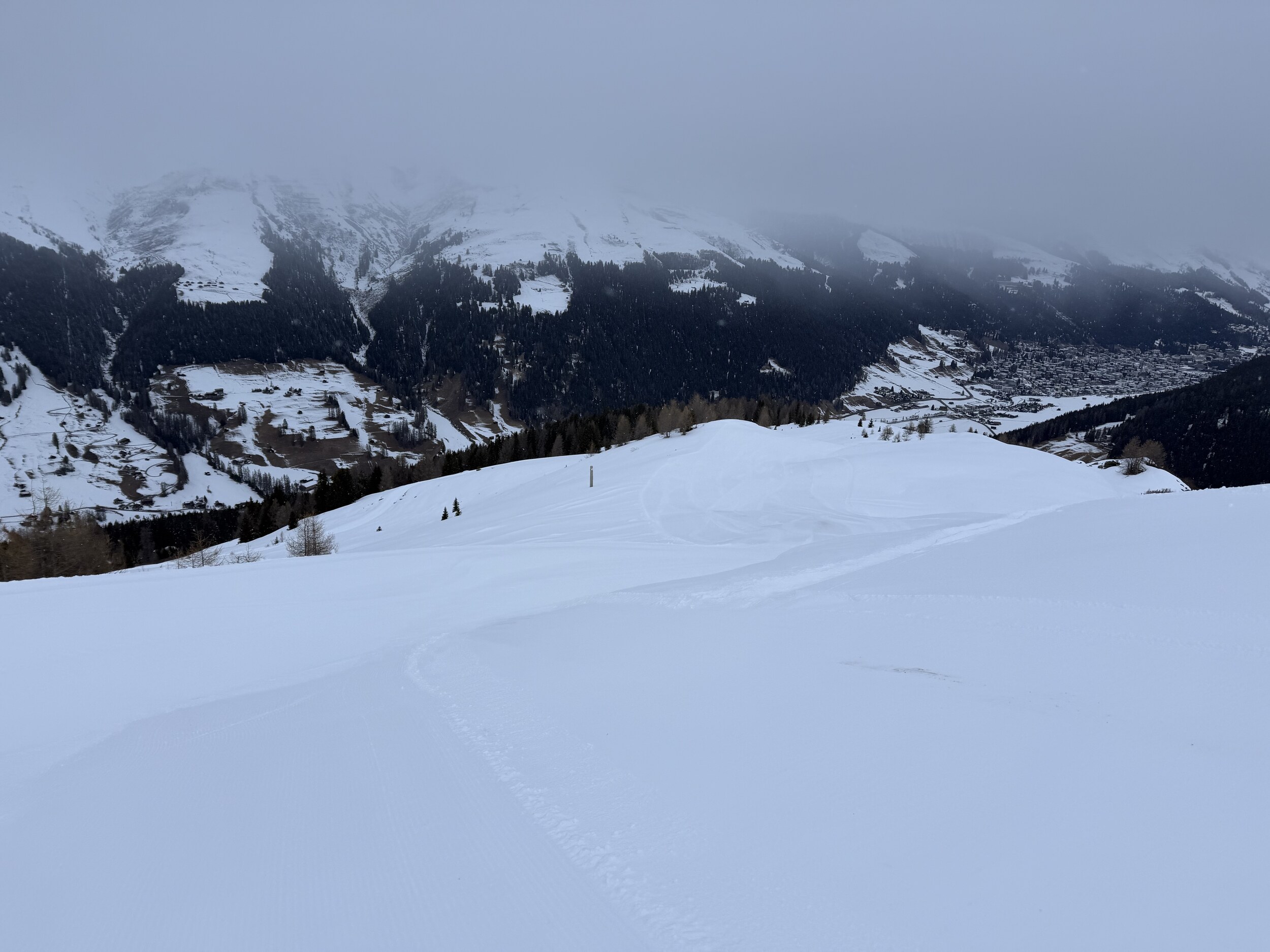 12h war die Sicht relativ schlecht. Für den Rückweg über Parsenn hatte ich mir Piste 47 ausgesucht, die minimal Steine hatte. Aber alles umfahrbar. Die Sicht wurde dann auch wieder besser. Die Abfahrt auf Piste 21 war noch mal ein Highlight.