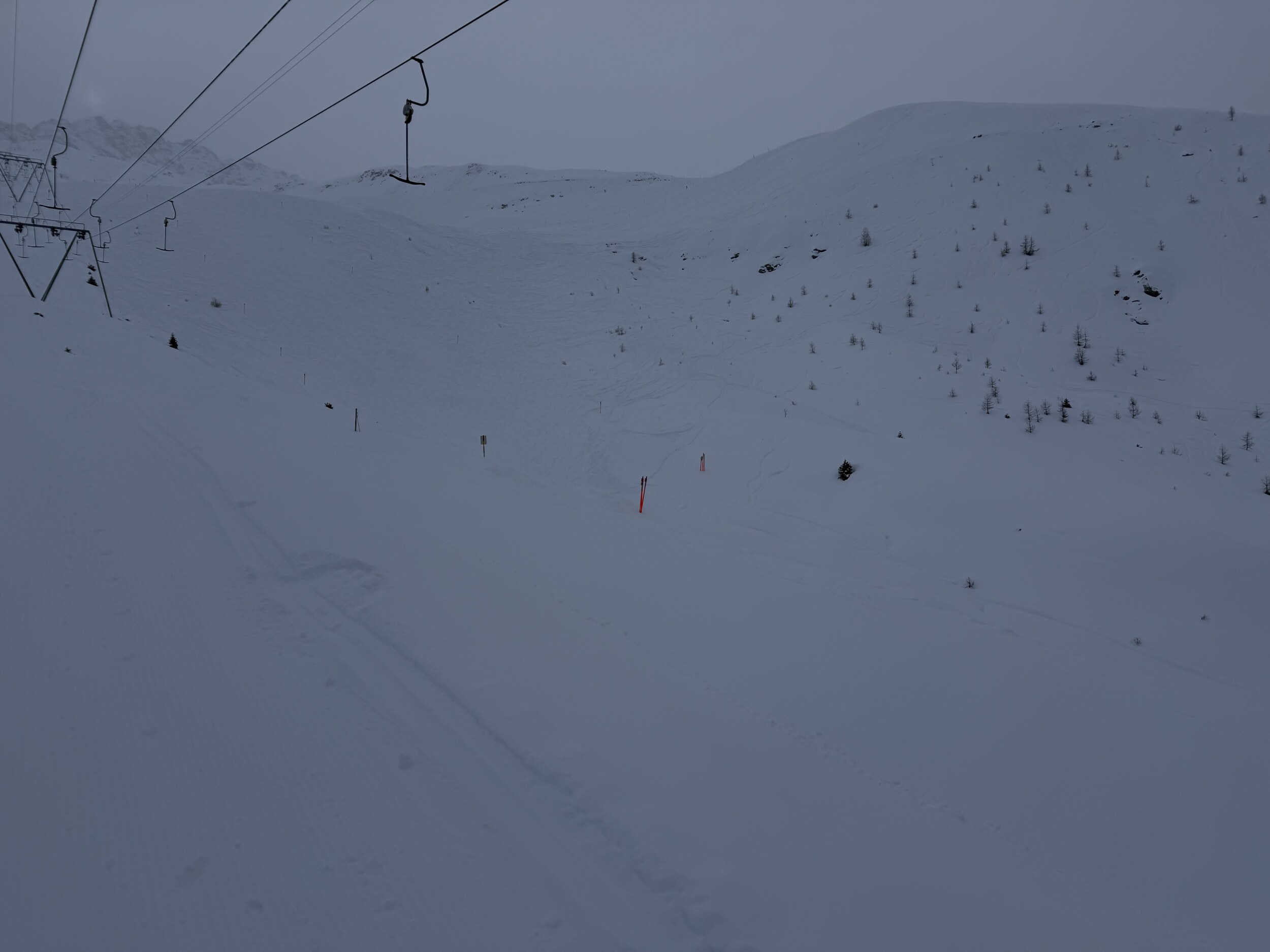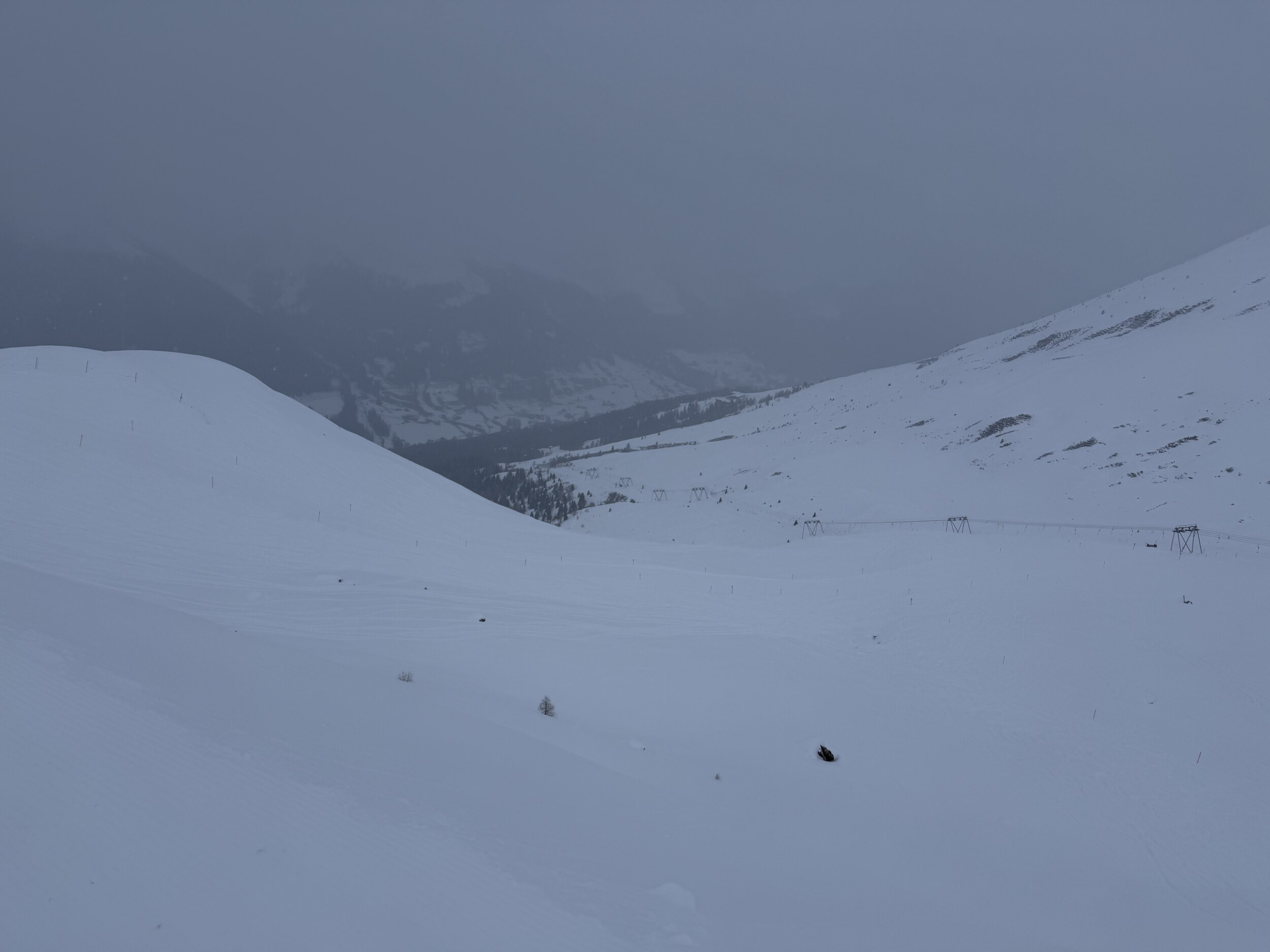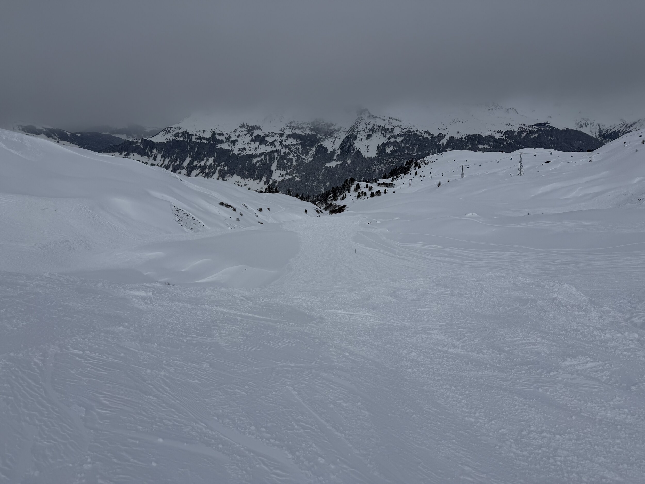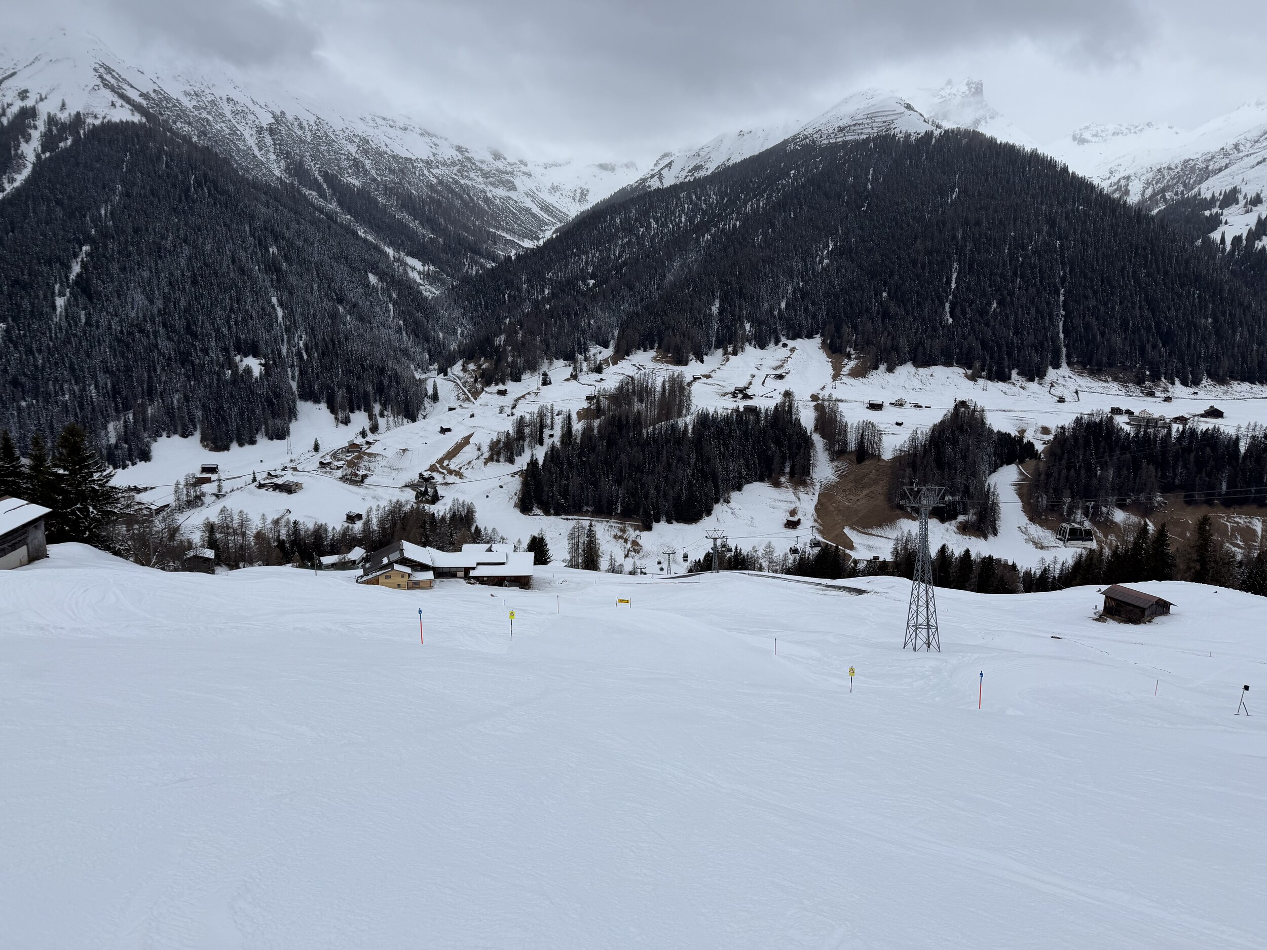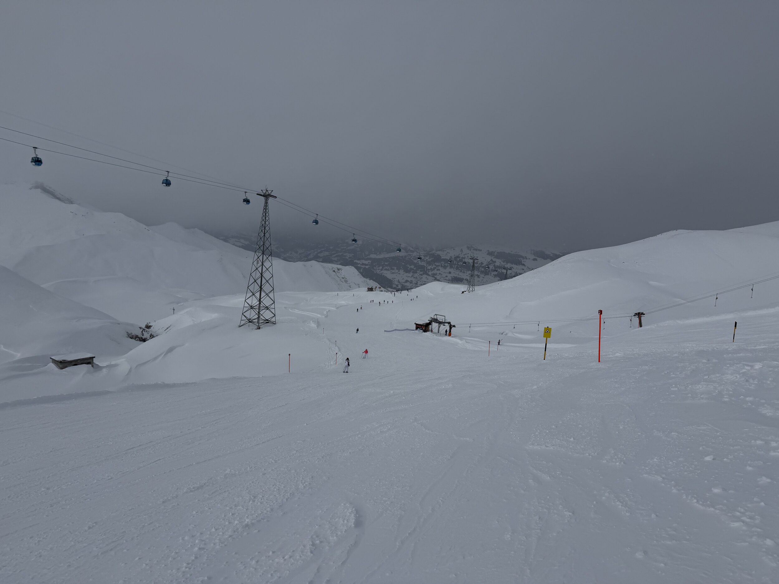 12h war die Sicht relativ schlecht. Für den Rückweg über Parsenn hatte ich mir Piste 47 ausgesucht, die minimal Steine hatte. Aber alles umfahrbar. Die Sicht wurde dann auch wieder besser. Die Abfahrt auf Piste 21 war noch mal ein Highlight.