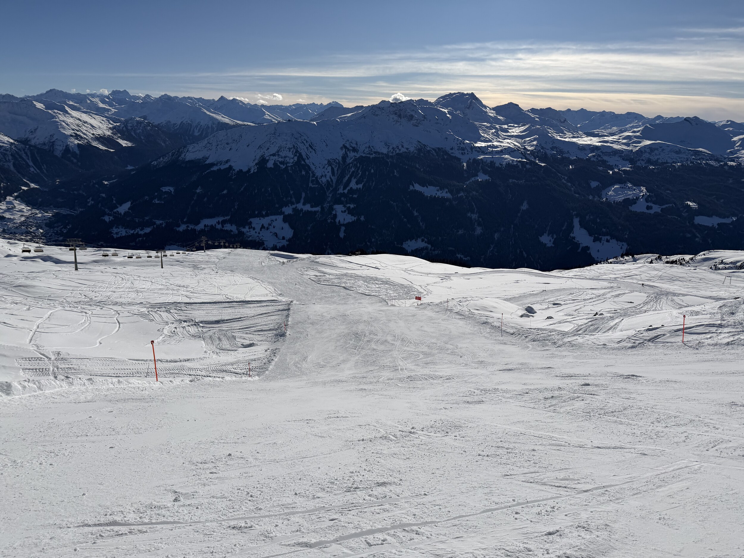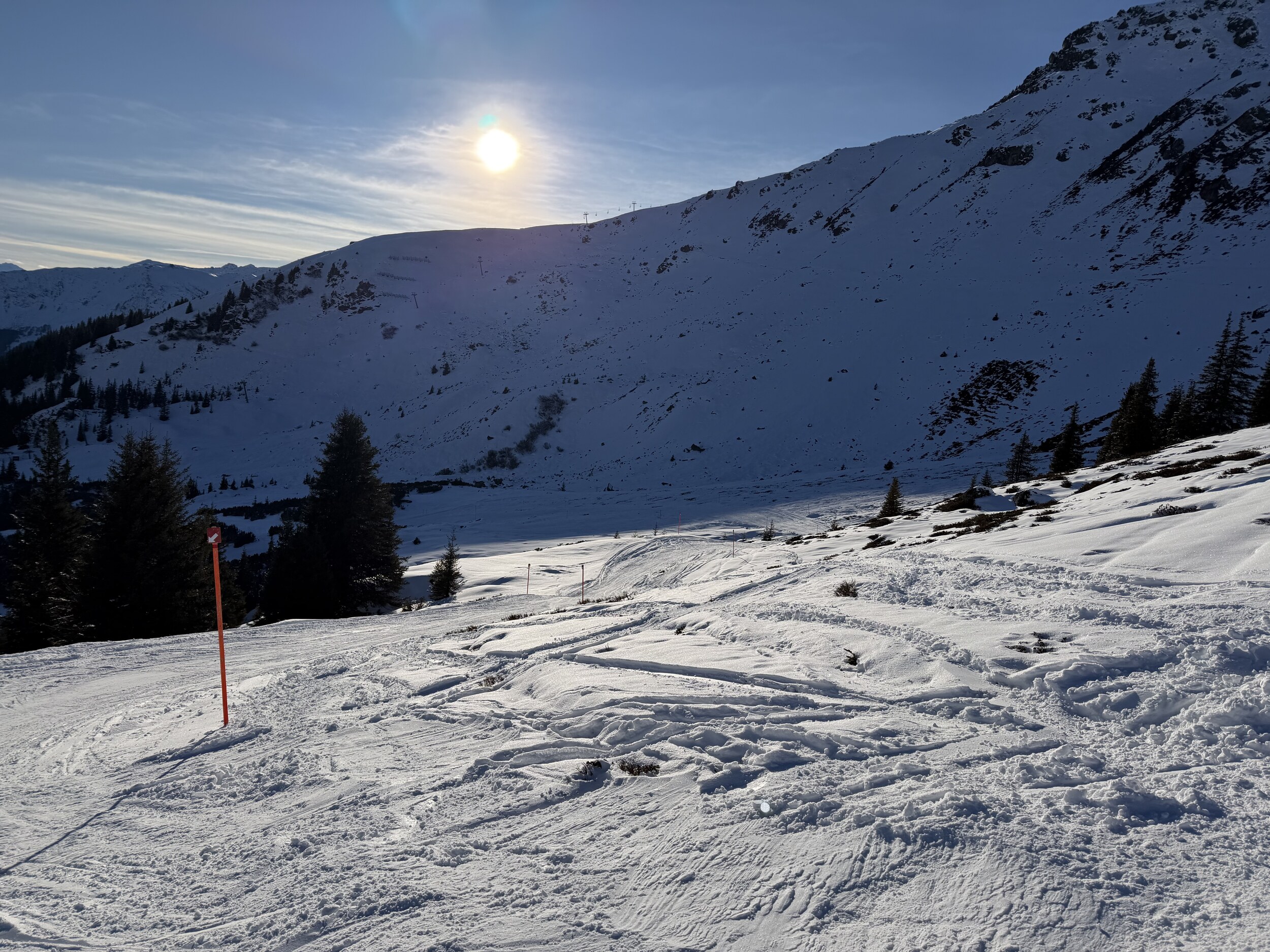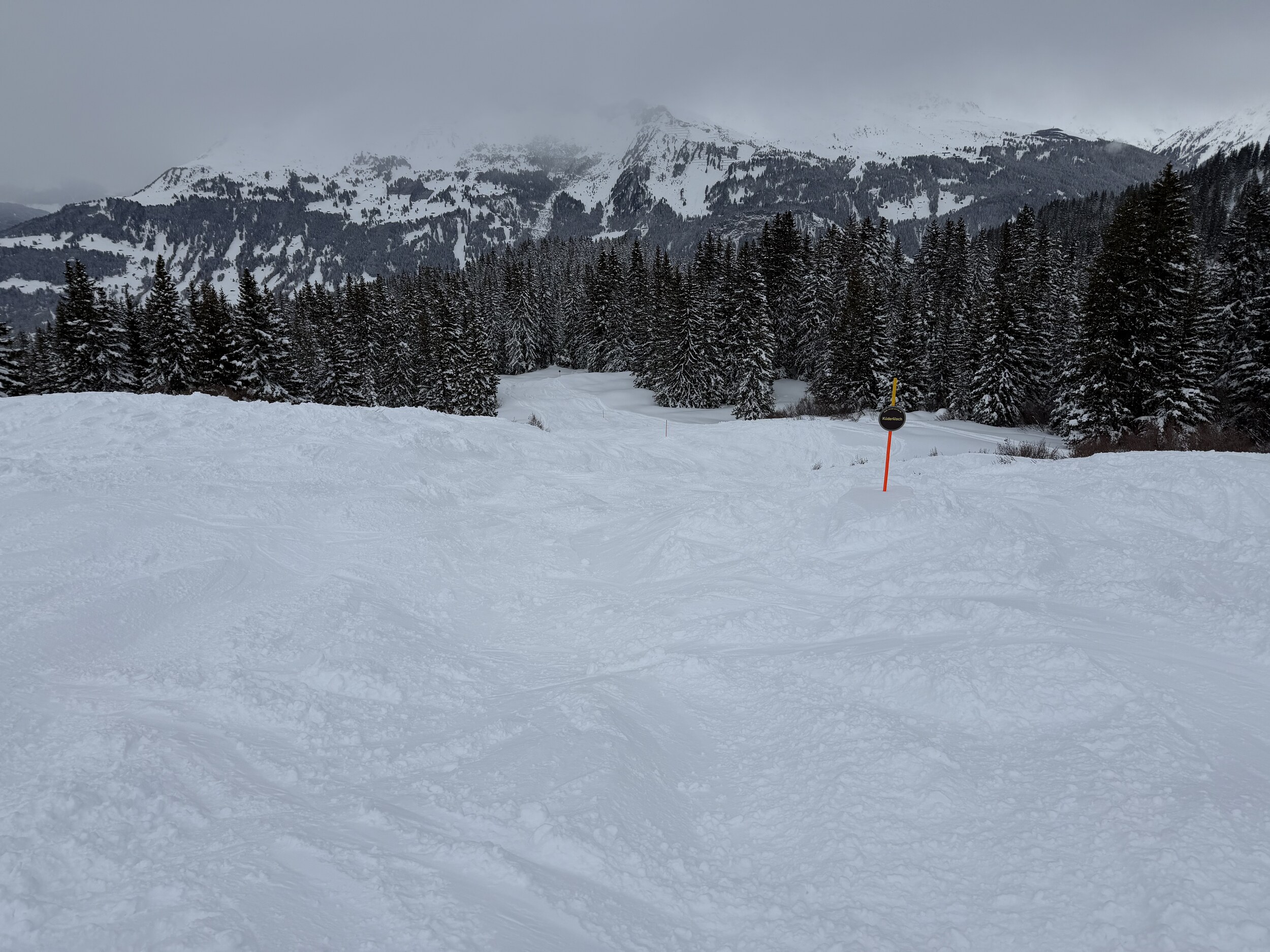 Am Isser Isch ist heute der Trainingsbereich für alle geöffnet. Somit gibt es trotz vollem Sessel (Wartezeit aber nur wenige FBM) viel Platz auf der Piste. So macht es sehr viel Spass. Die Präparation ist hier besser, wenn auch teilweise etwas ruppig. Die Vertical ist hingegen in hervorragendem Zustand. Edit 12:05
