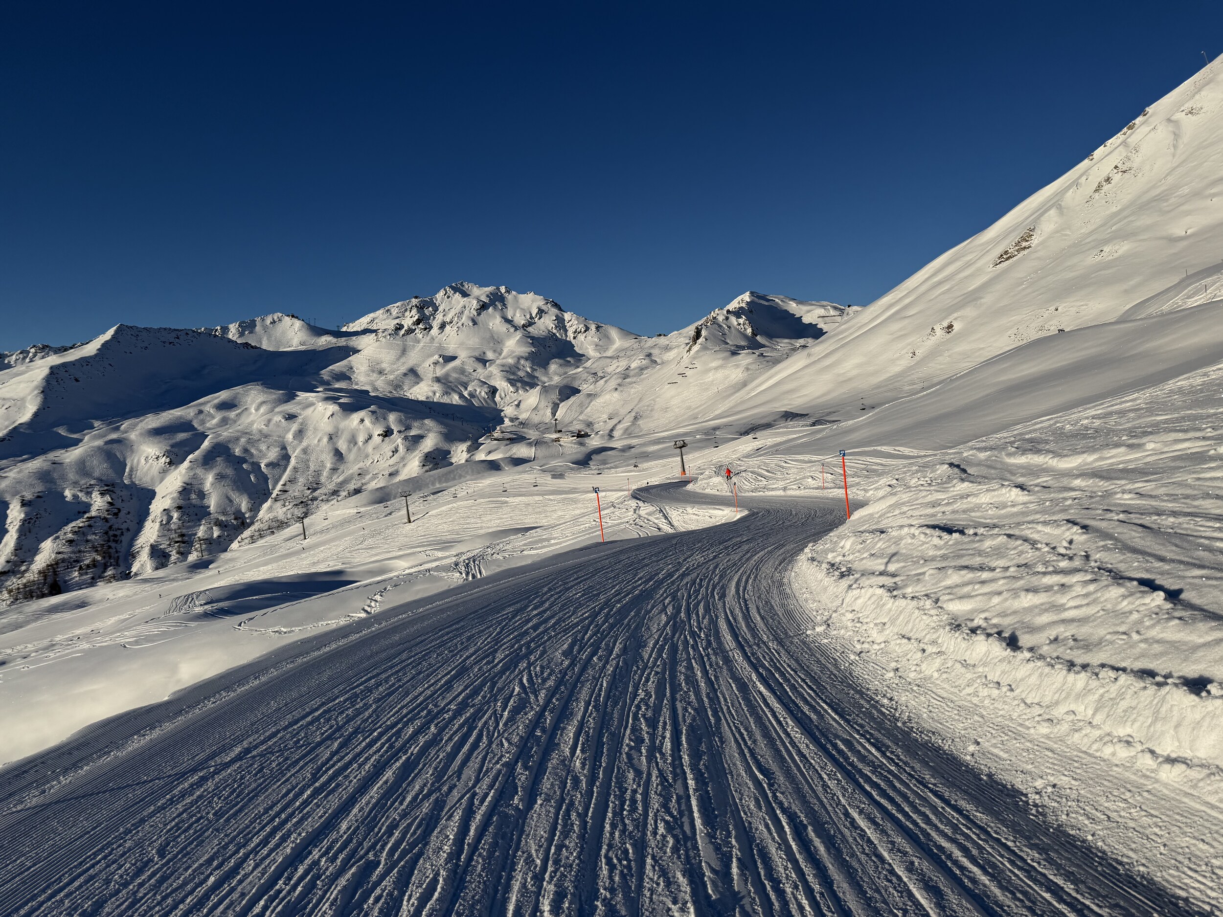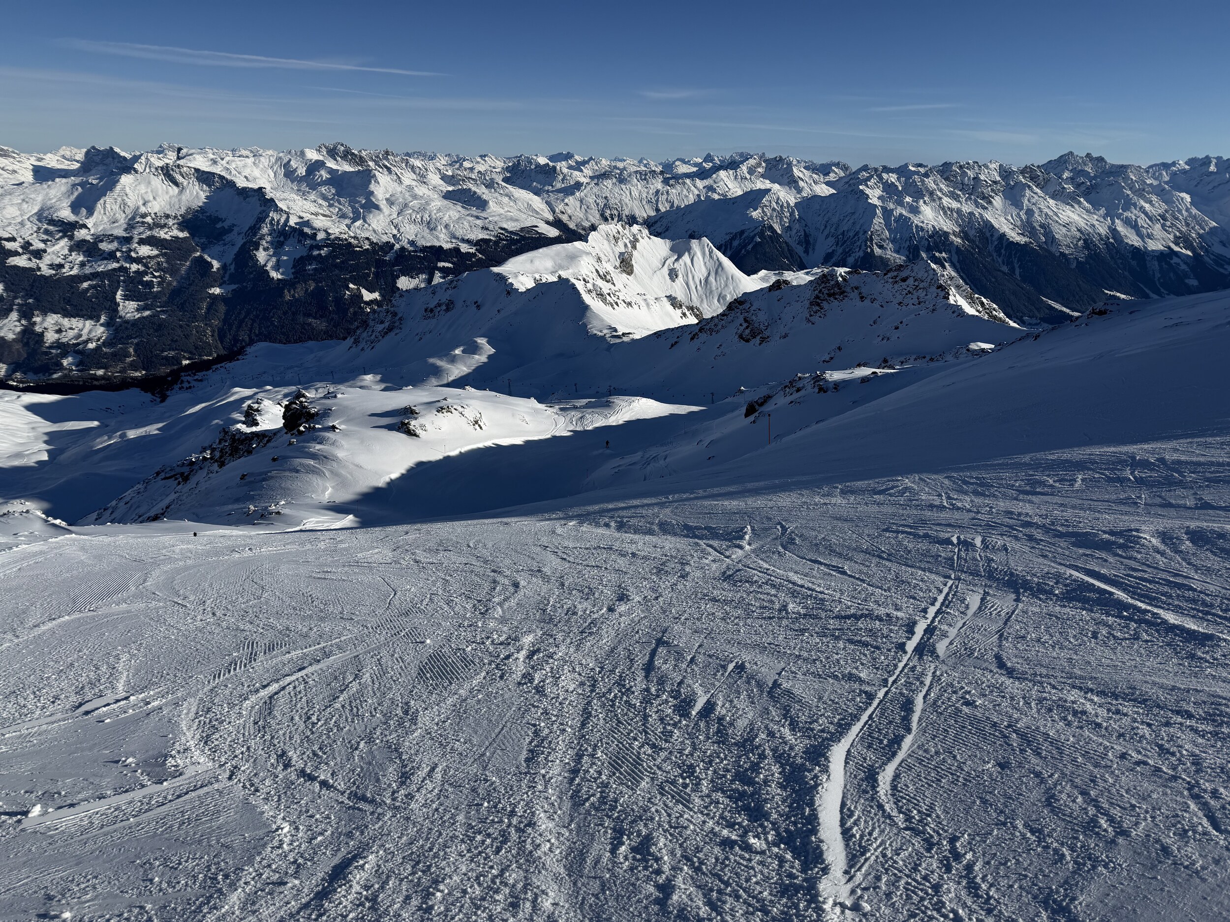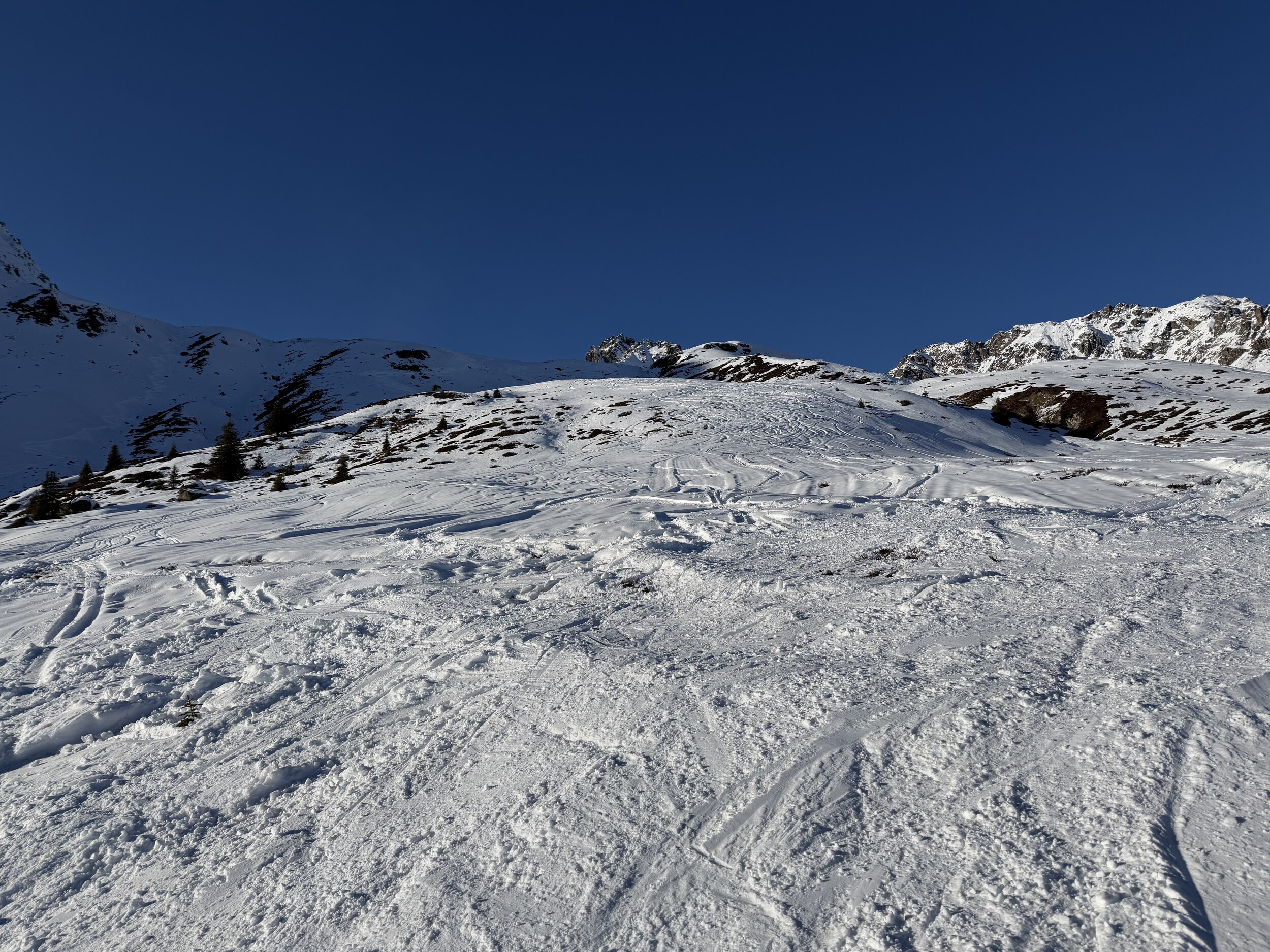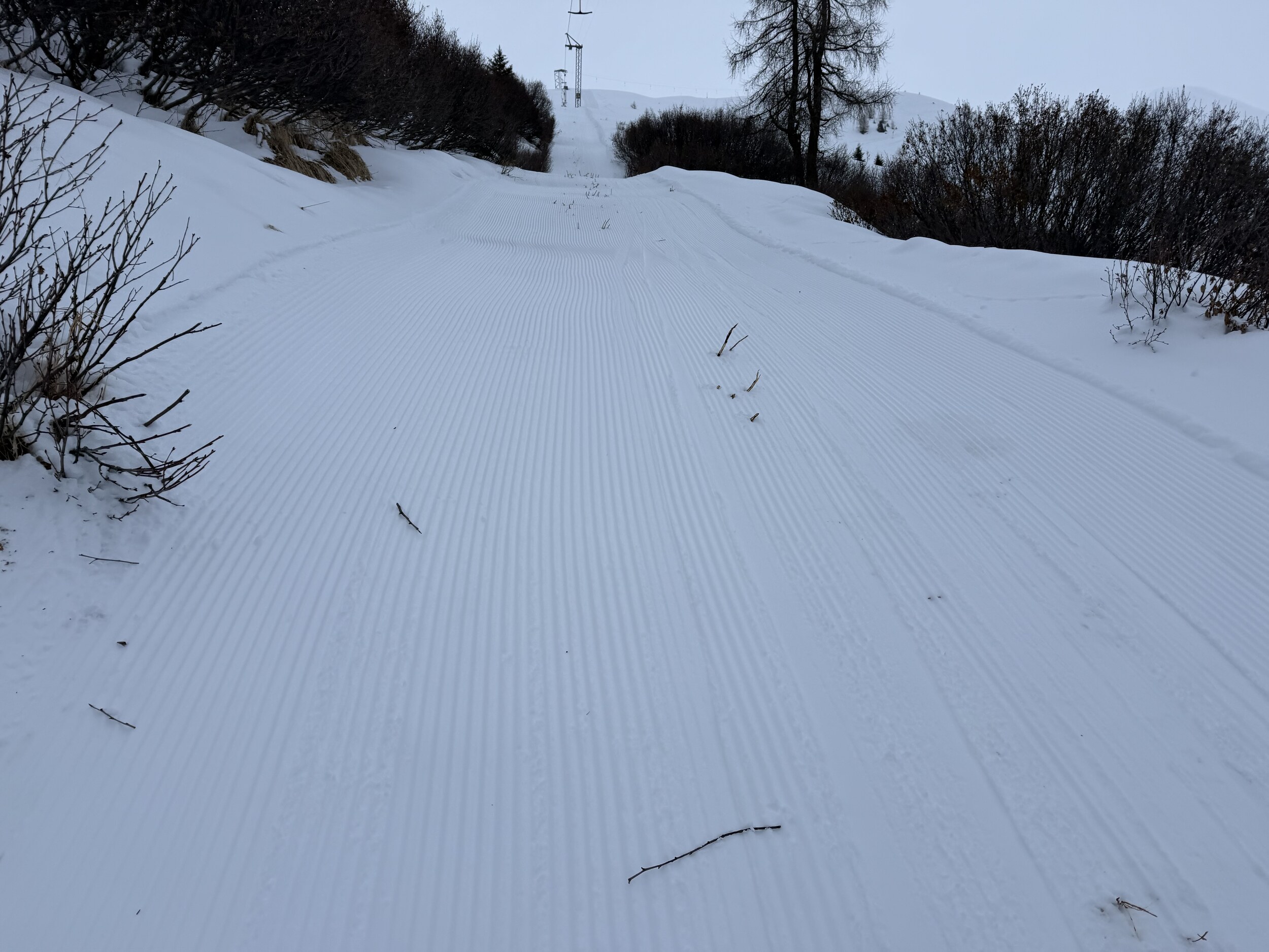 Am Isser Isch ist heute der Trainingsbereich für alle geöffnet. Somit gibt es trotz vollem Sessel (Wartezeit aber nur wenige FBM) viel Platz auf der Piste. So macht es sehr viel Spass. Die Präparation ist hier besser, wenn auch teilweise etwas ruppig. Die Vertical ist hingegen in hervorragendem Zustand. Edit 12:05