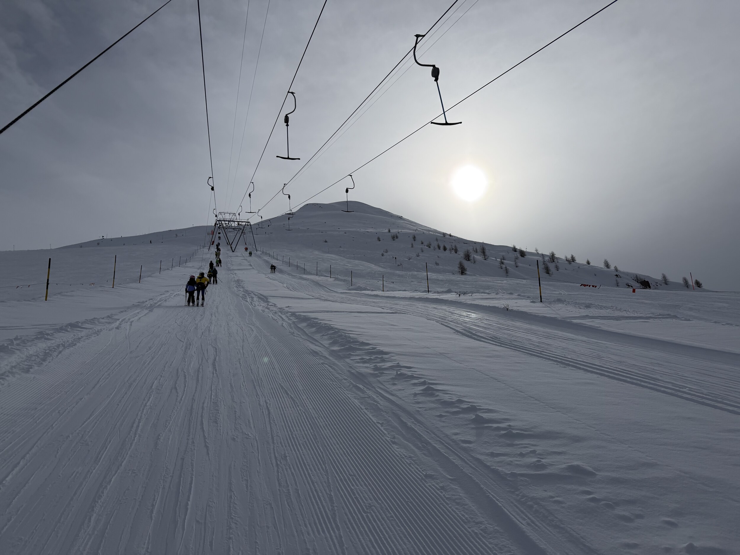 Viel los am Juonli, Rennen, JO- Gruppen, Skilehrergruppen,..es laufen beide Lifte und trotzdem zeitenweise 4-5 Bügel anstehen. Am Nülli sehr entspannt. Da steigen sie nicht am Pistenrand, sondern auf dem zweiten Trassee auf