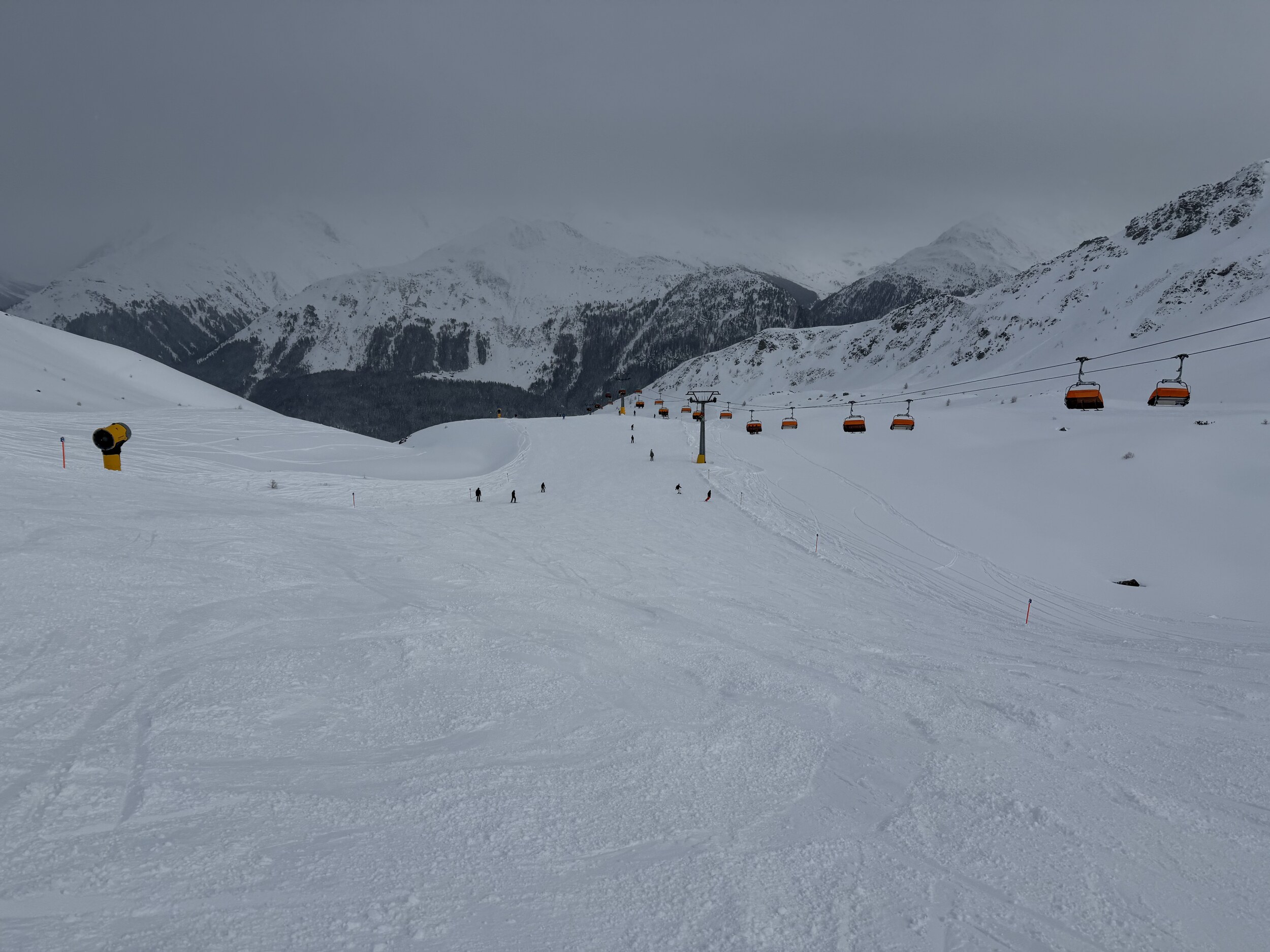 Nach einer Runde am Rapid habe ich dann rüber ans Jakobshorn gewechselt. Bis jetzt bin ich nur am Bräma gefahren. Der Piste ist eher etwas eisig, zwischendurch aber auch ganz gut. Edit 15:10