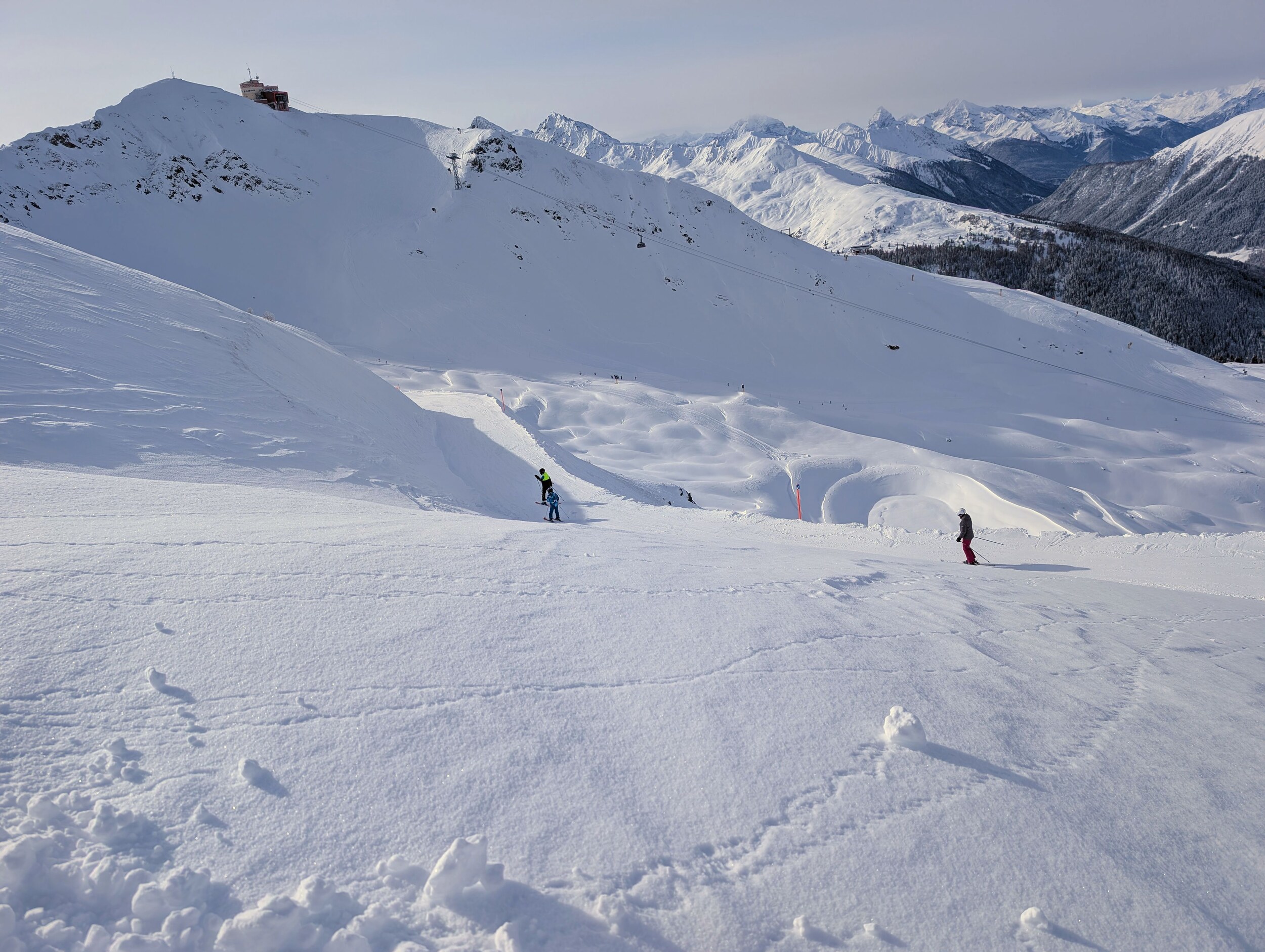 Heute eine kurze Nachmittagsrunde auf der Parsenn endlich im Winterwonderland. Das Wetter einiges besser als gedacht mit leichten Sonnenstrahlen, auch von den Leuten her geht's. Furka und Rapid ohne Anstehen, auf Totalp gibt es nicht einmal eine Single Line.