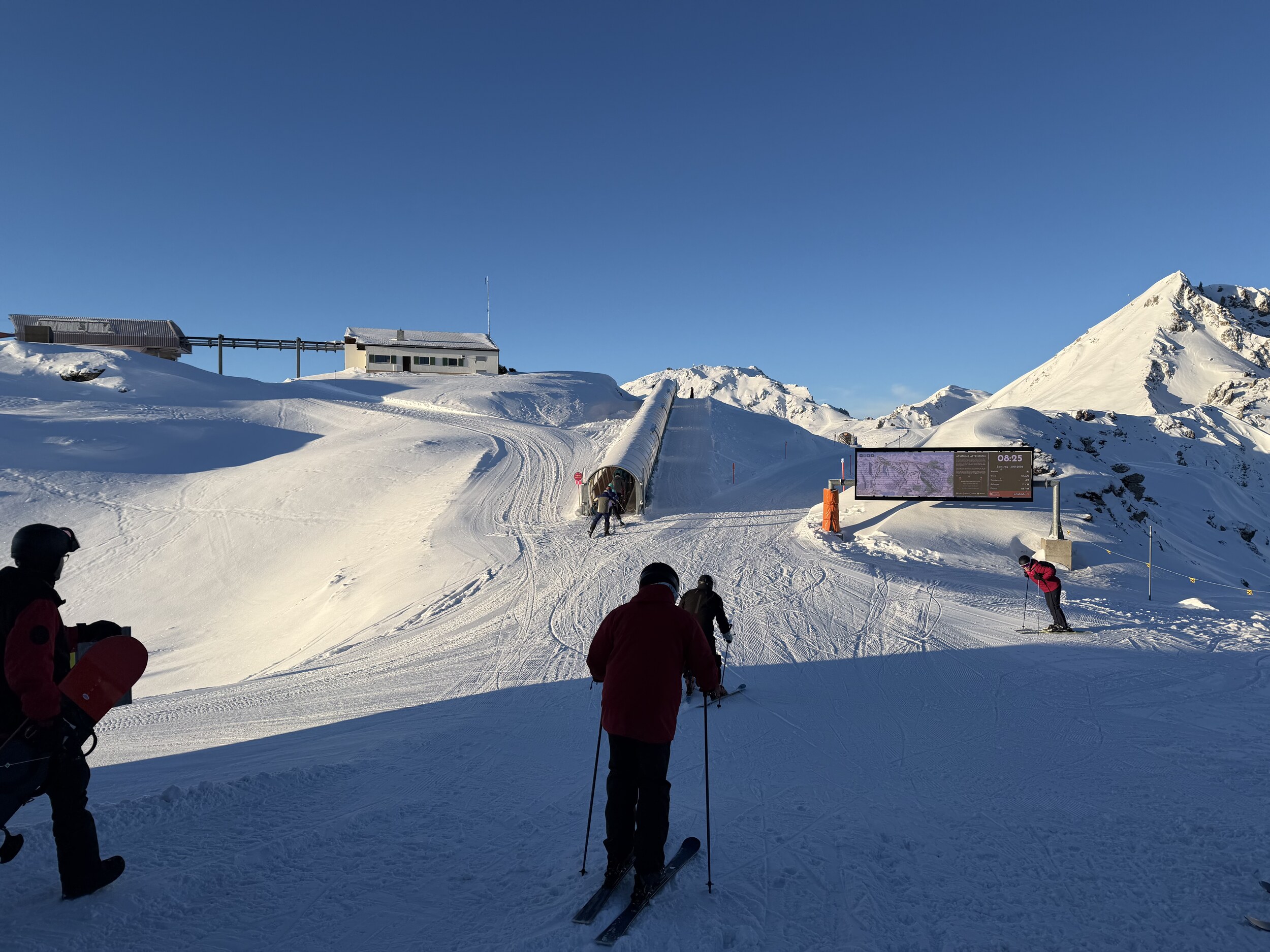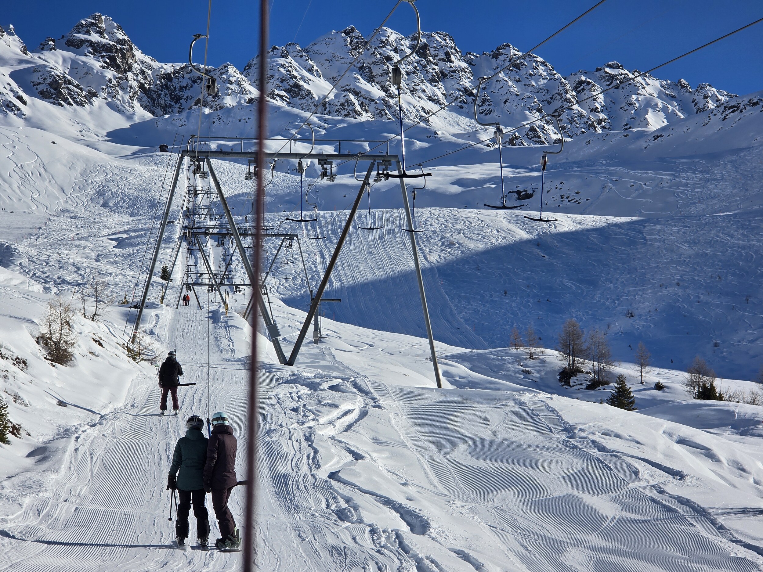 Weiter geht es auf der Madrisa. Obwohl weiterhin laut Schneebericht nur das Rumpfgebiet offen ist, soll ja die Talabfahrt tiptop sein. Lassen wir uns überraschen.