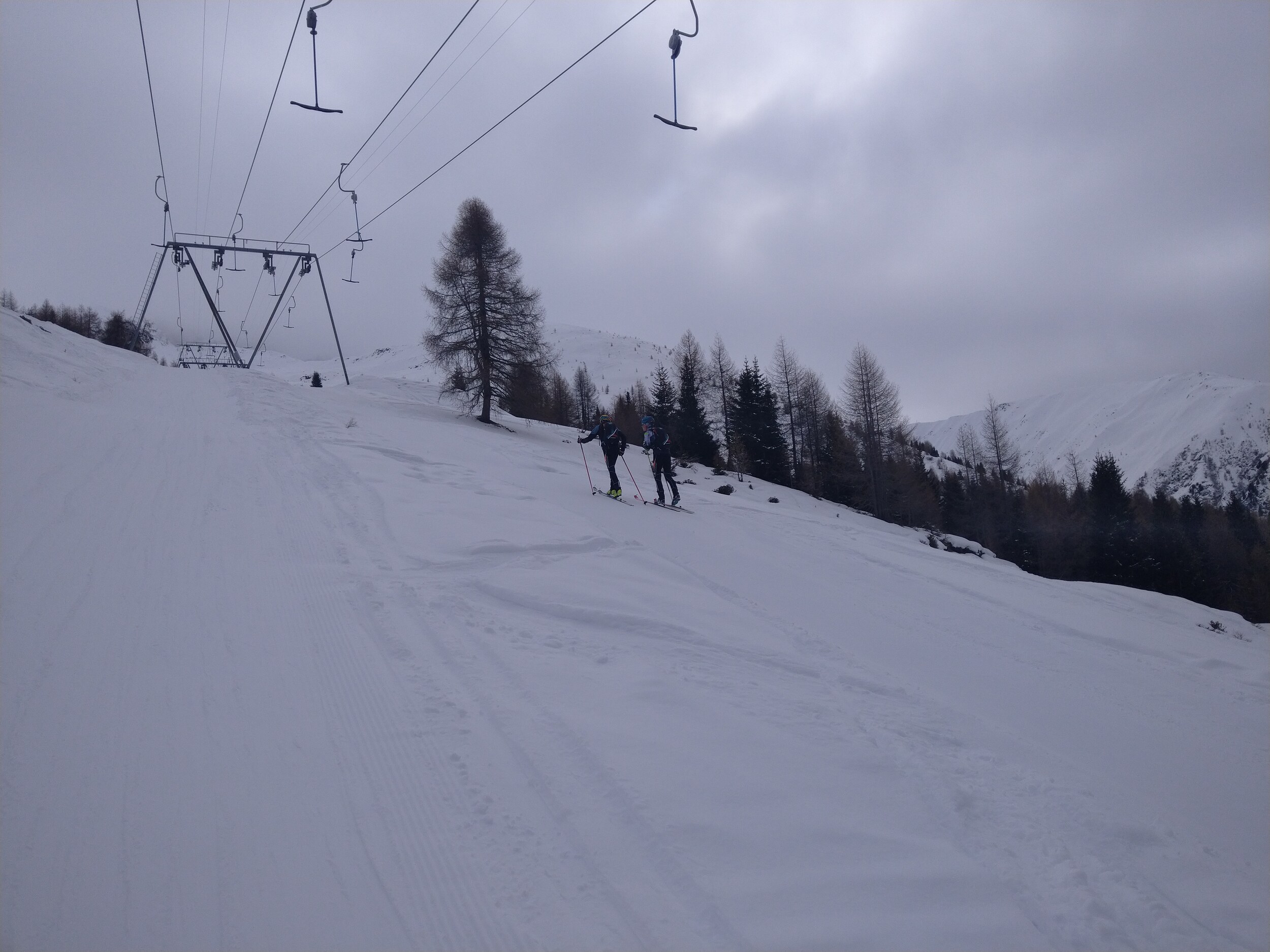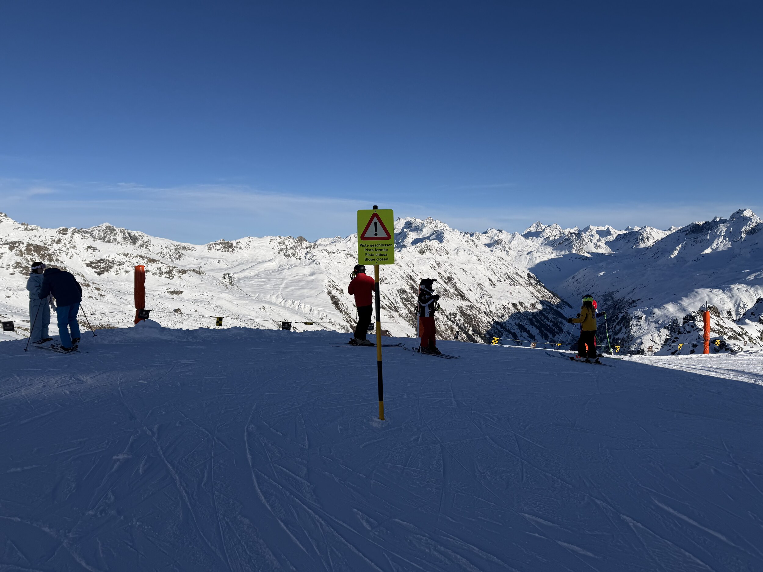 Wir machen um 13 Uhr die Talabfahrt, die top zu fahren ist. Momentan noch keine Leute.