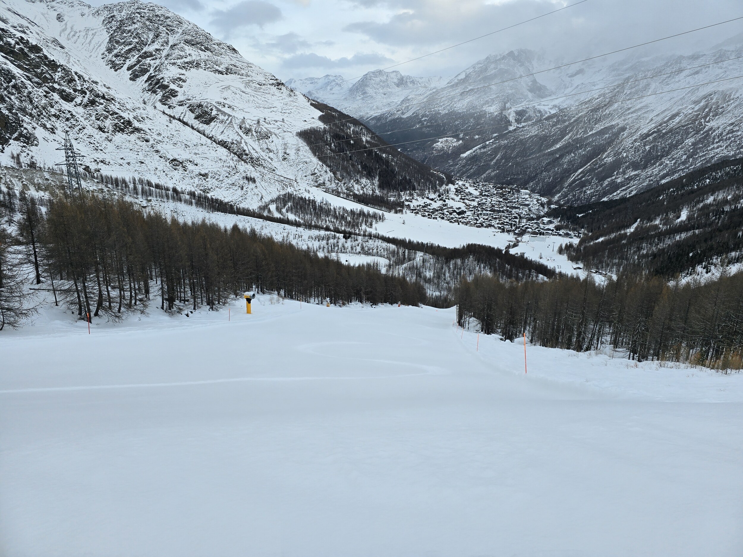 Heute 9h Start in Almagell. Mir fehlt noch eine Fahrt auf dem Furggu SL. Ich war sogar der erste auf dem Lift.
