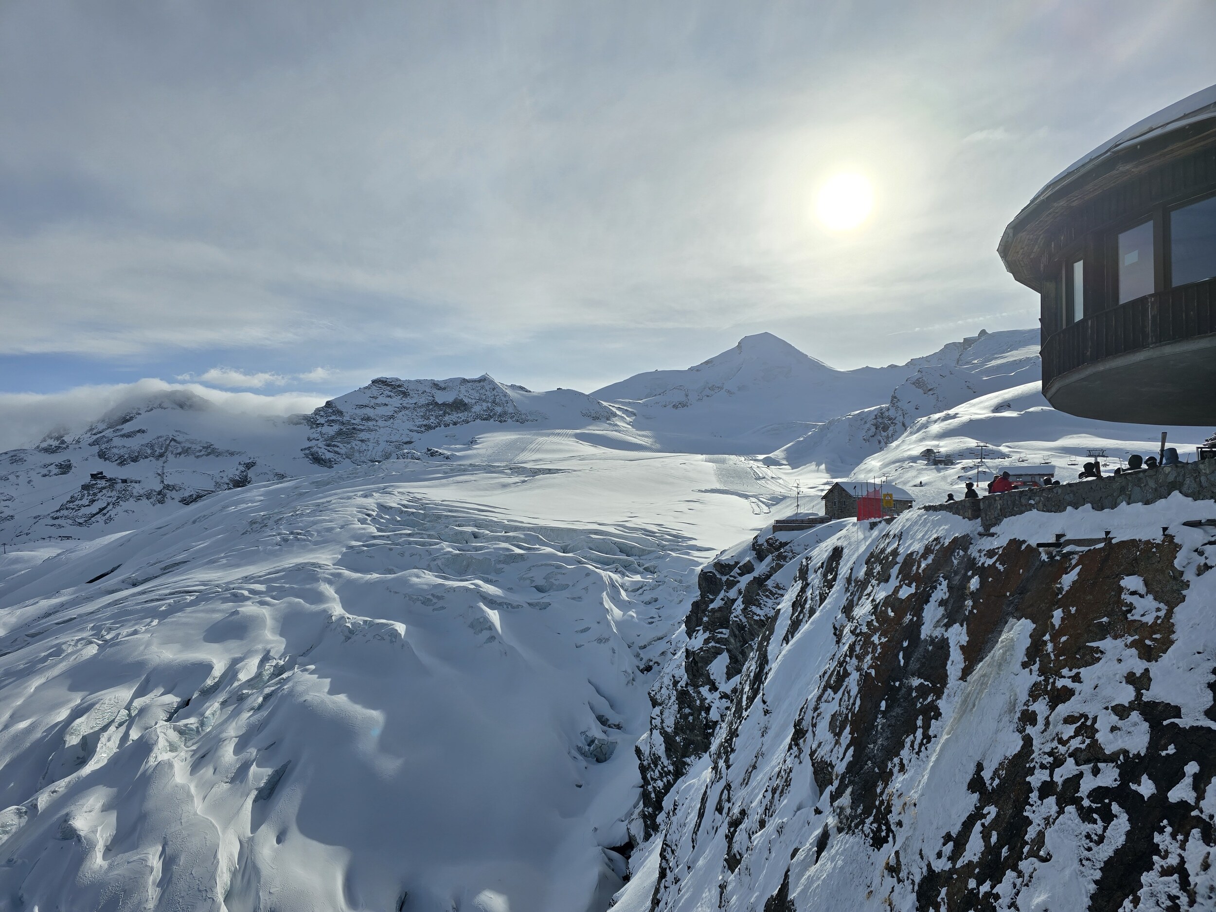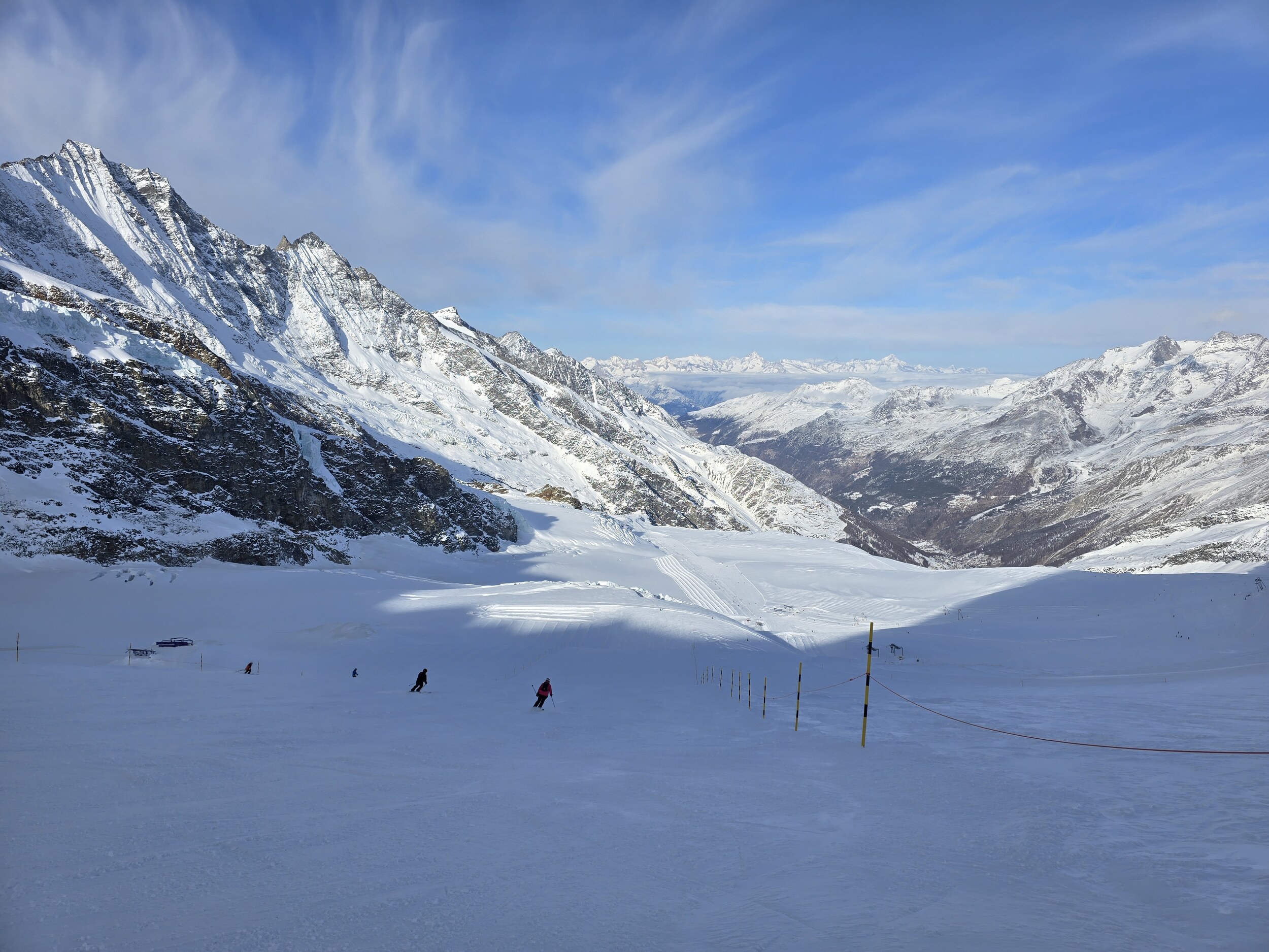 Ja, die 4000er Gletscherwelt ist immer wieder toll. Was mir heute noch aufgefallen ist: es waren fast ausschliesslich gute Skifahrer unterwegs. Z.B. am Gletscherband-Hang sind alle runtergeballert, deswegen gab es dort auch fast keine Buckel.