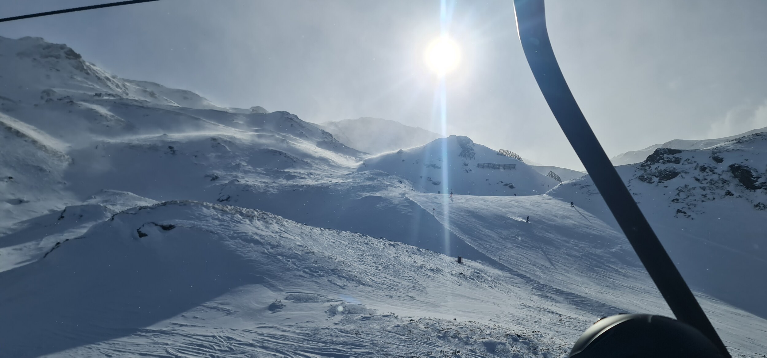 Nach einer Mittagsflaute frischt es wieder auf, ab lieber zurück, obwohl es hier bzgl. Schnee und Pisten 6 7 am besten ist.