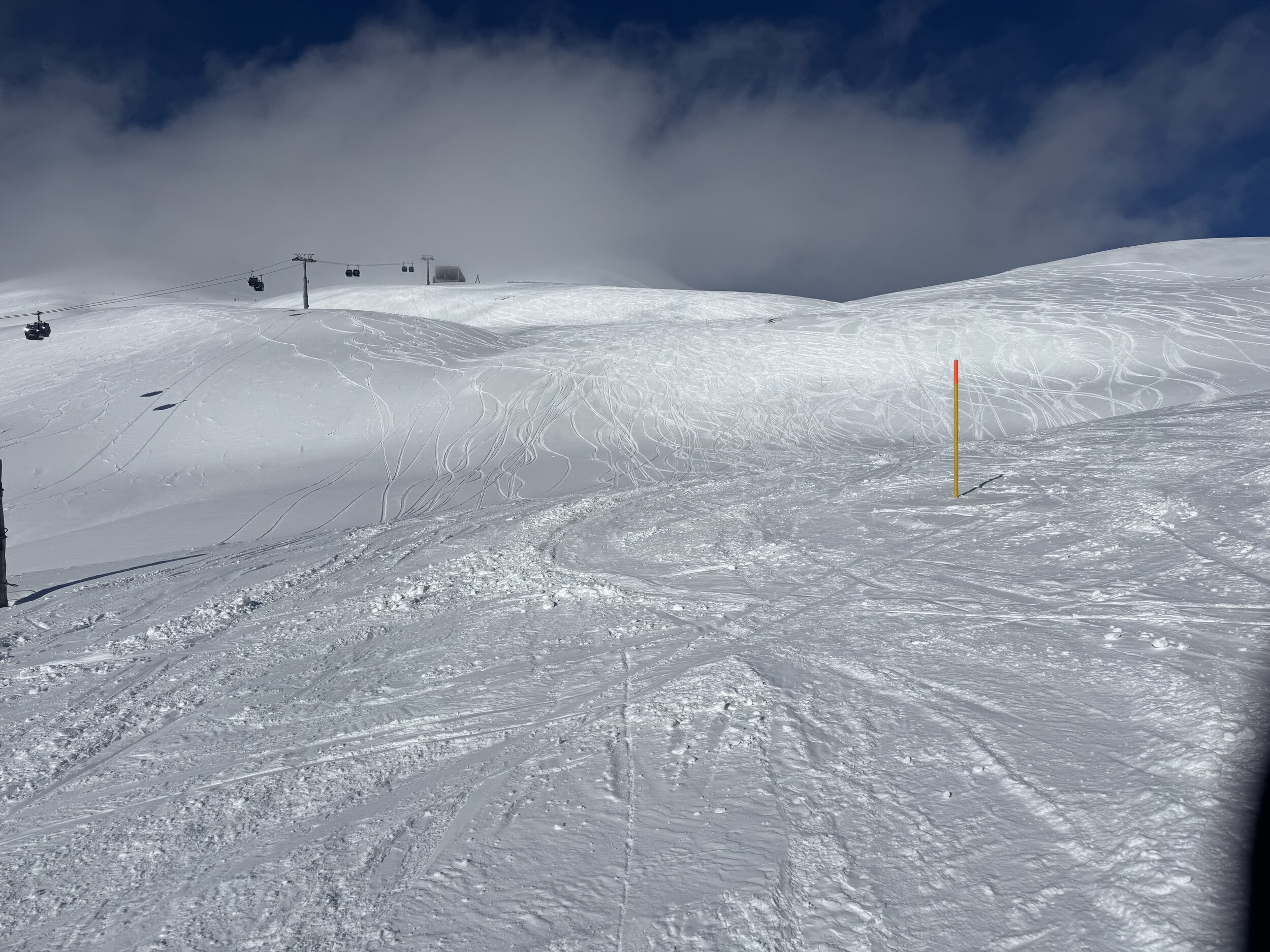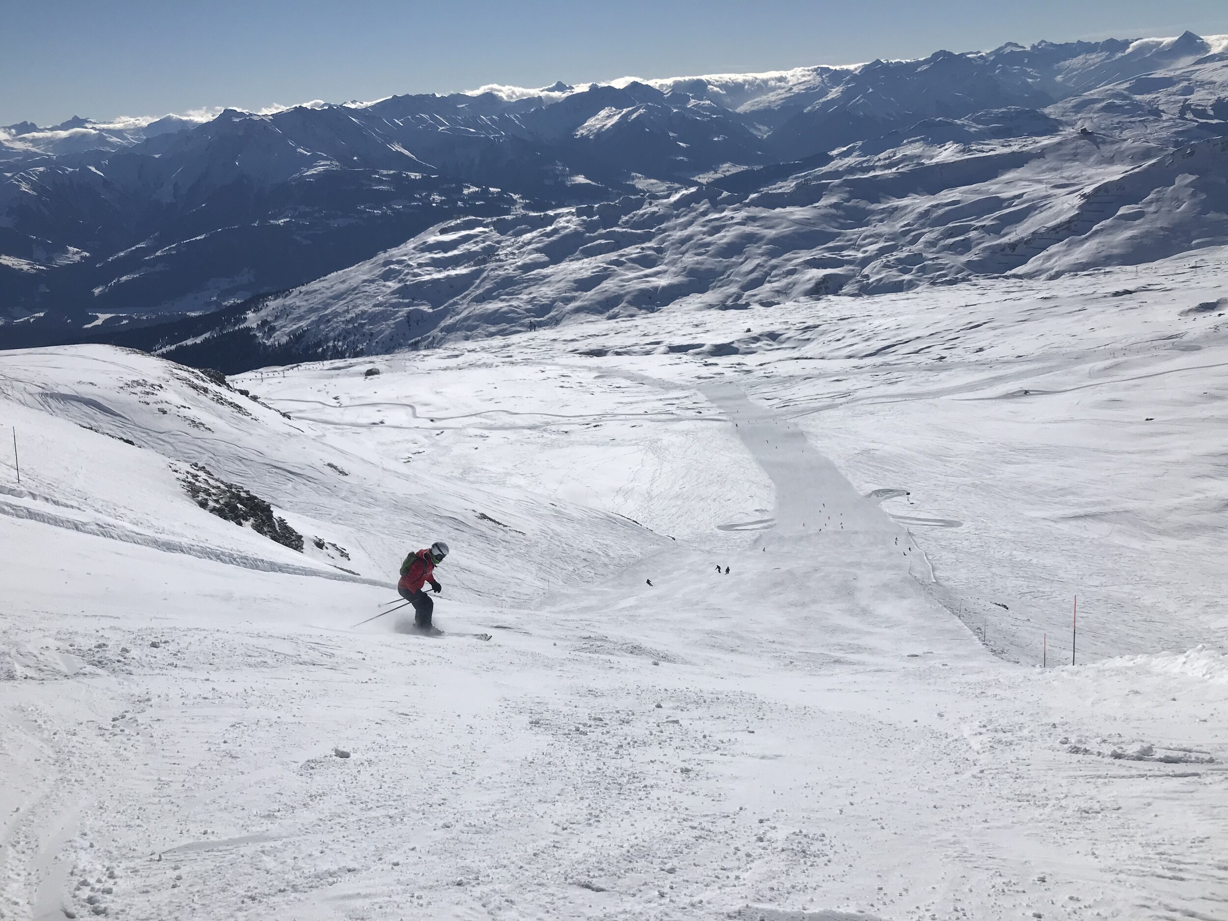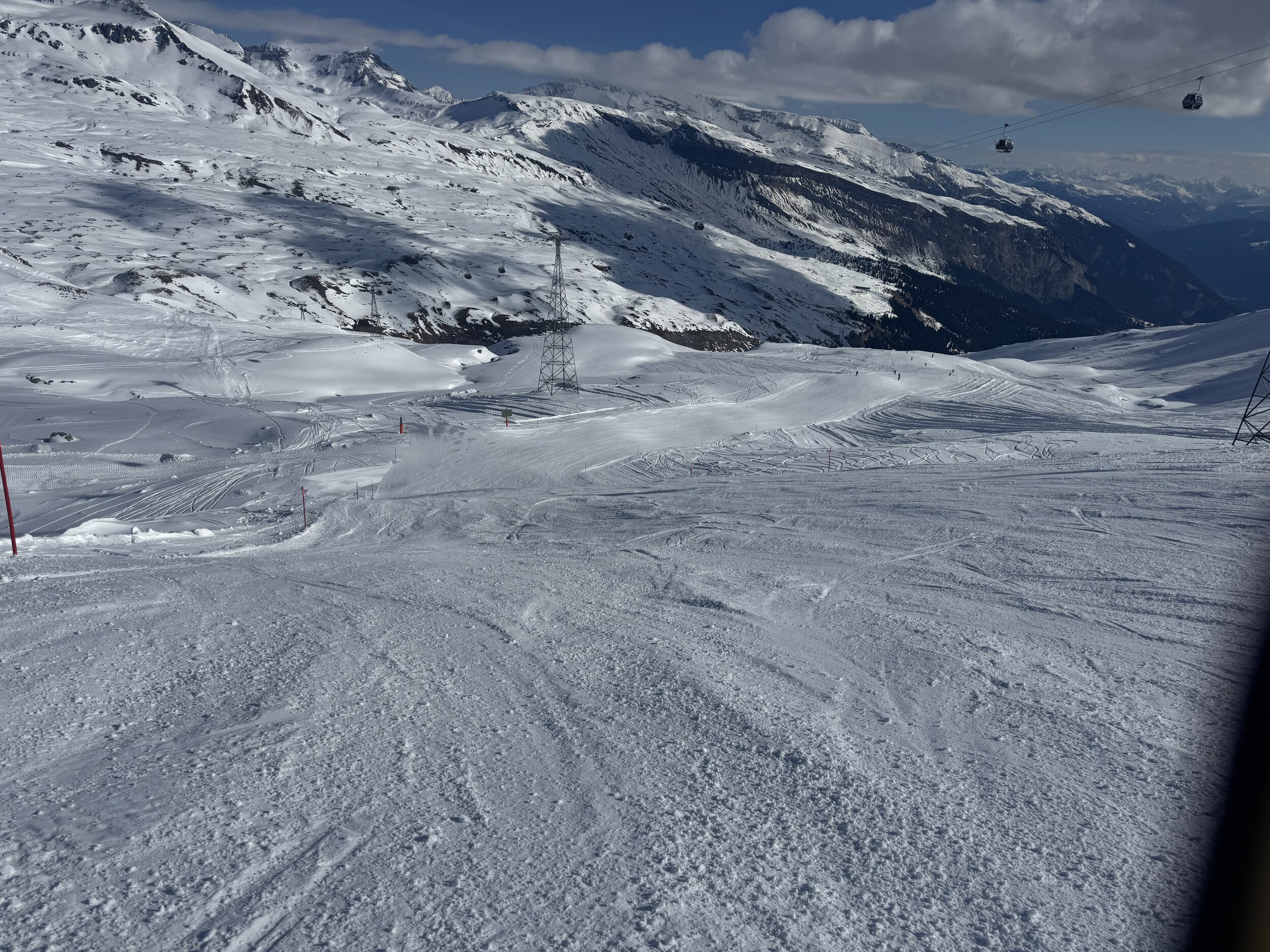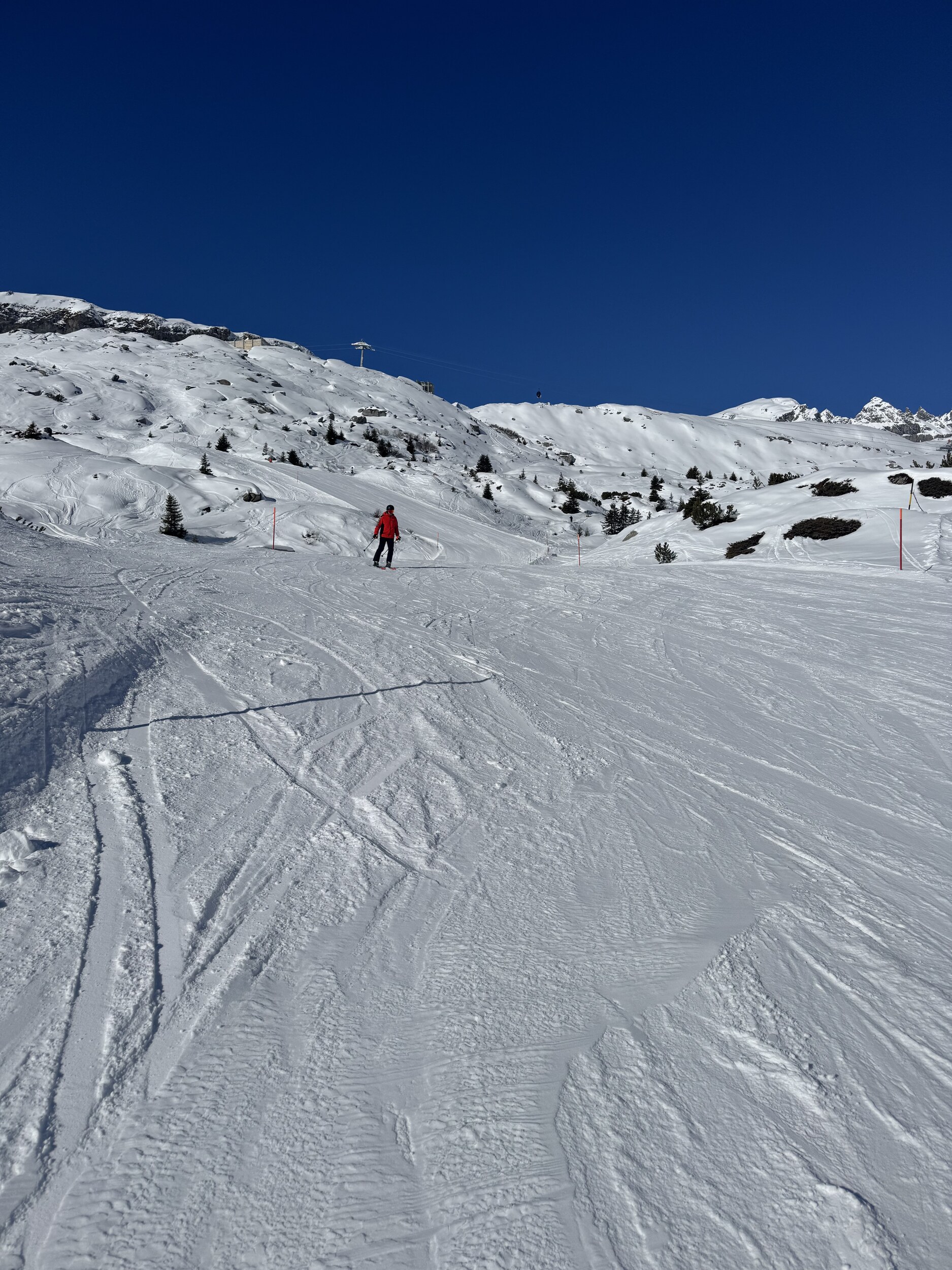 Kleine Runde gemacht: Am Morgen die Spinas top, danach 43 etwas langweilig, Schlange beim Anstehen bei Fuorcla, neue Gondeln schaufeln jedoch gut weg, Piste 31 Vorab-Fuorcla auch gut, im Anschluss Siala Ost bis Startgels absolut top. Erstmals auf Cassons gestanden, schönes Panorama, aber Zustand der Freeride-Piste fragwürdig (nur 71 offen, nicht gefahren). FlemX fährt wie am Schnürchen. Später Siala West oben einen fiesen Stein oder Eisblock erwischt, unten Piste aber top. Zurück über Crap und Spinas, am Nachmittag immer noch gut. Etwas überraschend waren die Autobahnpisten beim Crap (51 und 52) tiptop.