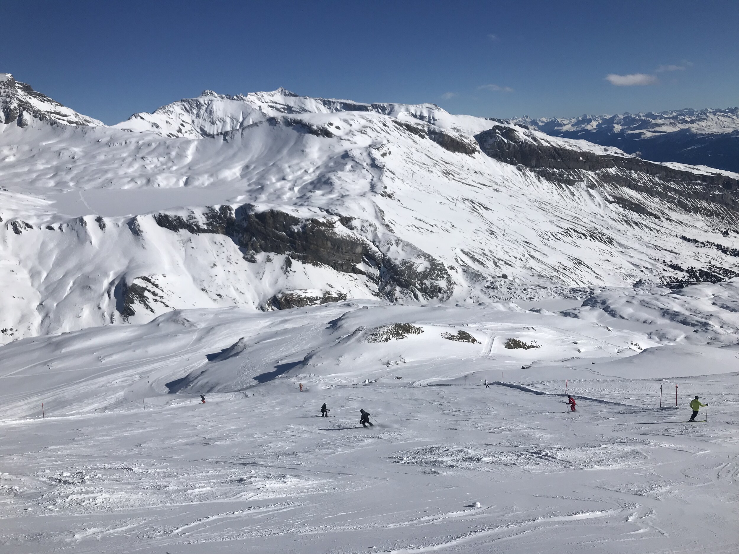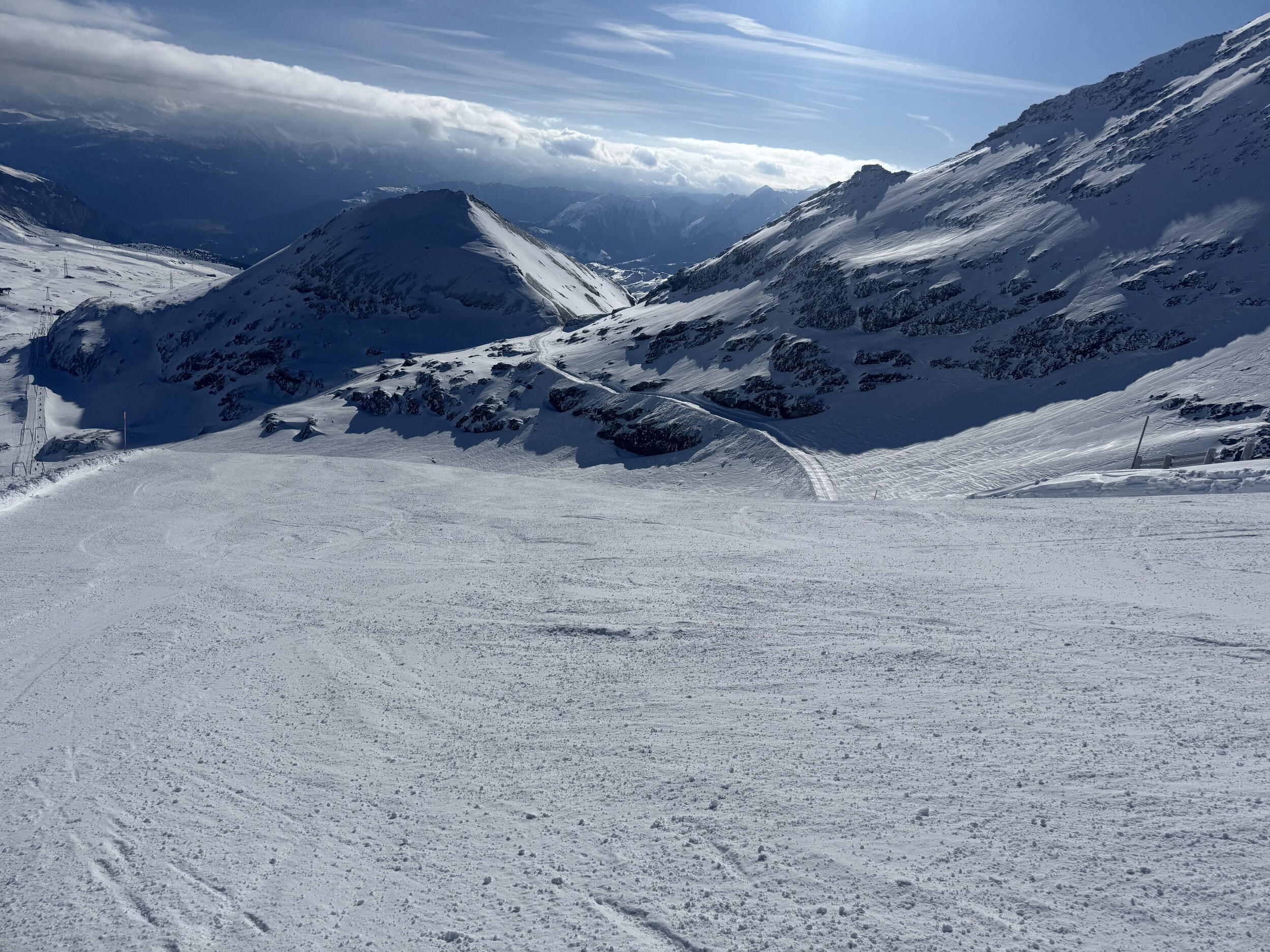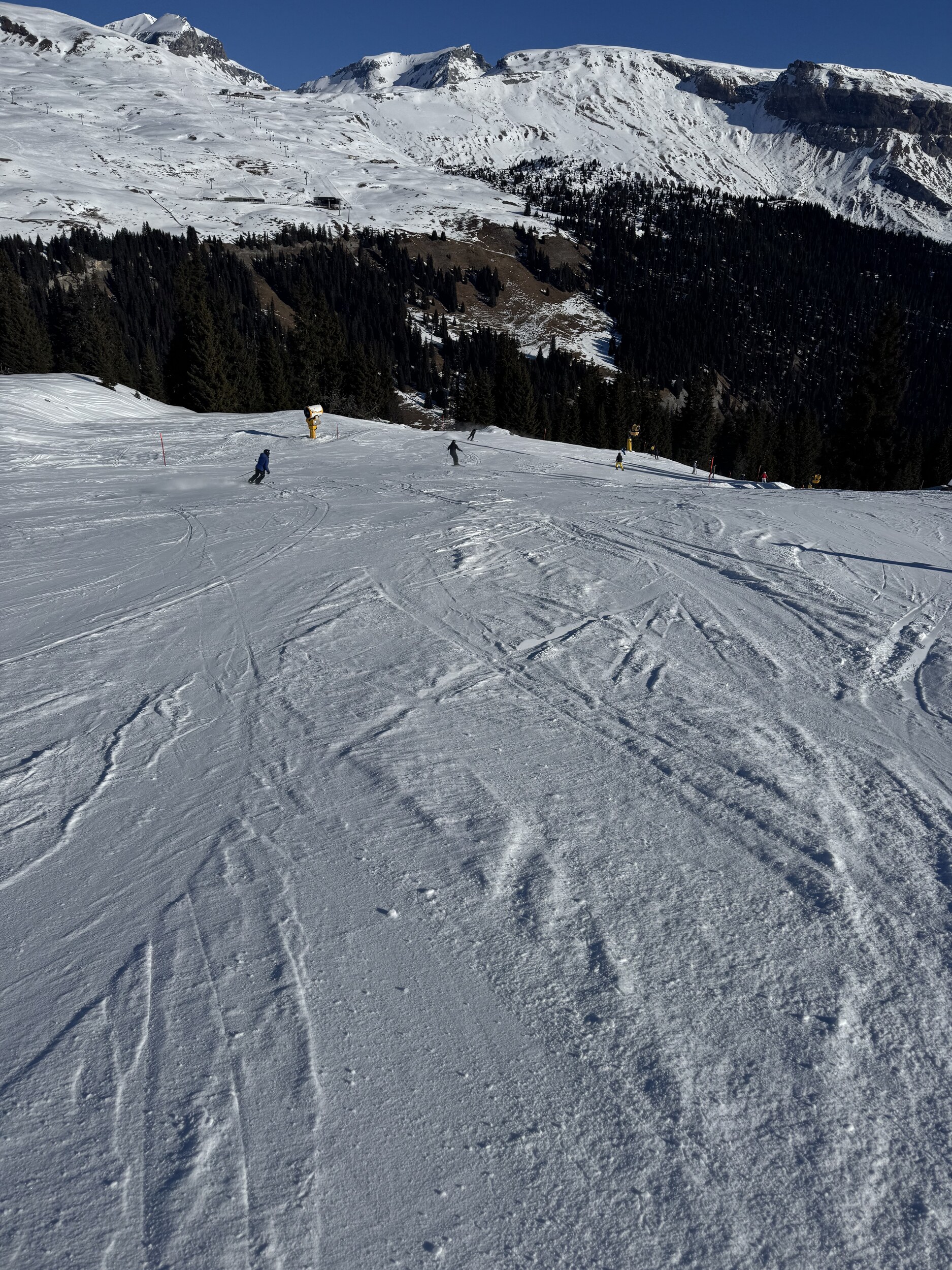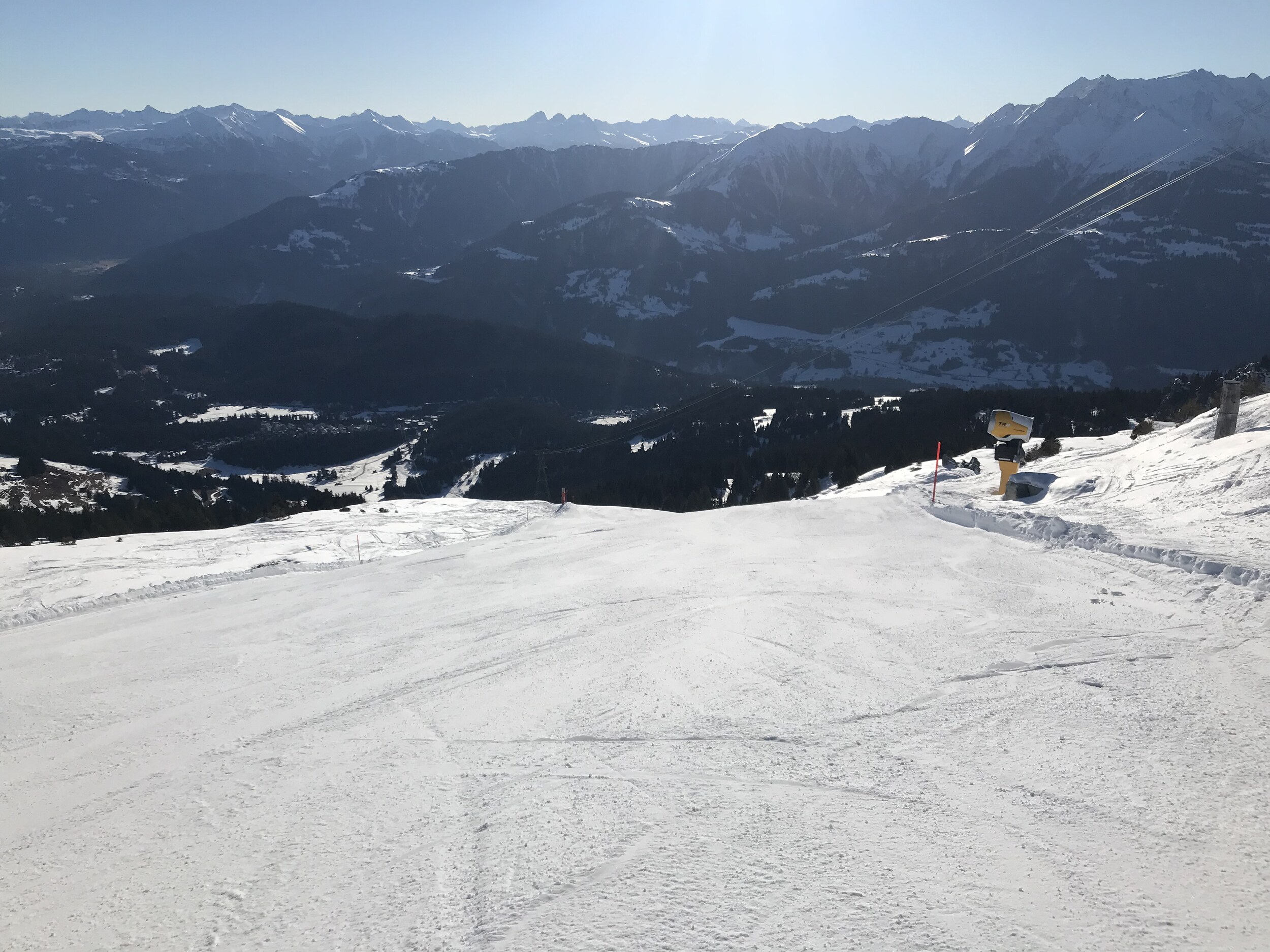 Kleine Runde gemacht: Am Morgen die Spinas top, danach 43 etwas langweilig, Schlange beim Anstehen bei Fuorcla, neue Gondeln schaufeln jedoch gut weg, Piste 31 Vorab-Fuorcla auch gut, im Anschluss Siala Ost bis Startgels absolut top. Erstmals auf Cassons gestanden, schönes Panorama, aber Zustand der Freeride-Piste fragwürdig (nur 71 offen, nicht gefahren). FlemX fährt wie am Schnürchen. Später Siala West oben einen fiesen Stein oder Eisblock erwischt, unten Piste aber top. Zurück über Crap und Spinas, am Nachmittag immer noch gut. Etwas überraschend waren die Autobahnpisten beim Crap (51 und 52) tiptop.