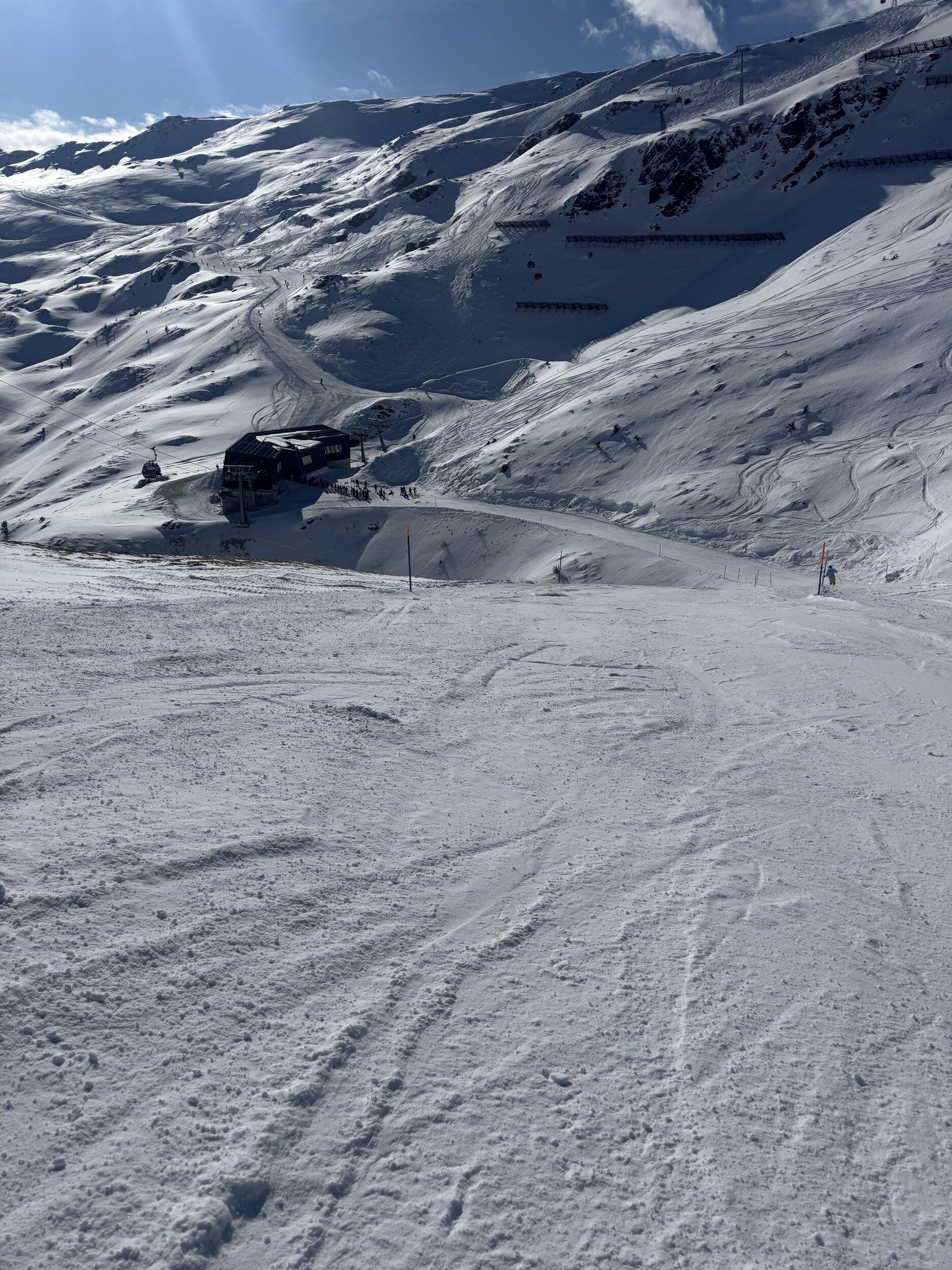 Unter dem Strich war heute ein sehr guter Tag mit viel Sonnenschein und top Verhältnissen. Das eingeschränkte Angebot nervt. Trotzdem kann man sich gut beschäftigen. Kaum Anstehzeiten bei 9300 Leuten.