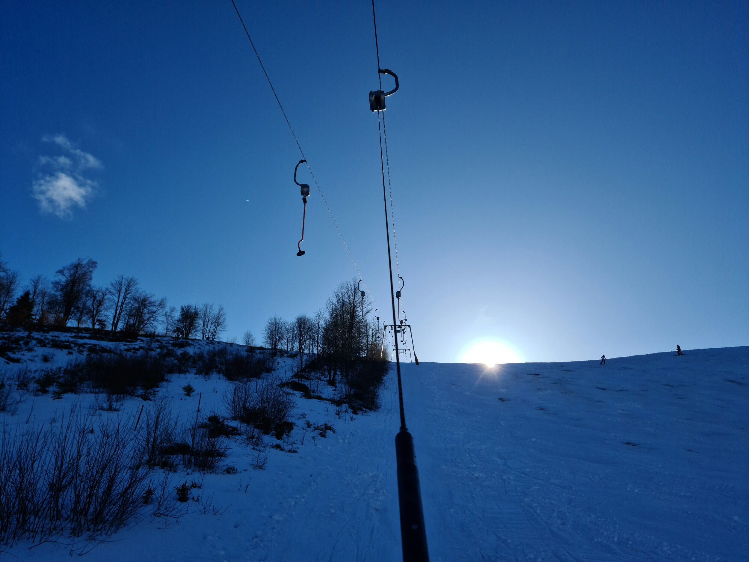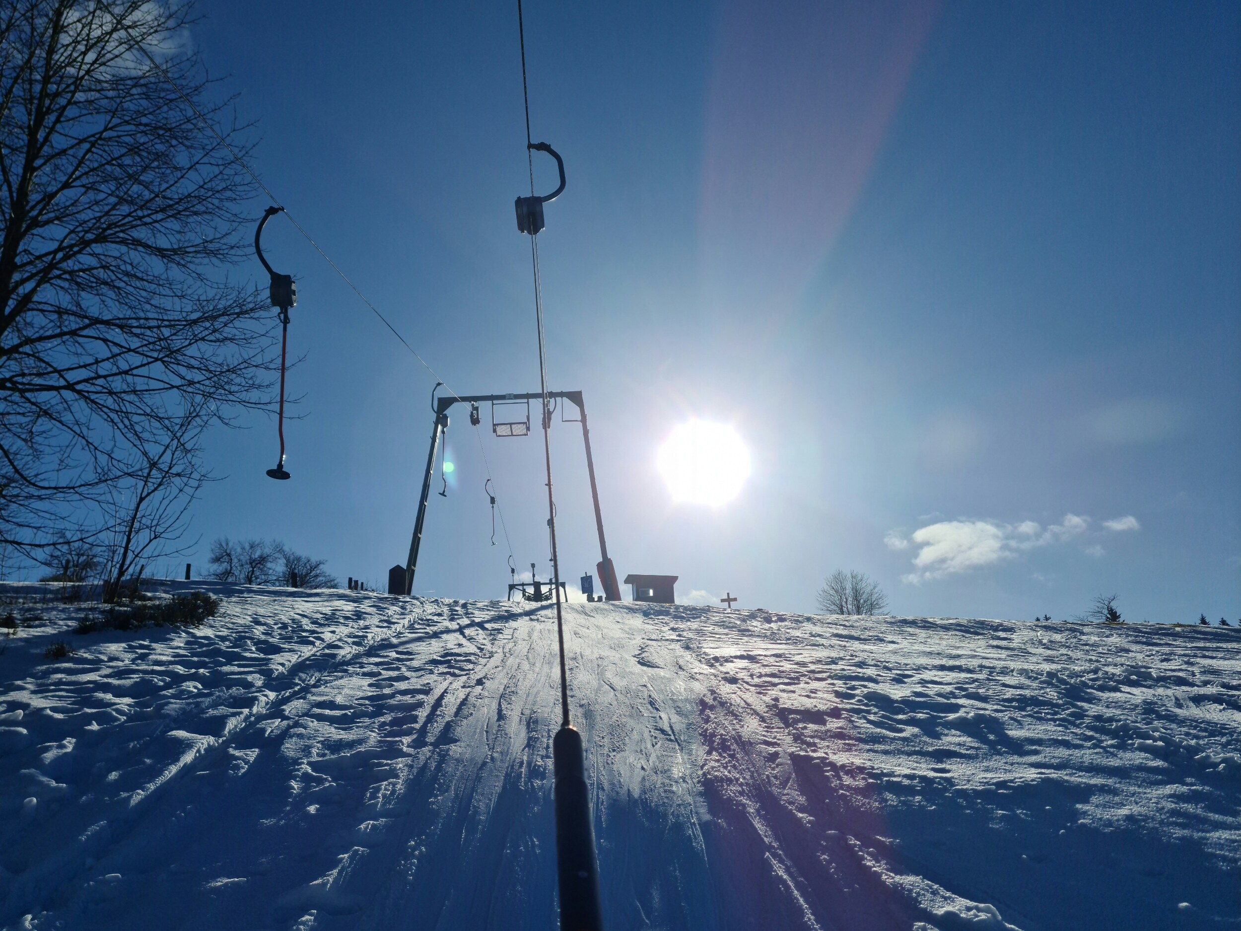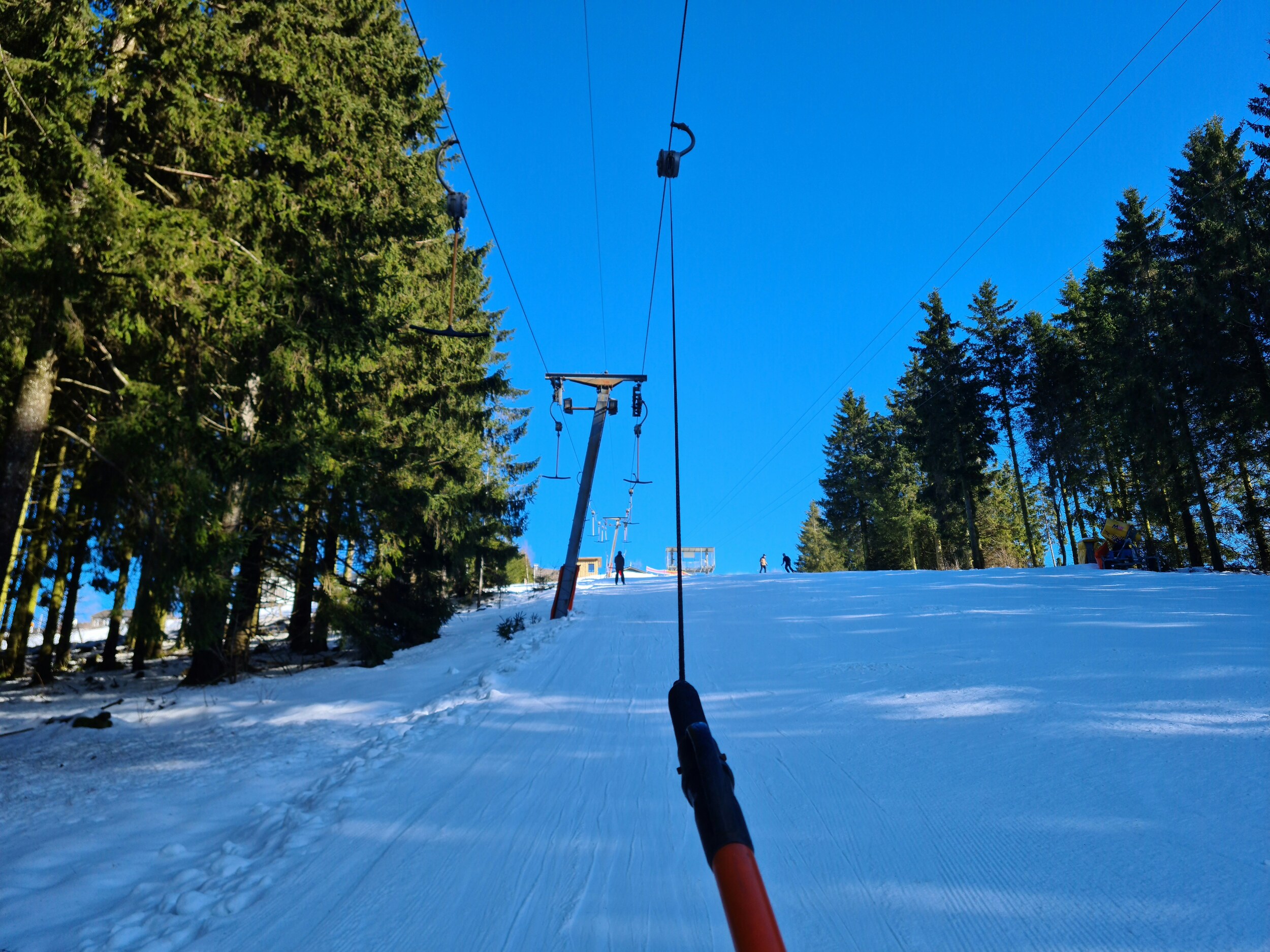 Und so fiel die Wahl relativ klar auf Altastenberg. Wenngleich es, wie schon im Januar bei den Eschenbergliften, nachdem heute eigentlich nicht wirklich Skifahren auf dem Programm stand, leider wieder ein kurzer Skitag wurde, war es doch sehr schön, den Steilhanglift, den ich zuletzt vor recht langer Zeit gefahren bin, endlich wieder einmal zu fahren. Seit dem hat er sich übrigens deutlich verändert. Einerseits wurde er von Langbügeln auf Langteller umgerüstet, andererseits wurde er im Zuge des Baus der Kapellenhangbahn um ca. 20m verkürzt, wobei er auf die Einstiegsstütze folgende, einseitige Stütze verlor, sodass er nun 3 statt 4 Zwischenstützen hat. Dem Fahrspaß tut das aber keinen Abbruch. Der weggefallene Teil hatte kaum Höhenmeter, der Lift startet nun direkter in den Steilhang.