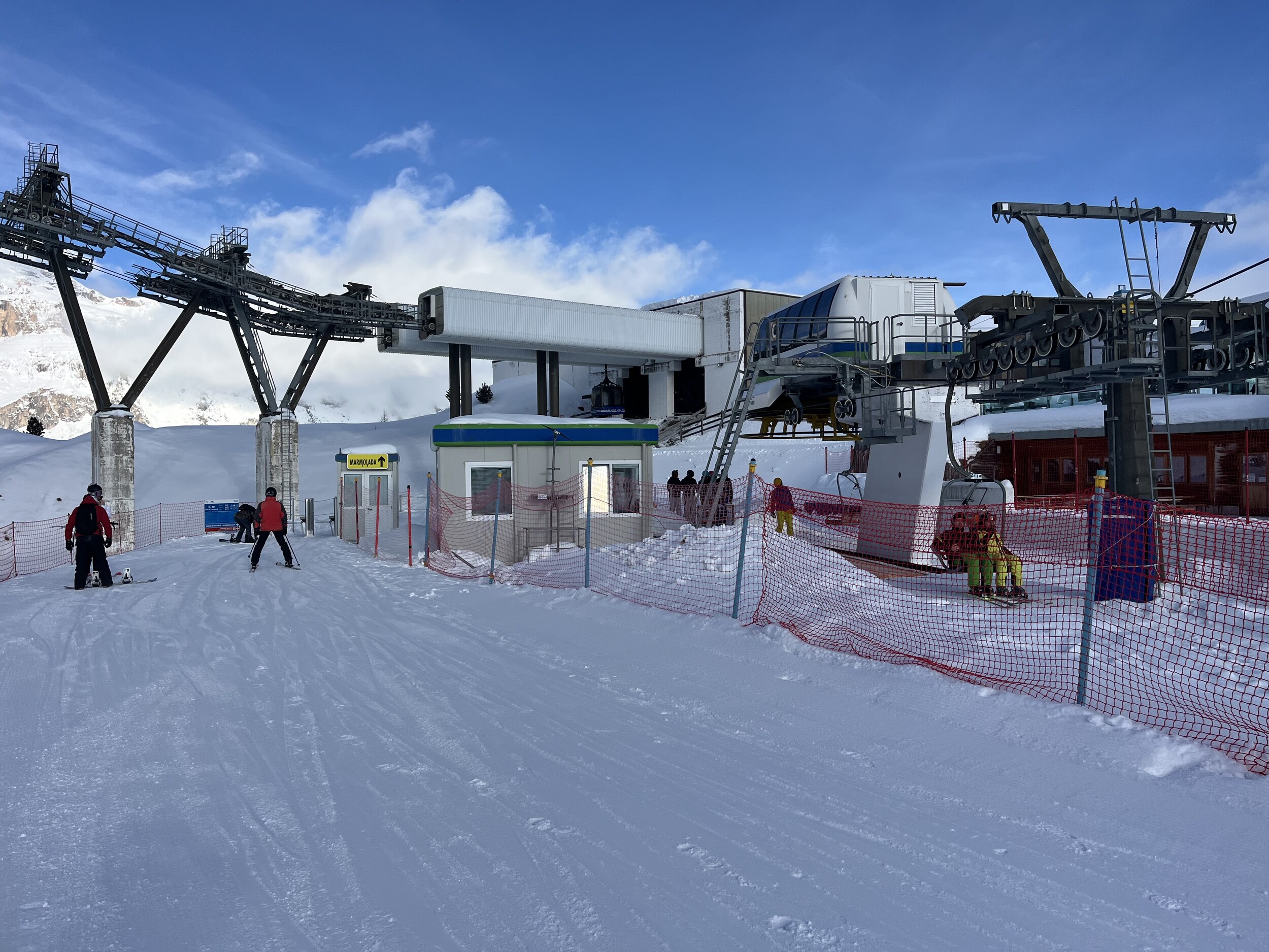 Ungewöhnlich, dass 6 Leute beim Padon-Sessel einsteigen. Aber auch an der Marmoladabahn, sind es nur rund 10. "