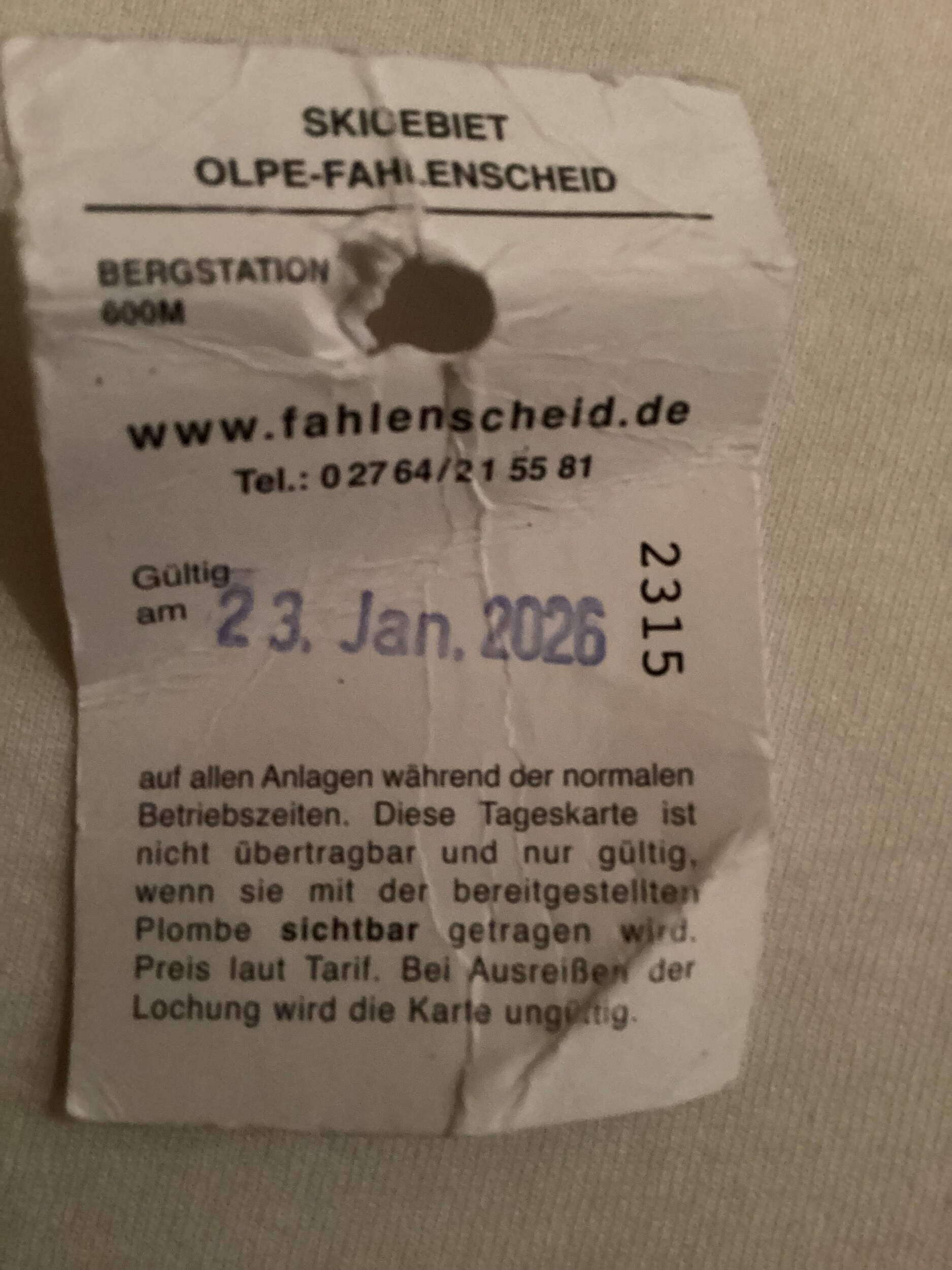 Hier habe ich als Nachtrag (gestern) noch „den Skipass“ in meiner Skijacke gefunden.