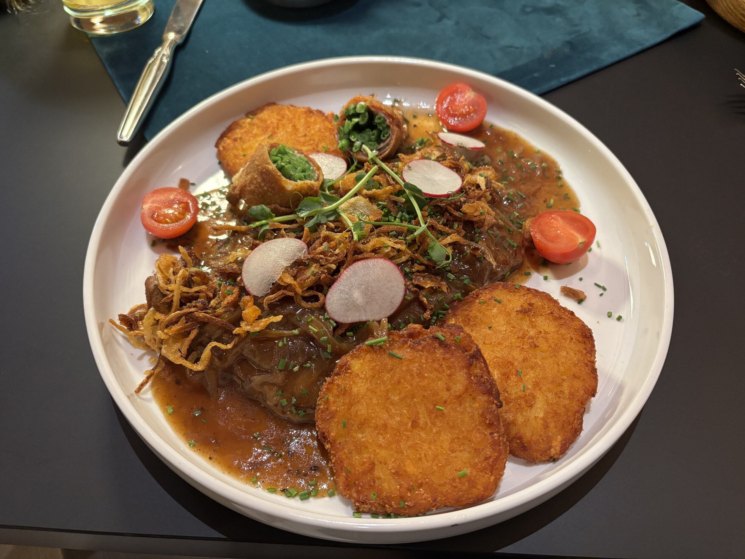Also vor allem das Rehtartar und die geschmorte Hirschbacke sind schon fein fein fein