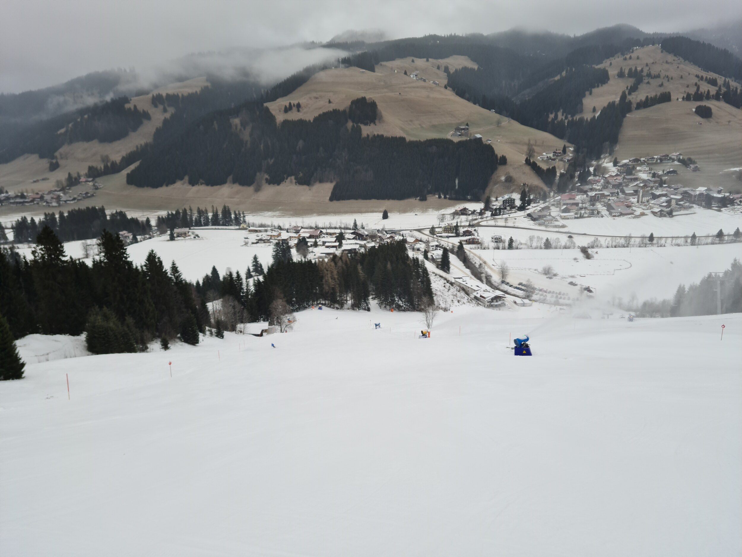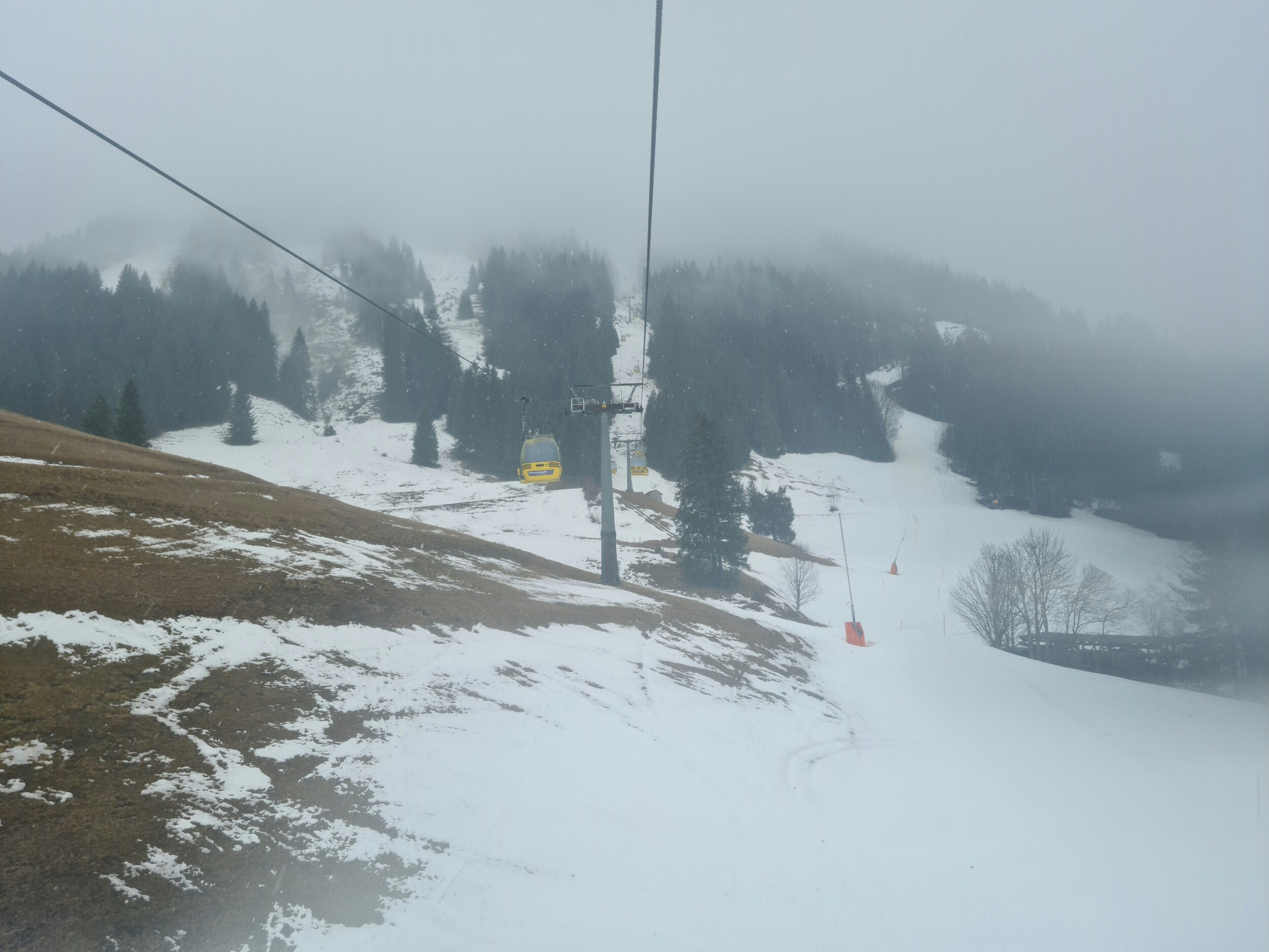 Leider kann man mangels Schnee in Schattwald und auf den Naturschneepisten momentan nicht Skifahren, wobei die Wannenjochbahn zumindest für Fußgänger fährt.