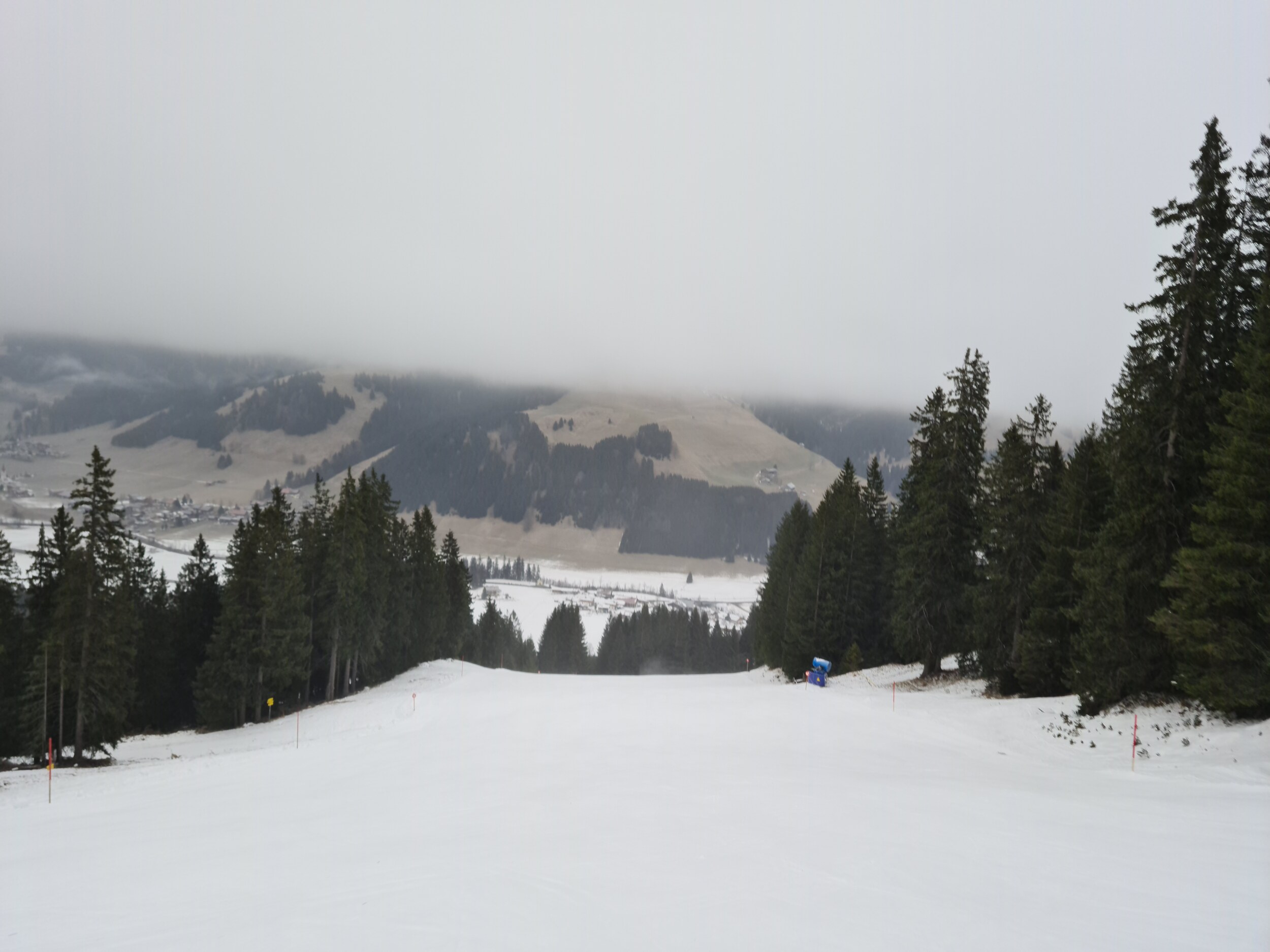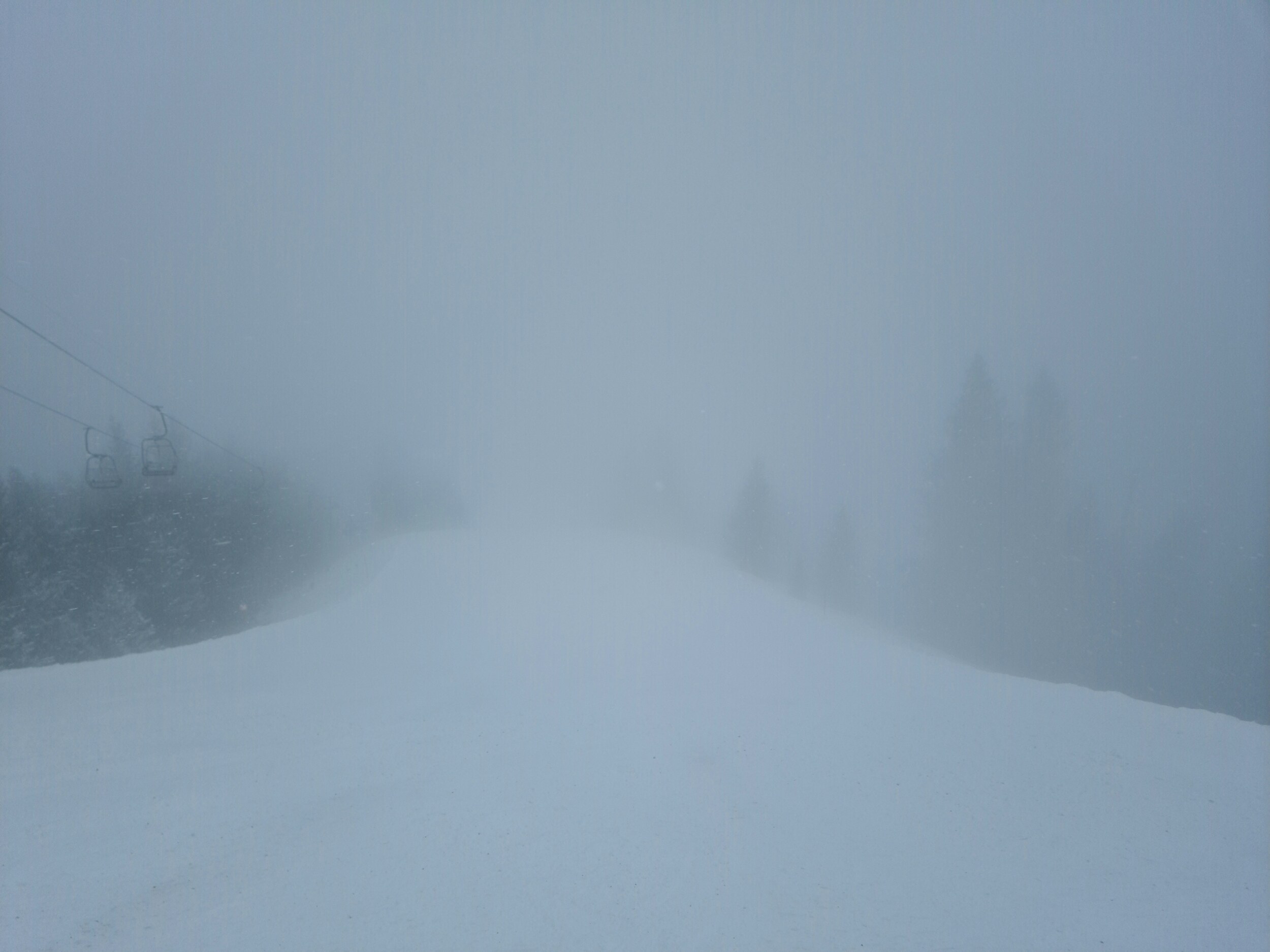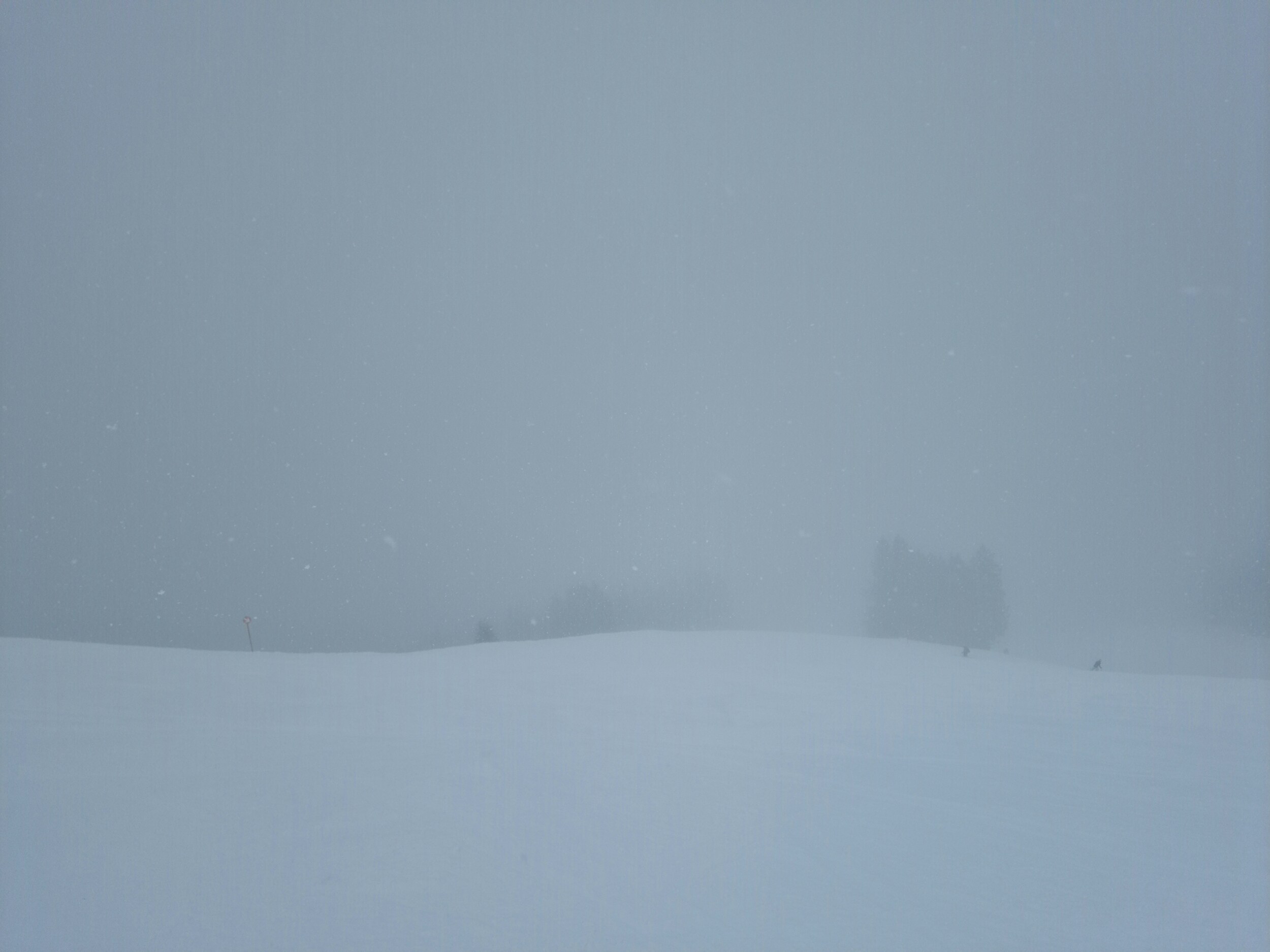 So ging es dann noch kurz zum Neunerköpfle. Auch hier ist natürlich Schneefall und über dem untersten Stück der Talabfahrt und dem Ressebichllift auch Nebel. Die Bodensicht variiert von sehr schlecht zu sehr gut fahrbar. Da schon absehbar ist, dass keine Fortsetzung folgen wird, nenne ich das hier mal nicht Livebericht, auch wenn er teilweise live in der Bahn entstanden ist.