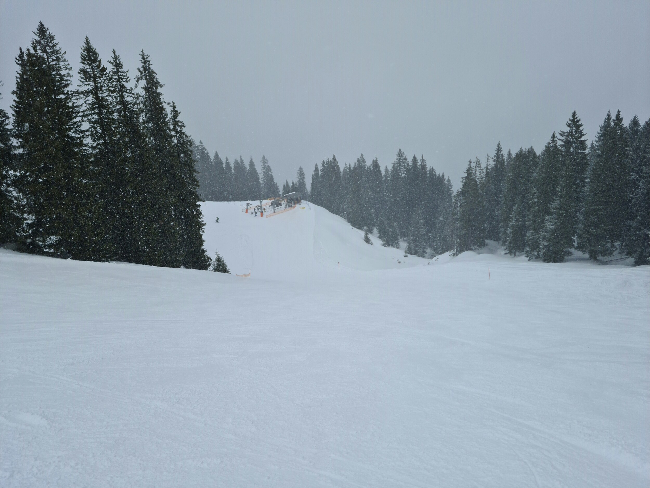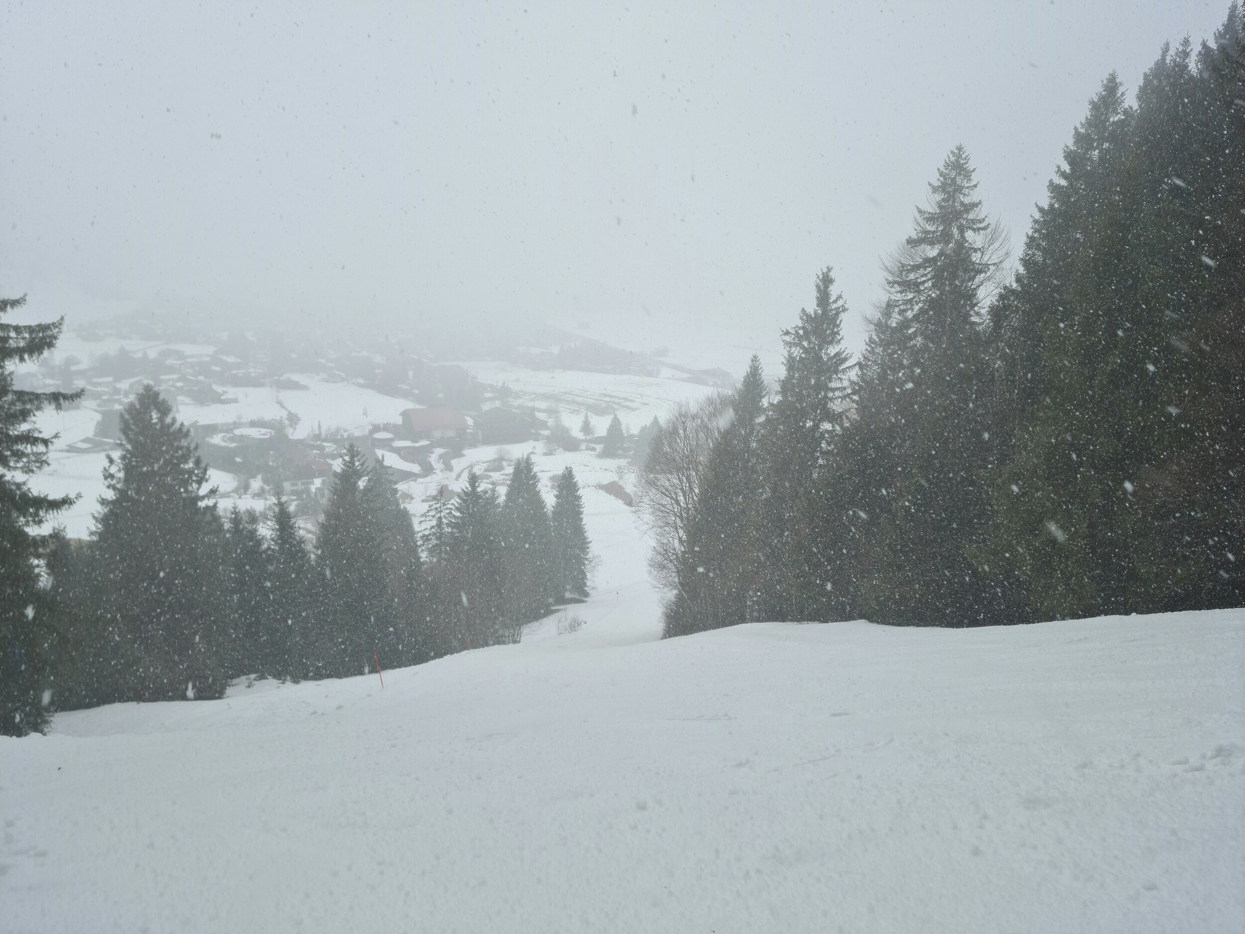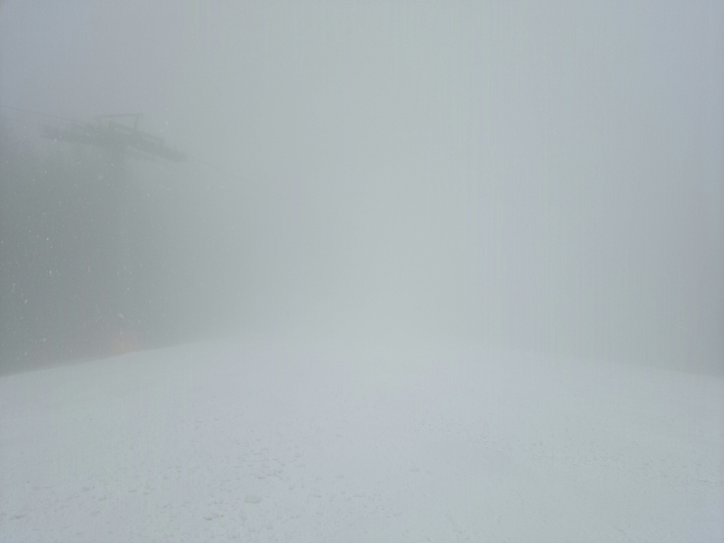 So ging es dann noch kurz zum Neunerköpfle. Auch hier ist natürlich Schneefall und über dem untersten Stück der Talabfahrt und dem Ressebichllift auch Nebel. Die Bodensicht variiert von sehr schlecht zu sehr gut fahrbar. Da schon absehbar ist, dass keine Fortsetzung folgen wird, nenne ich das hier mal nicht Livebericht, auch wenn er teilweise live in der Bahn entstanden ist.