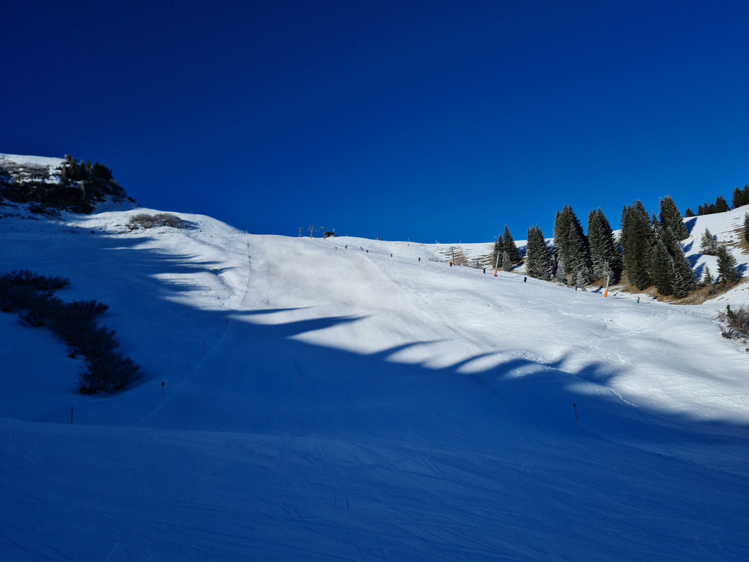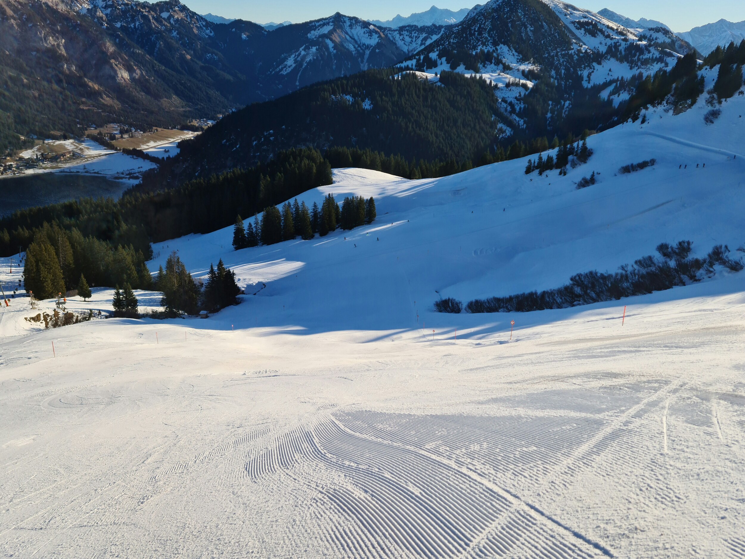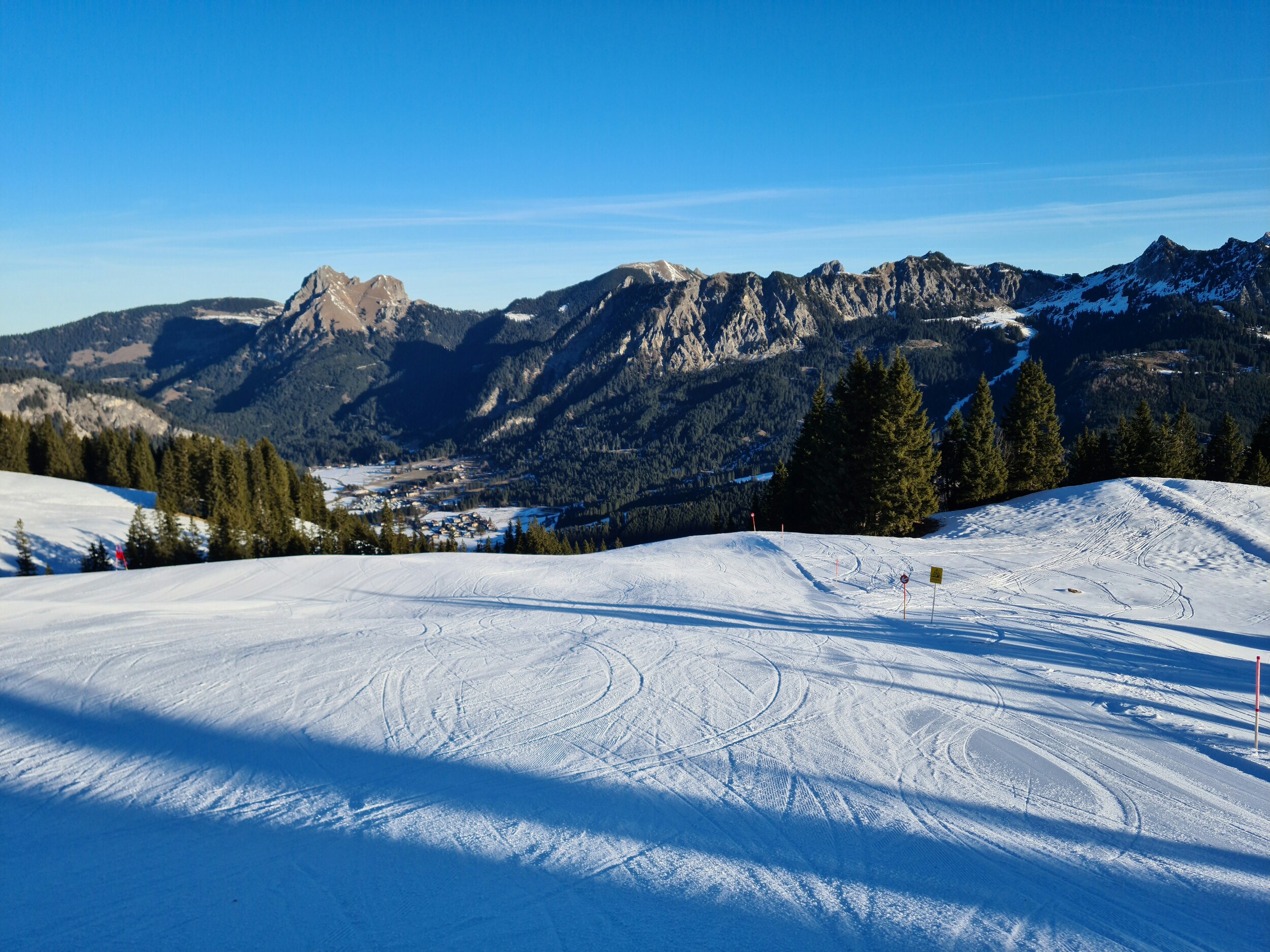 Heute wieder am Neunerköpfle. Es hat seit meinem letzten Bericht schätzungsweise 15-20cm geschneit. Da in der Nacht zu heute die letzten cm kamen, waren die Pisten an den Gundliften (jetzt sind auch die von unten aus rechten Roten geöffnet!) recht schnell zerfahren. Zudem war es nun voll, was aber angesichts des sonnigen Wetters und des Neuschnees auch nicht wirklich verwundert. Ansonsten war es ziemlich kalt, dank Sonne am Berg aber noch in Ordnung, wobei es auf dem Berg gefühlt aich nicht so kalt wie im Tal war. Steine sind noch immer, wenn auch im geringeren Maße anzutreffen. Die Talabfahrt wird aktuell noch beschneit, vielleicht geht da und an der DSB ja bald was.
