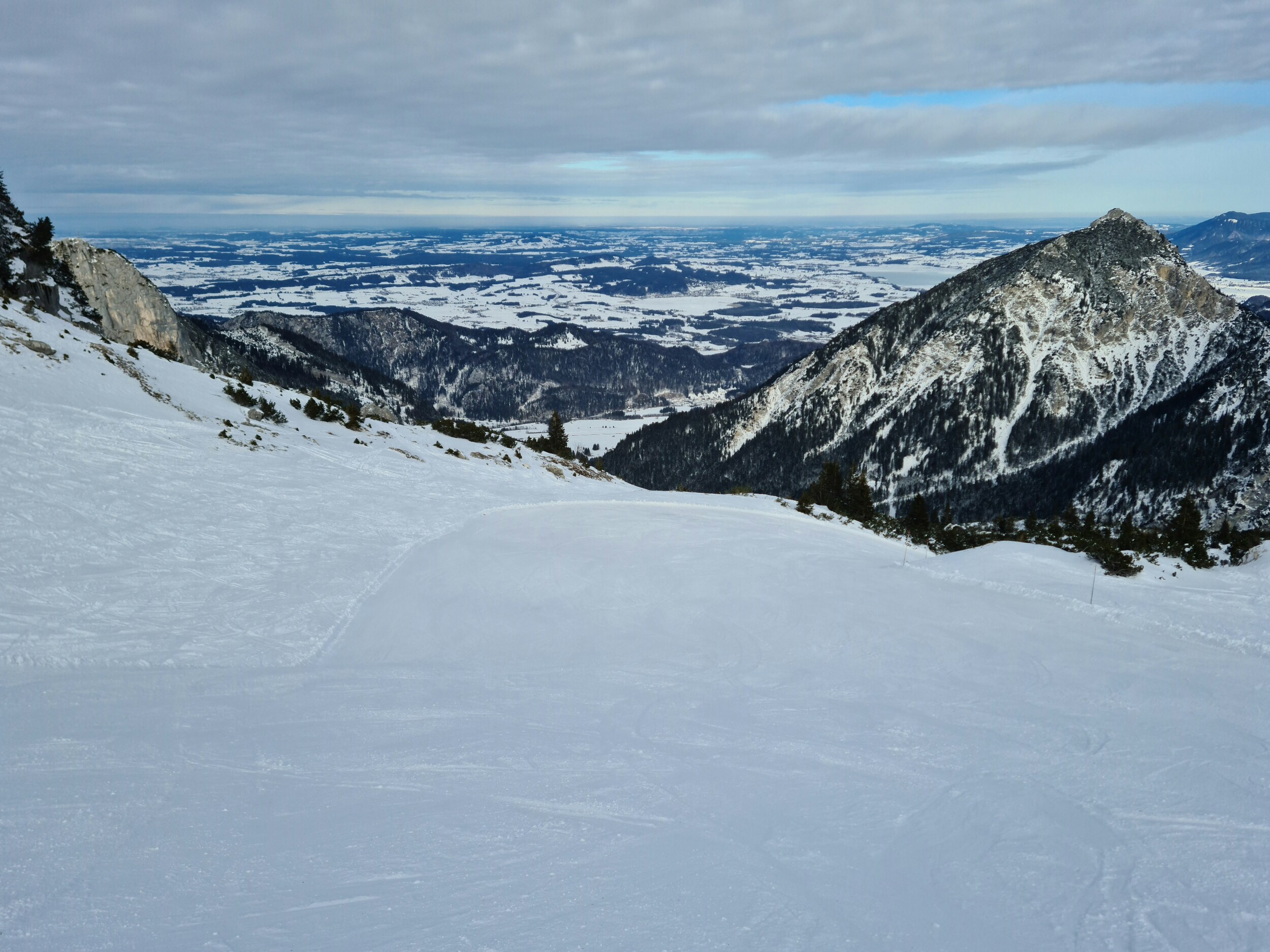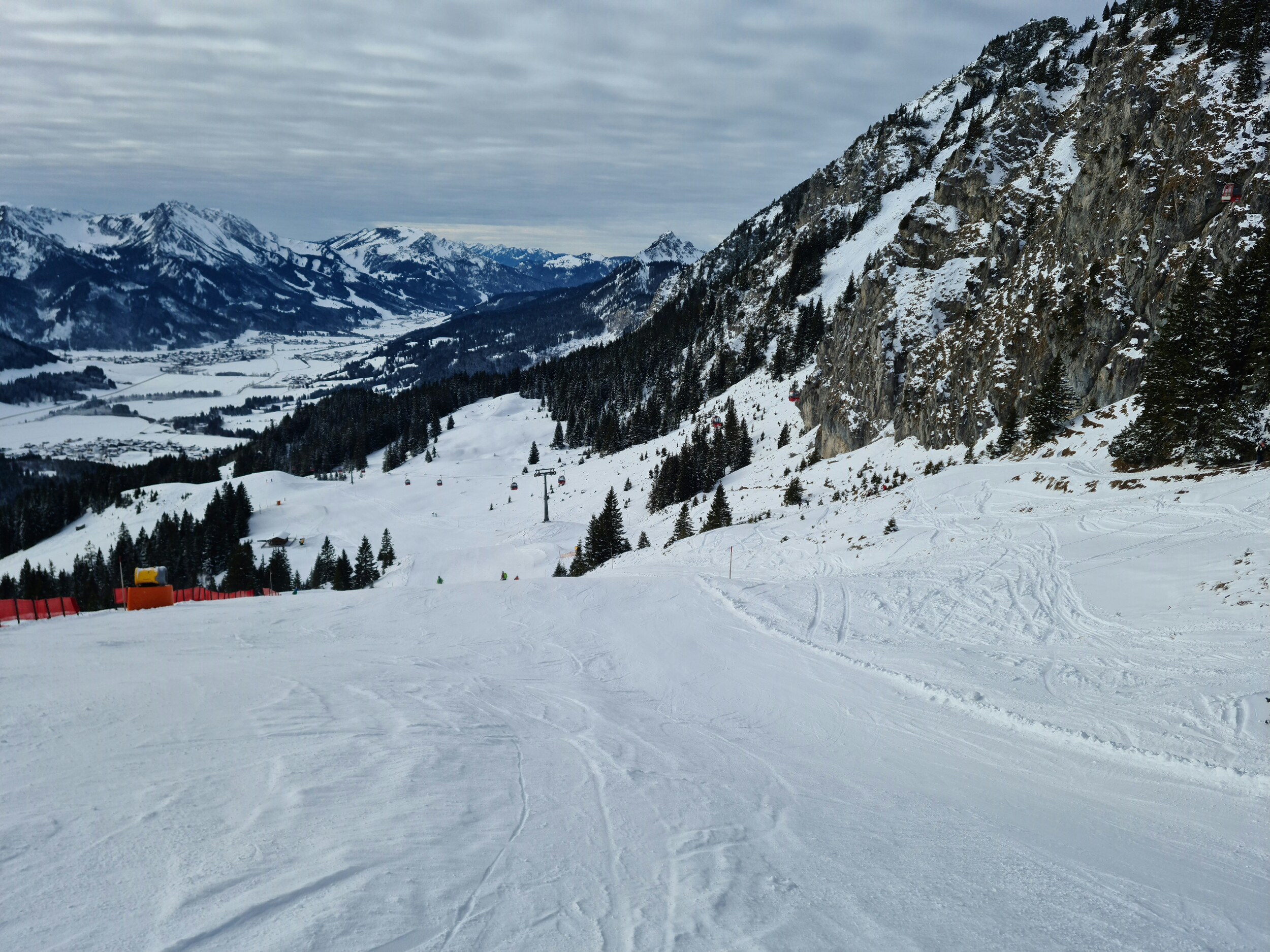 Am Neunerköpfle war es heute ziemlich gut. Kaum noch Leute, Steine gibt es aber sowohl an den von unten aus gesehen linken Pisten am Hang und dem Auslauf vor der Talstation, die innere der Roten Abfahrten auf der rechten Seite hat auch einzelne Steine, die Äußere dagegen quasi nichts. An der DSB-Abfahrt waren einige teils größere Steine, davon abgesehen war die Abfahrt aber super zu fahren. Hier gibt es 9 Punkte, Abzüge für die Steine und die geschlossene Talabfahrt.