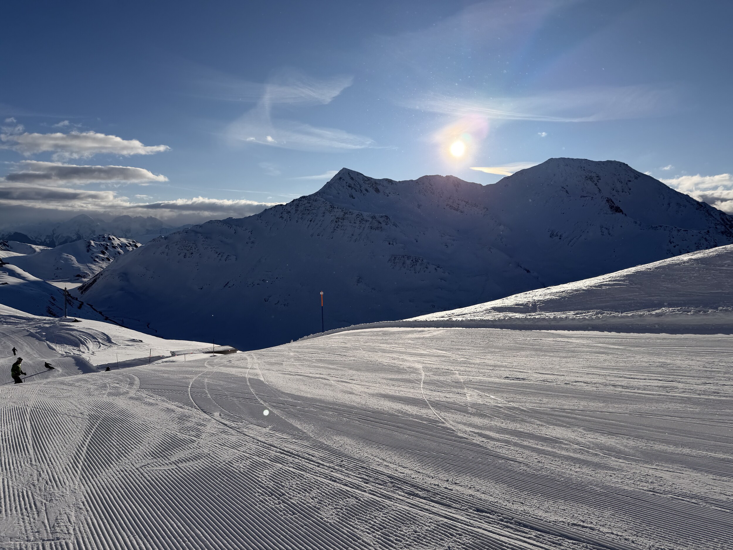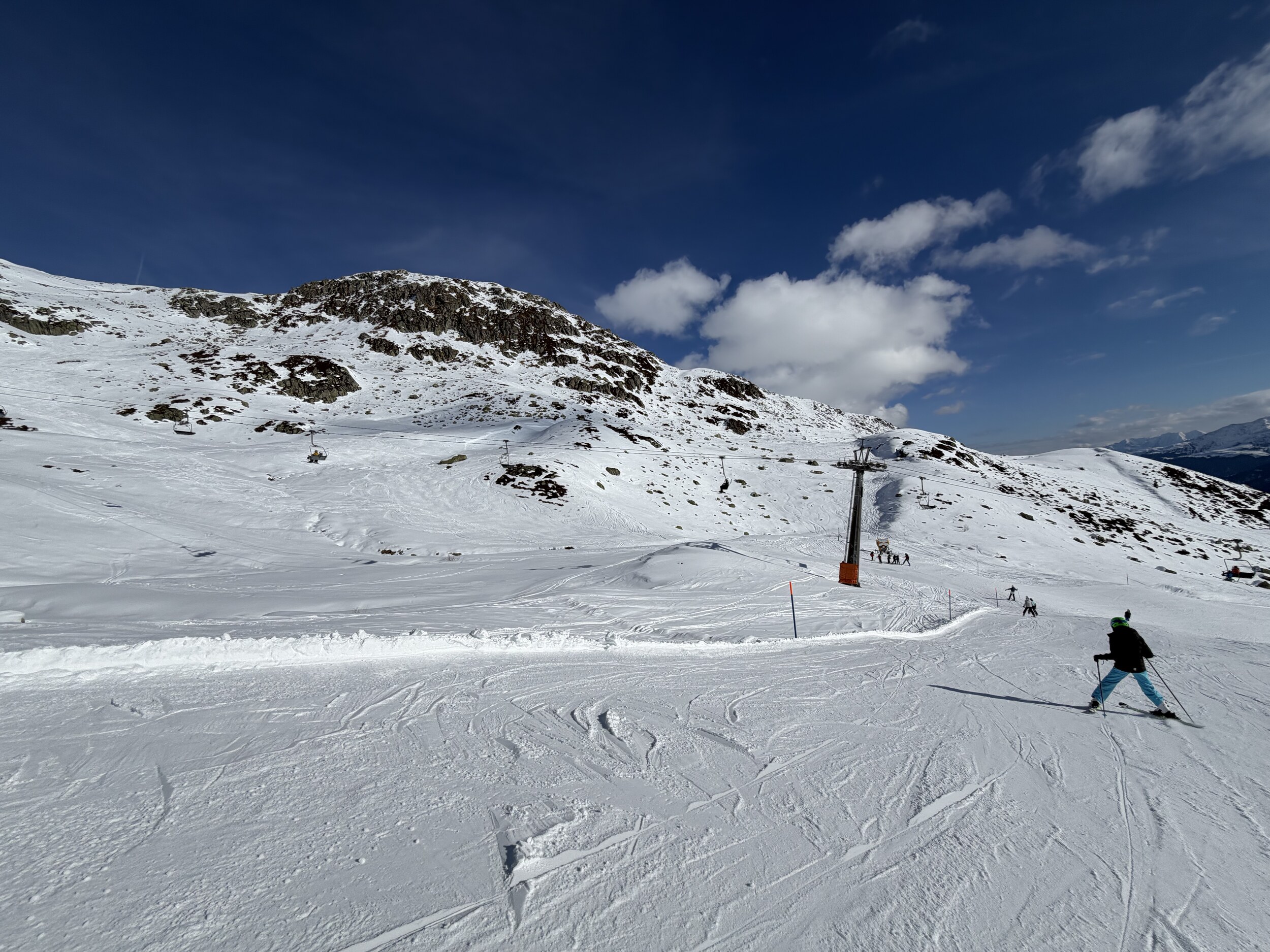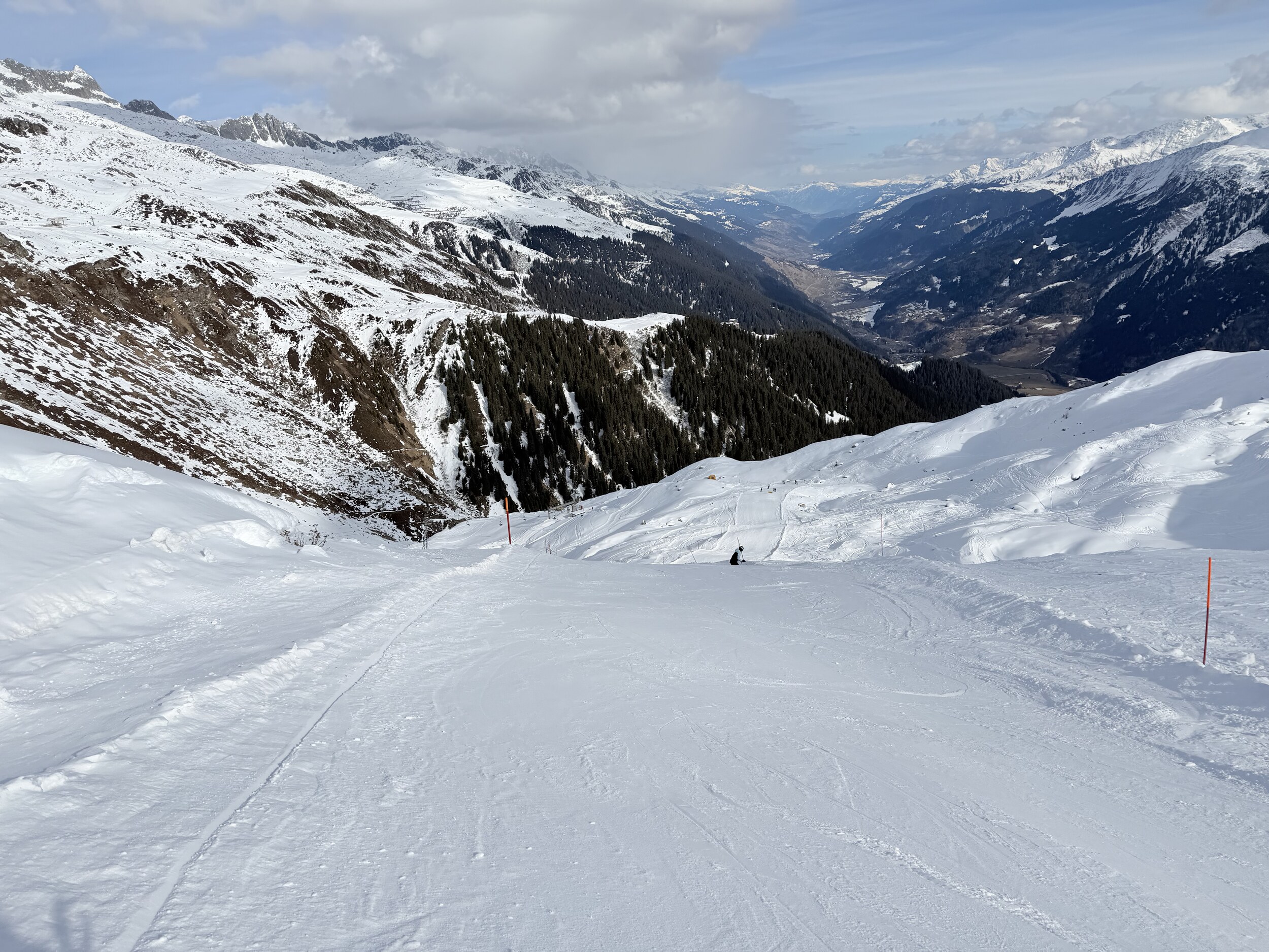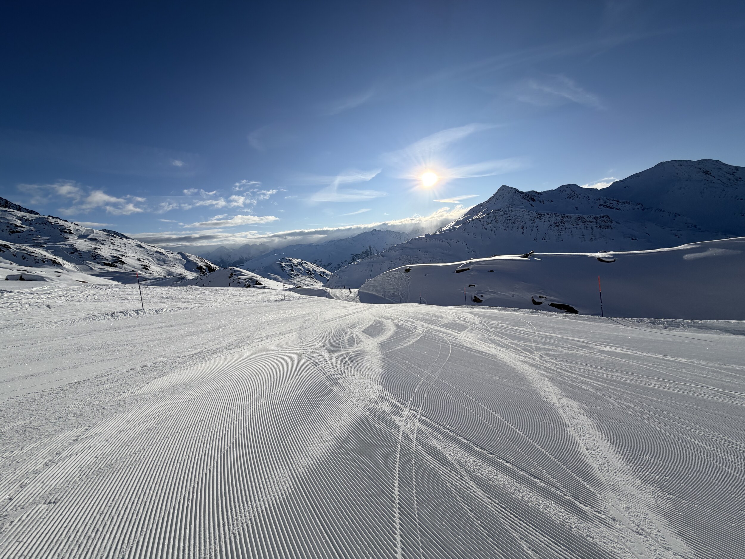 Die Bedingungen oben sind top, die Pisten ein Traum und voll griffig. Auf der Dieni Seite weniger Grip.