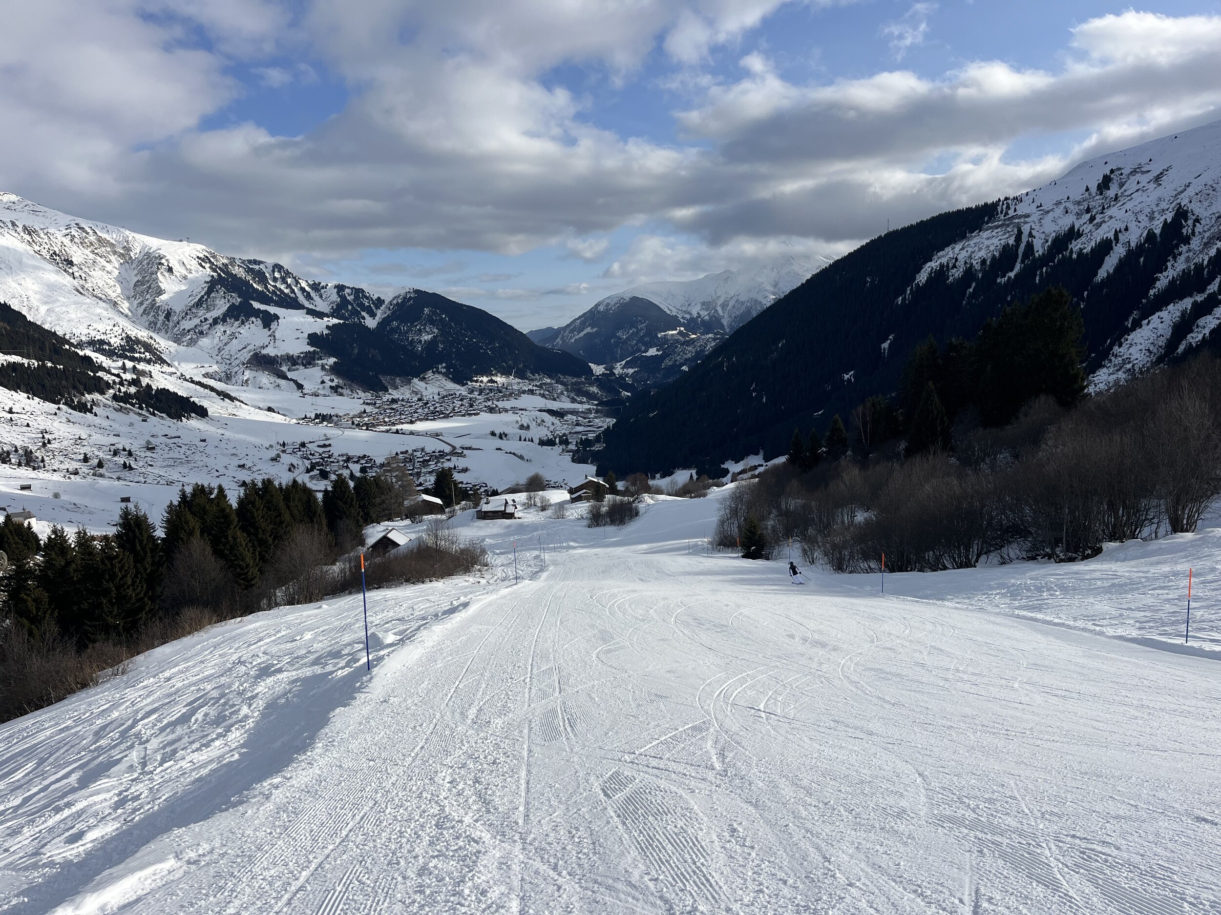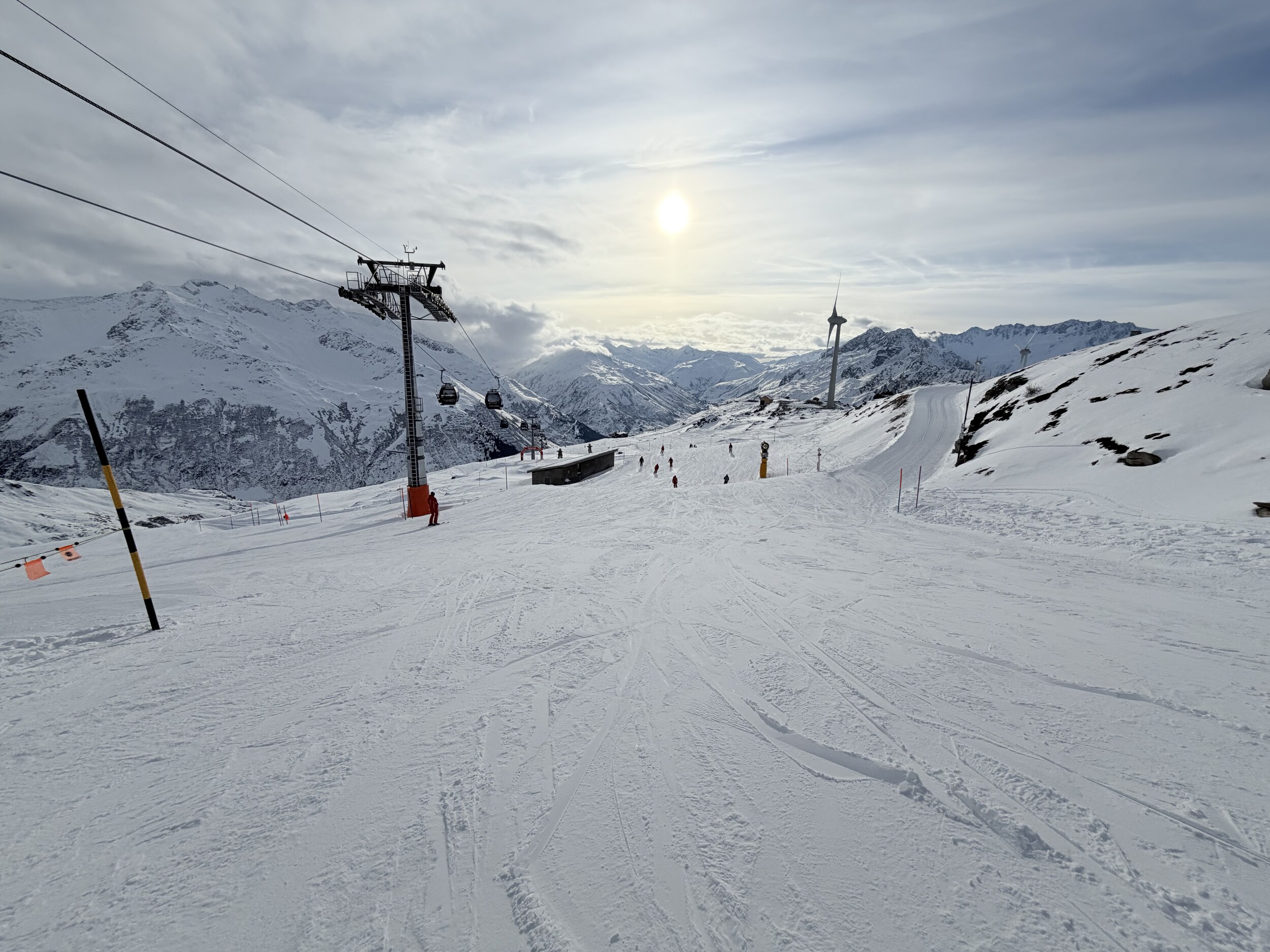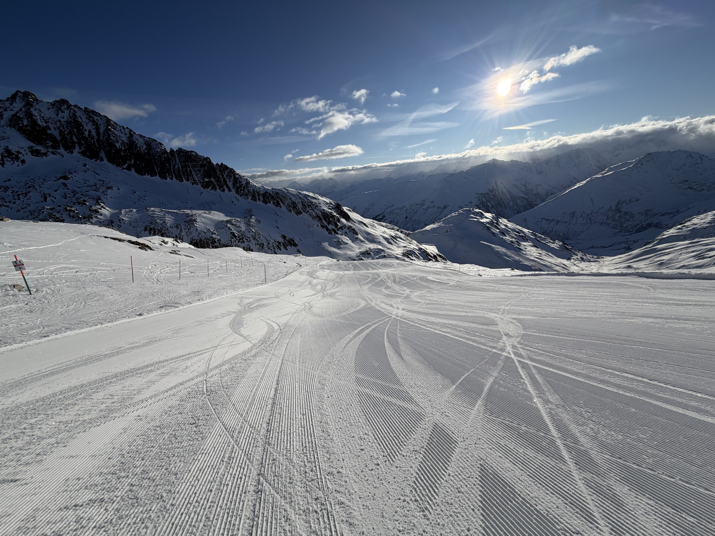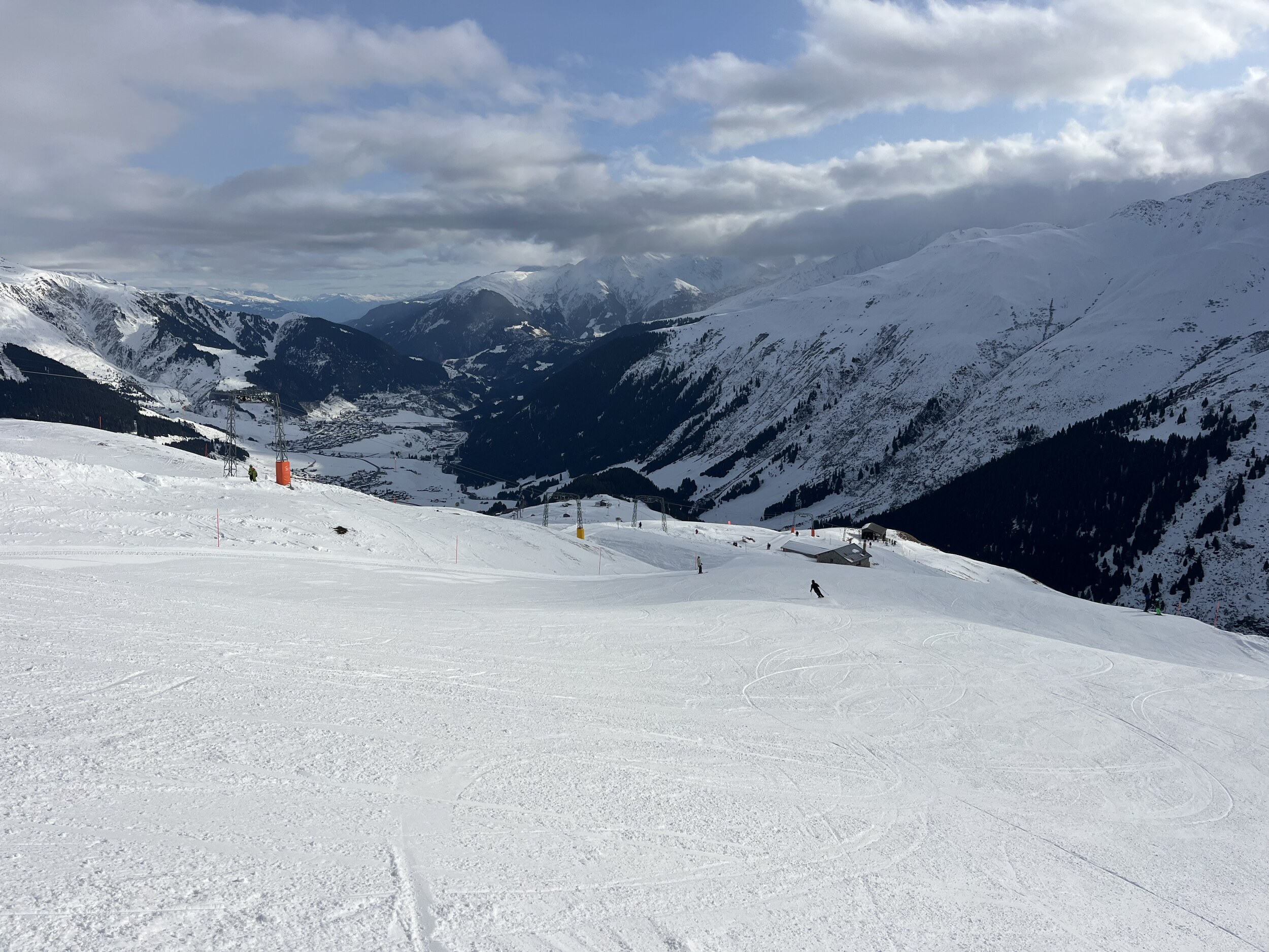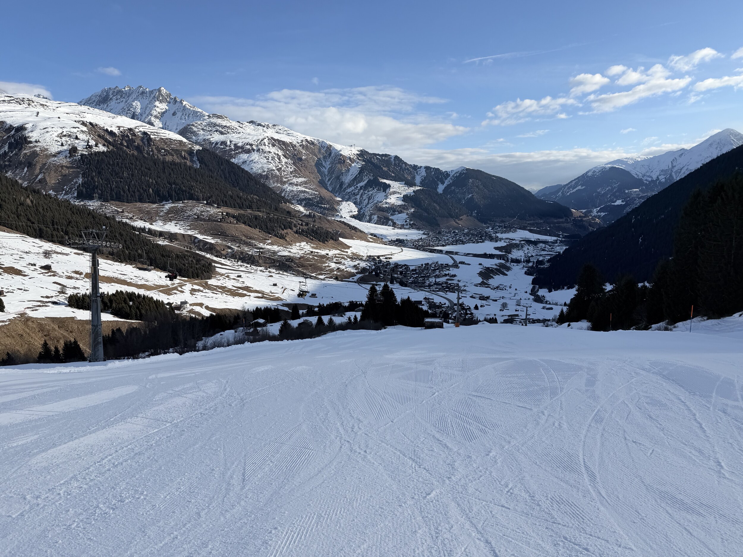 Die Bedingungen oben sind top, die Pisten ein Traum und voll griffig. Auf der Dieni Seite weniger Grip.