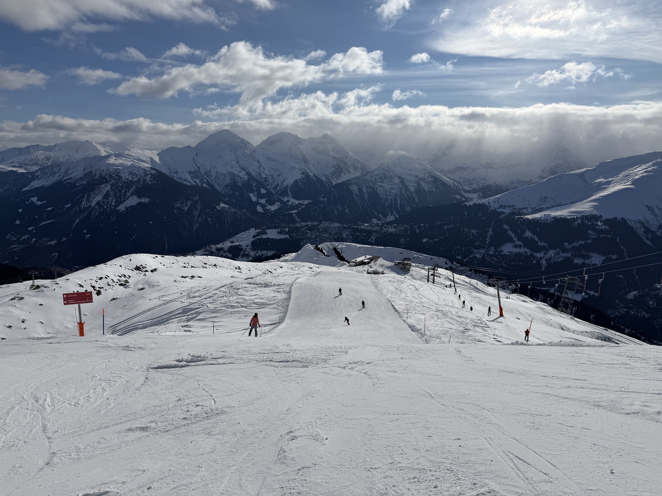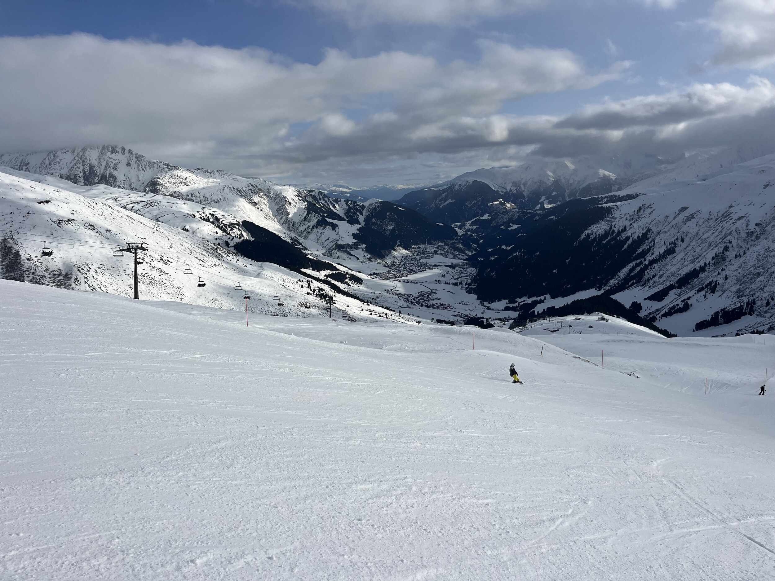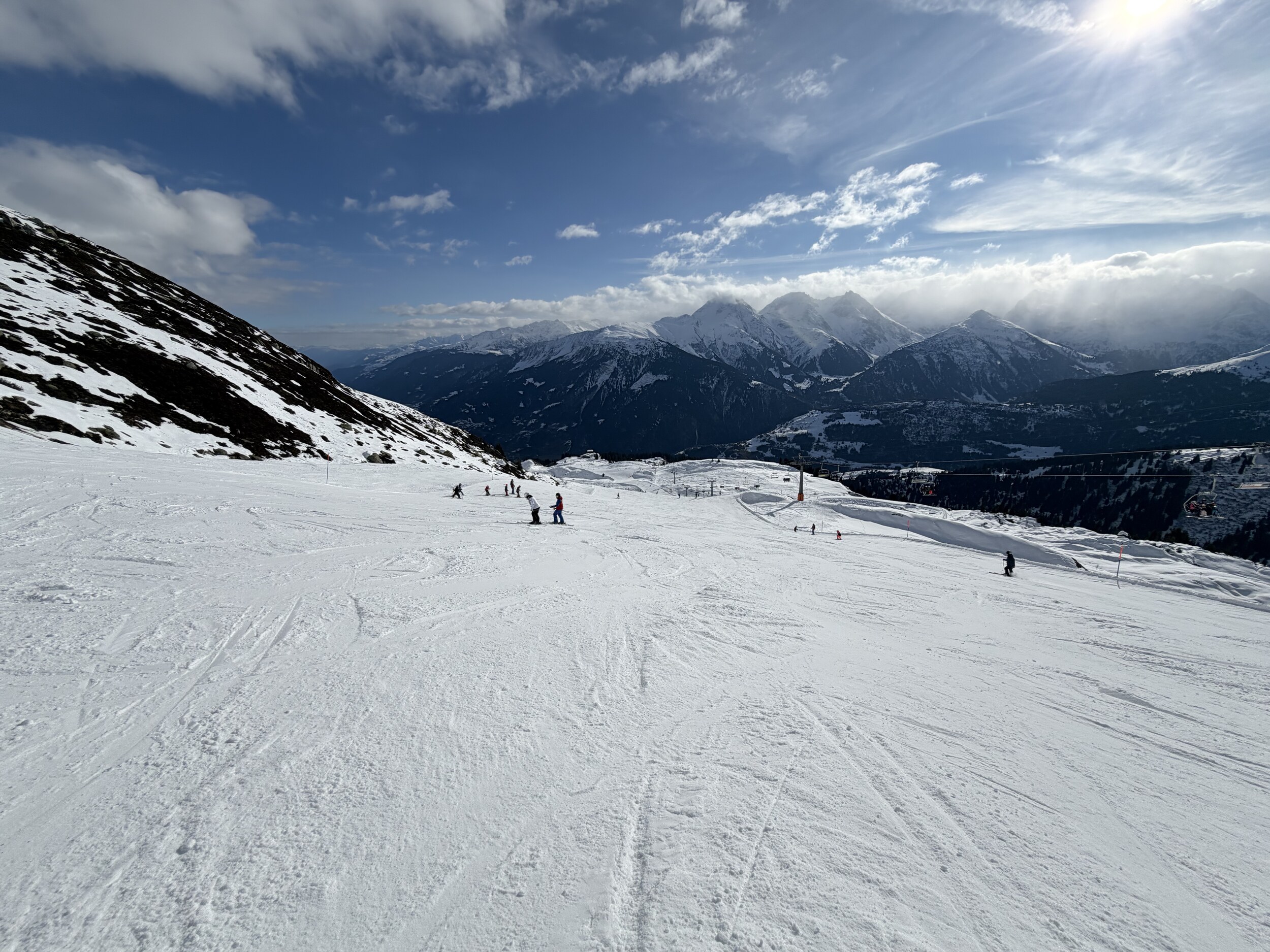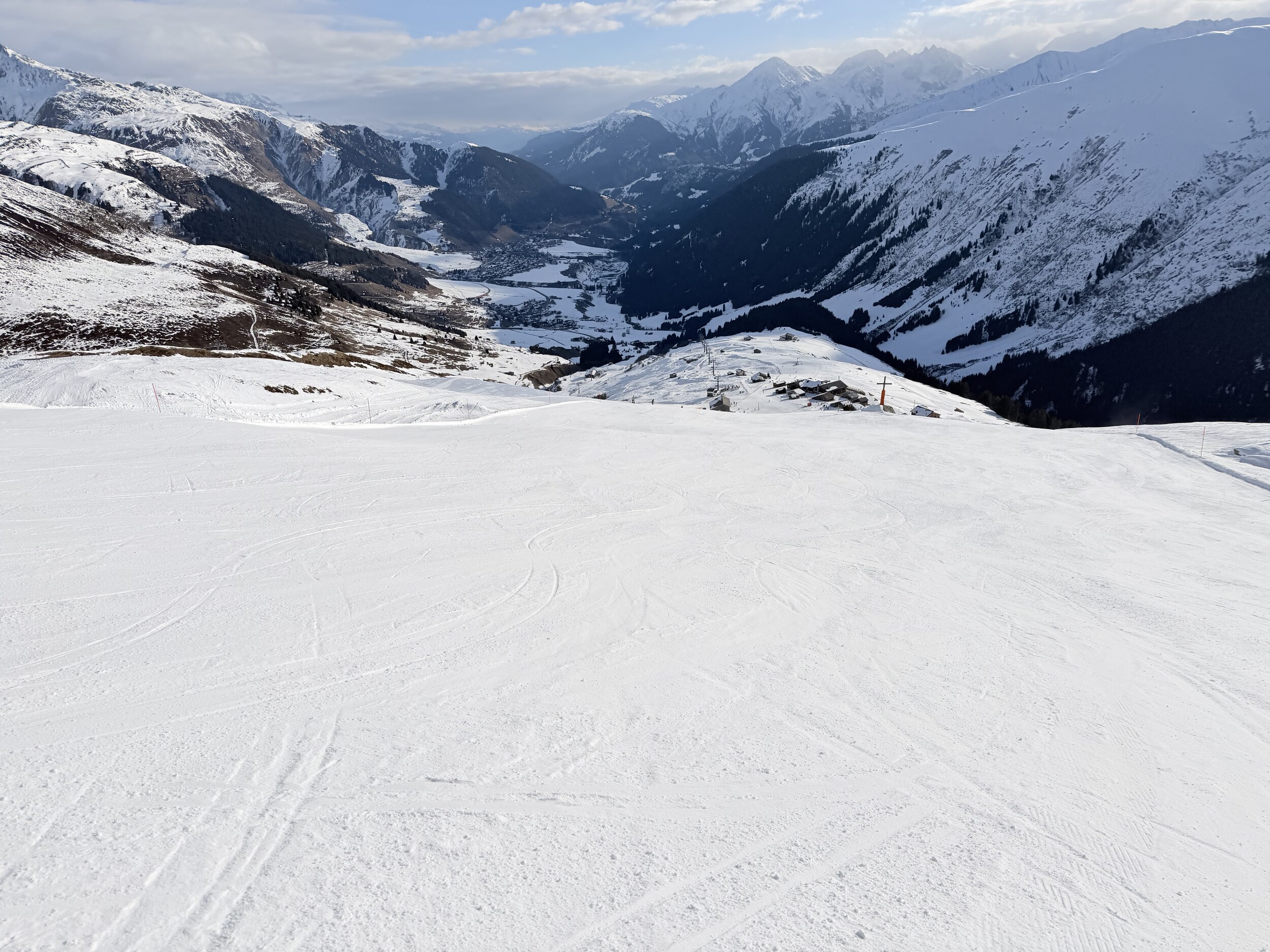 Die Bedingungen oben sind top, die Pisten ein Traum und voll griffig. Auf der Dieni Seite weniger Grip.