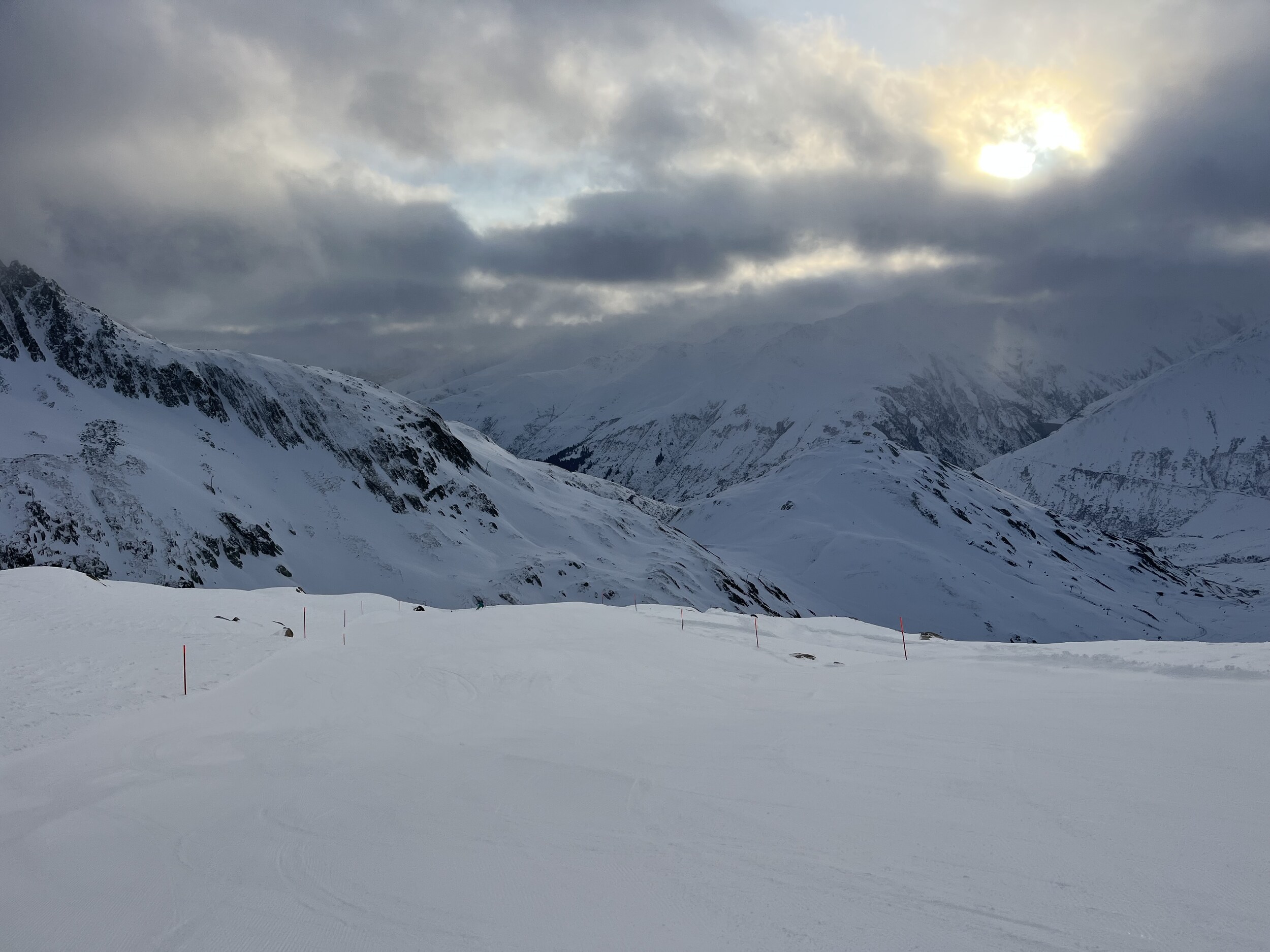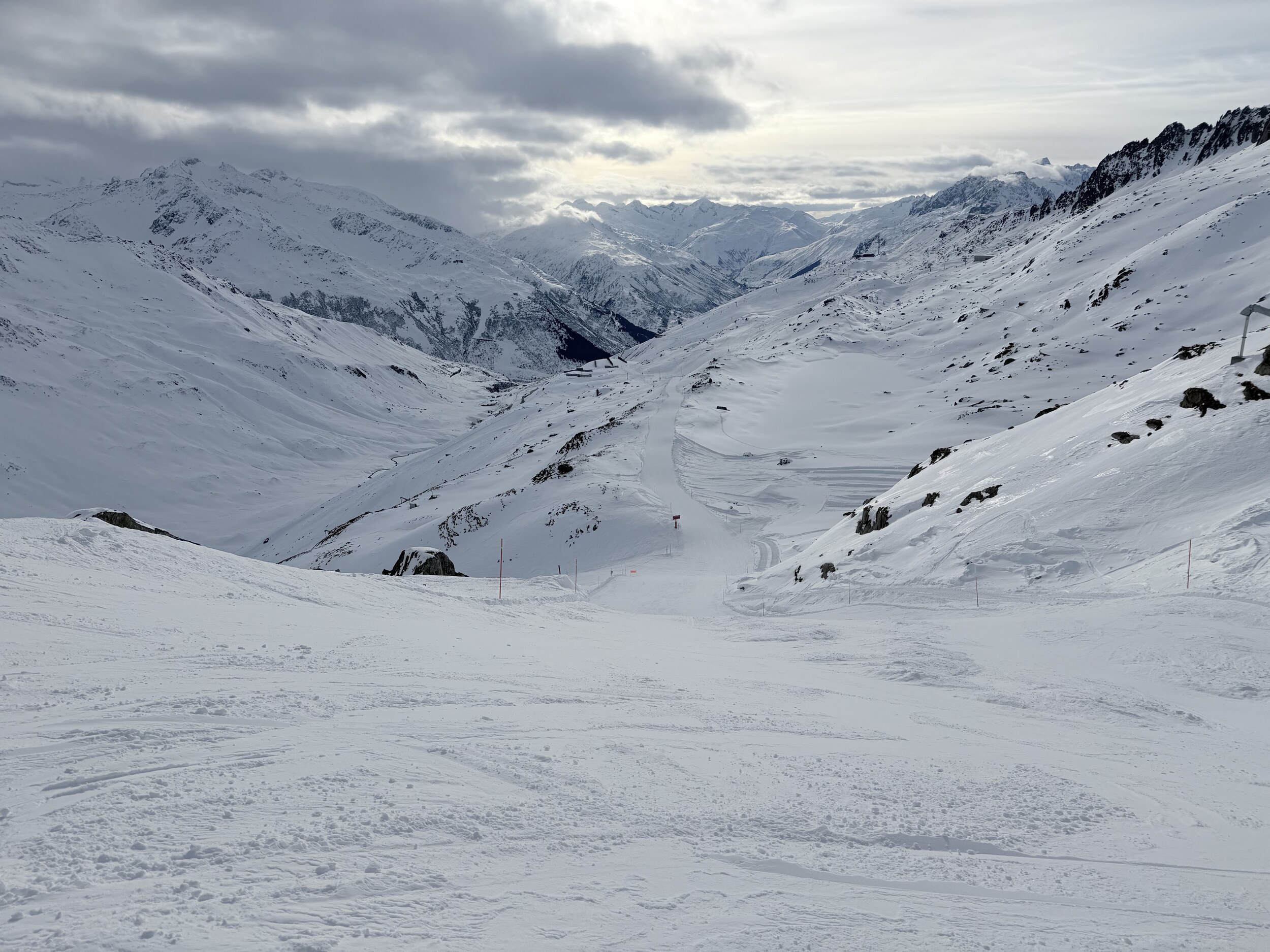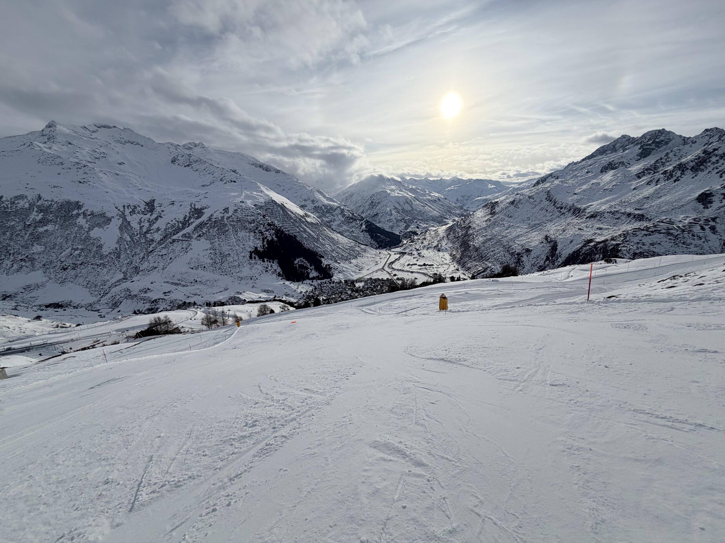 Die „Panoramapiste“ respektive Passstrasse finde ich eigentlich ziemlich schön, besonders am Abend gemütlich in den Sonnenuntergang hinabkurven. Ich nehme an aufgrund des Neuschnees war die Piste nicht so schnell, denn normalerweise ist das Gefälle überall ausreichend.
