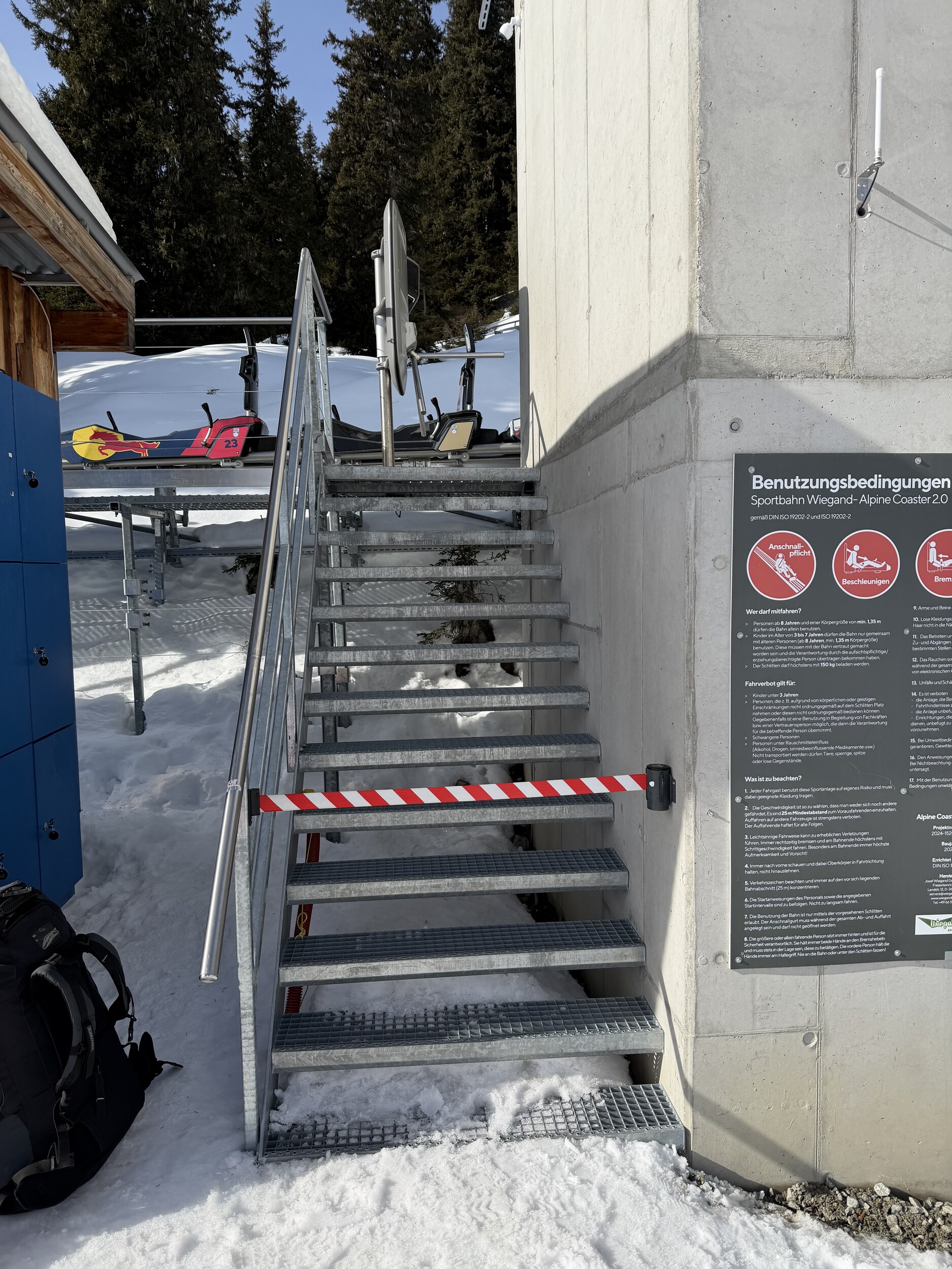 Als ich um 12:55 ankomme bei der Rodelbahn, sieht alles andere als Betrieb aus: Die Skilehrer, die dort sich versammeln, sagen mir, dass die Rodelbahn um 13 Uhr erst aufgehe. Also mache ich nochmals eine Fahrt auf Ski. Als ich zurück war, immer noch die gleiche Situation, noch andere Personen sind am warten. Ein Check auf der Website zeigt, dass die Rodelbahn bereits seit 12 Uhr offen sein soll. Um 13:11 rufe ich bei den Bergbahnen an. Die meinte auch, dass das eigentlich offen sein soll, sie schaue aber. Nach einer kurzen Fahrt mit dem Tellerlift ist dann auch offen: