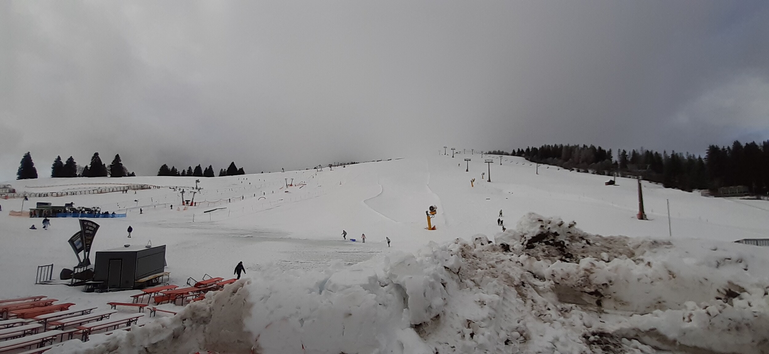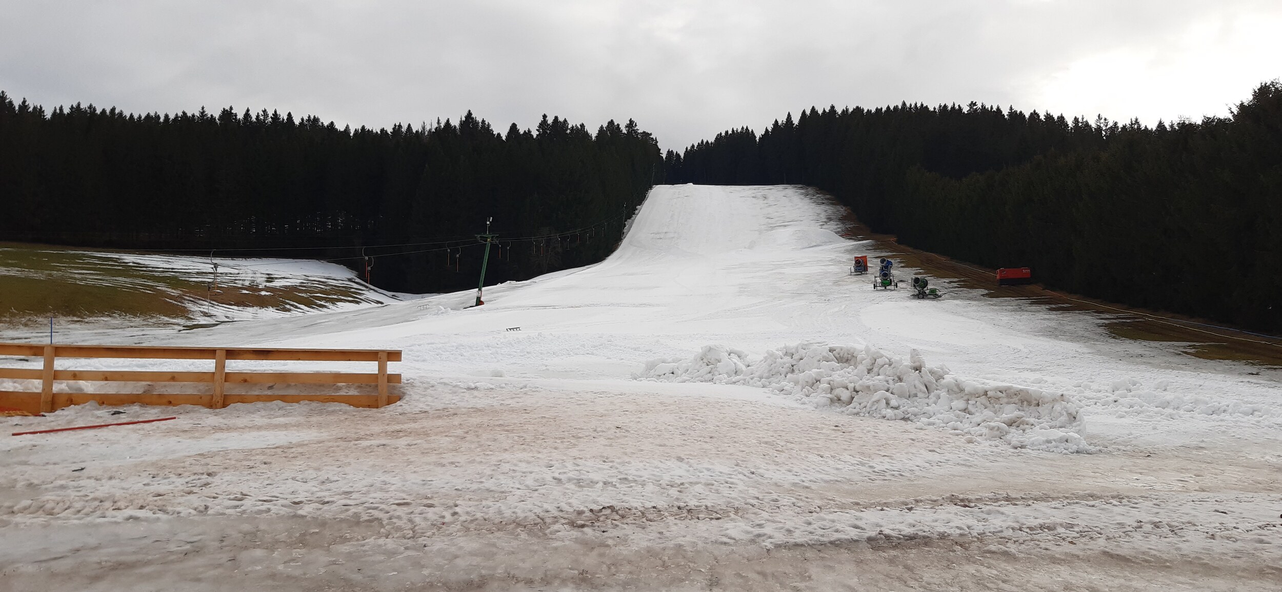 Am Rösslelift richtet man gerade die Kanonen zum beschneien, kann aber vermutlich erst Sonntag öffnen wegen Personalmangel. Die Schneedecke auf der Piste ist noch sehr dick dort, rher 50cm als 20cm.