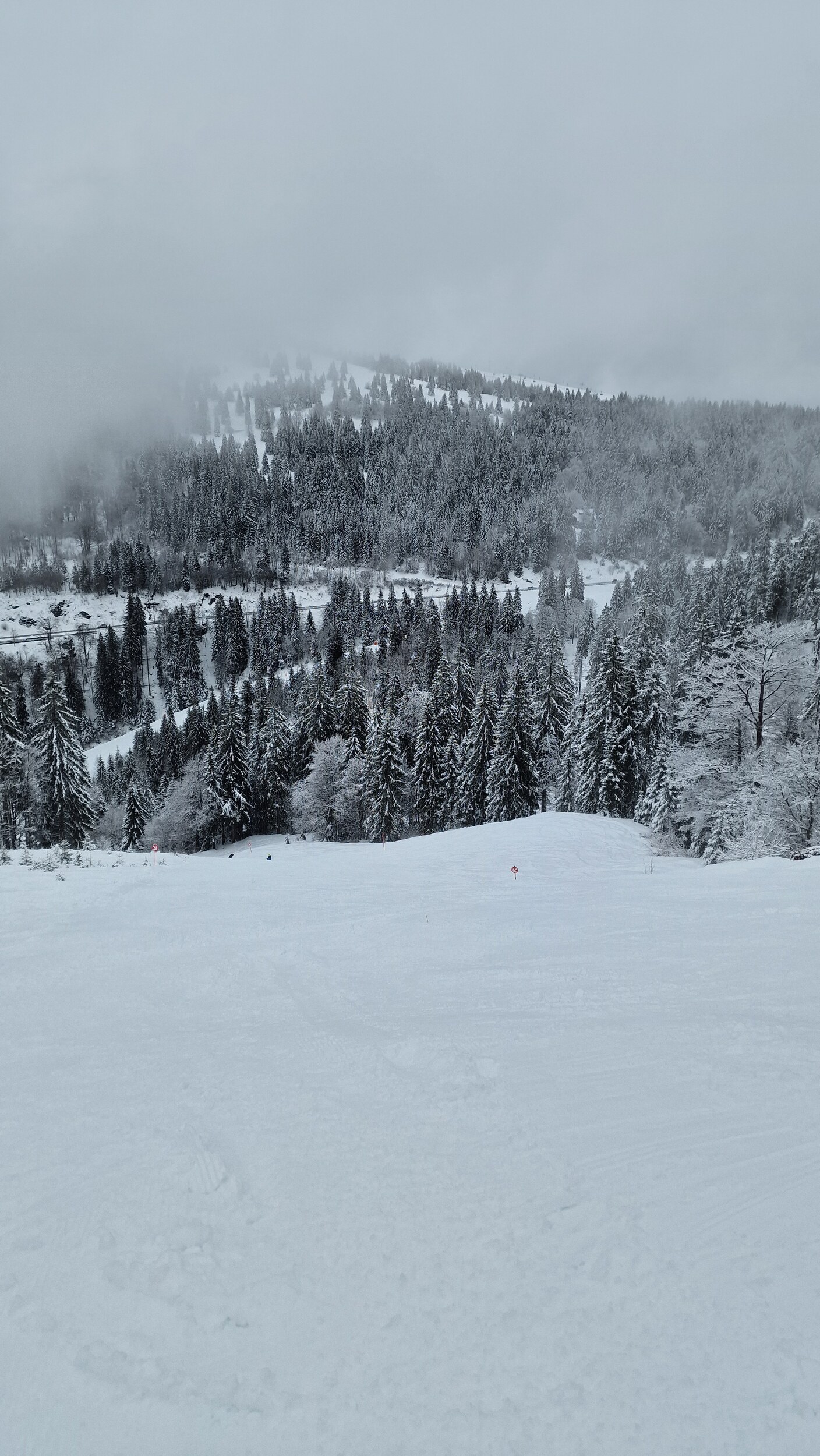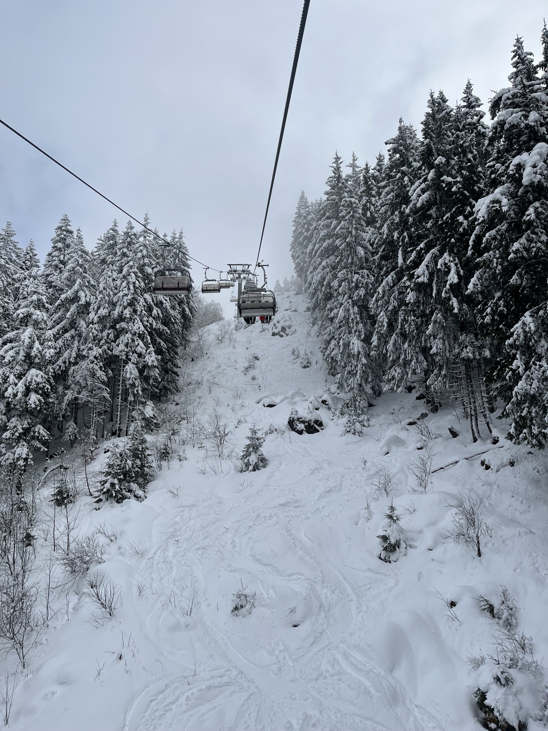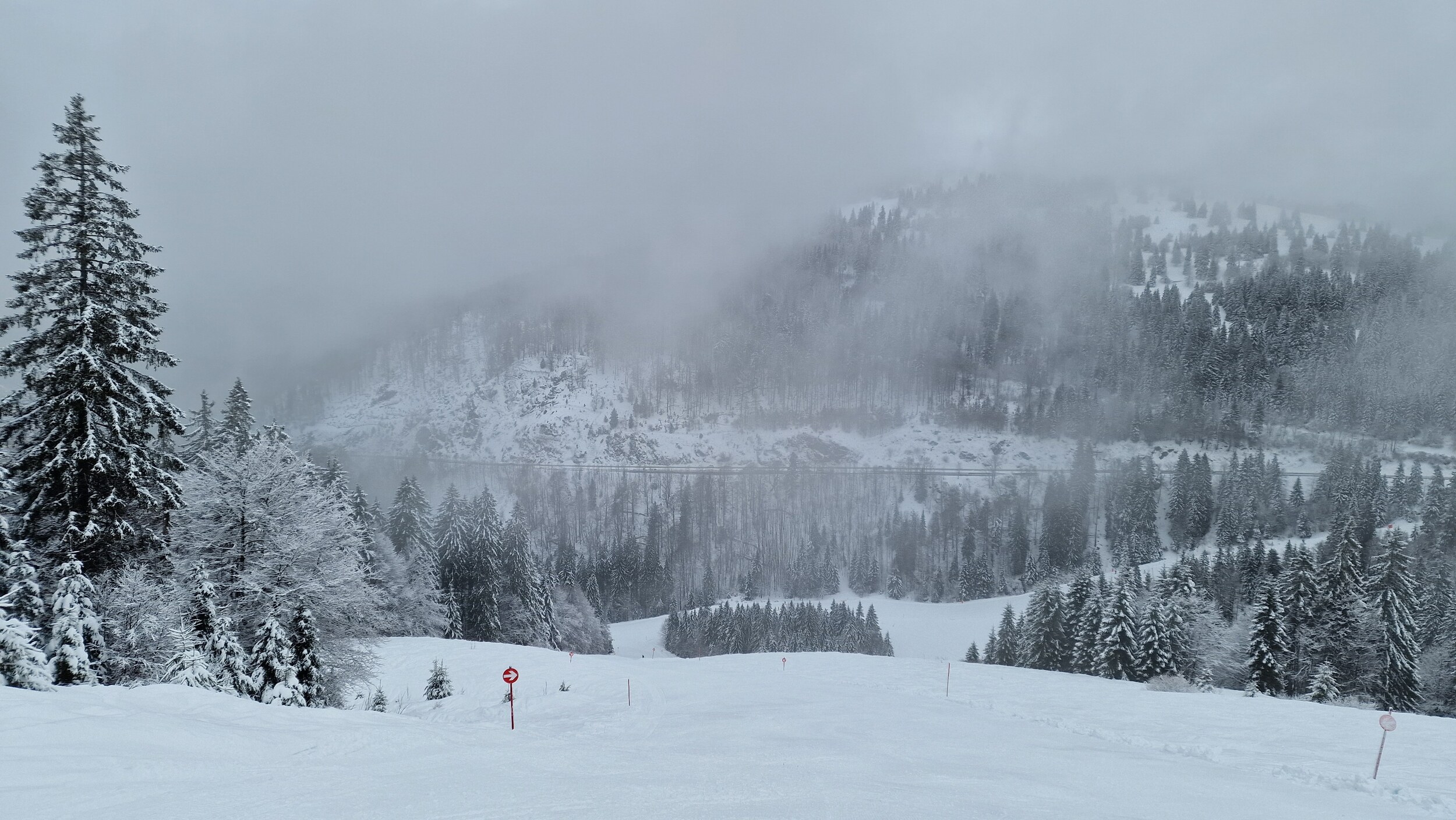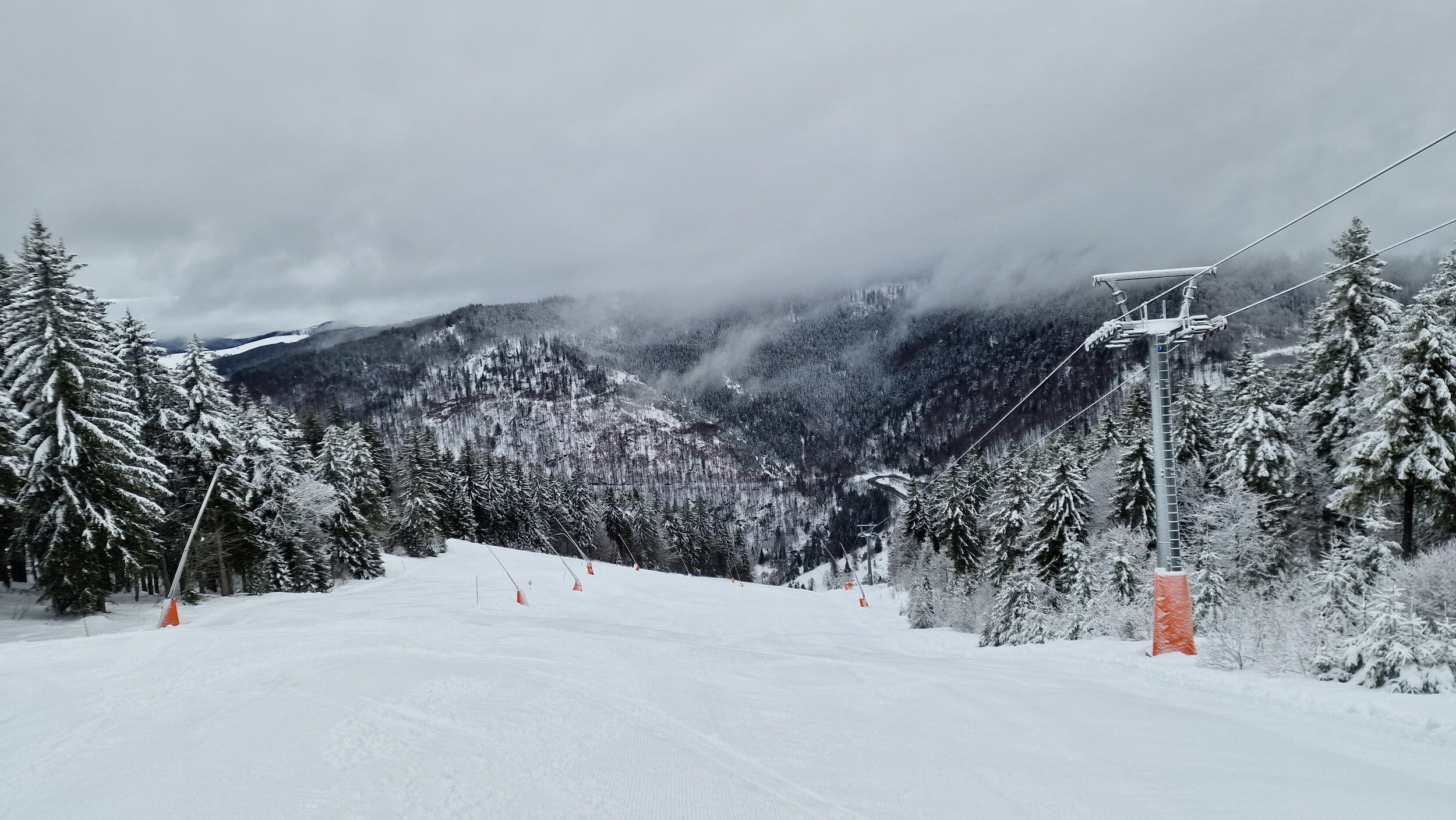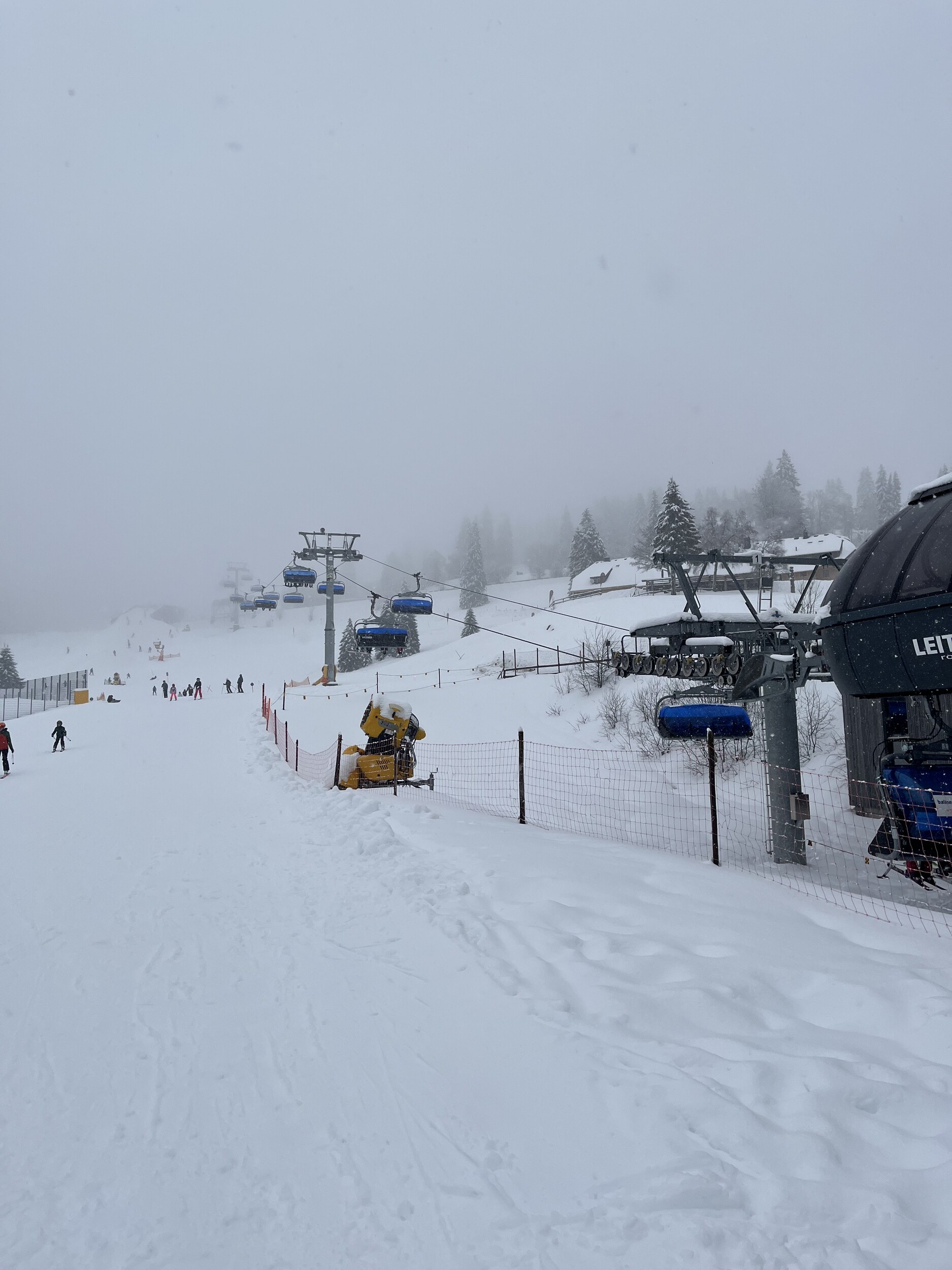 Allgemein waren extrem viele Anfänger unterwegs, vor allem am Seebugg und am Grafenmatt. Wir sind aber direkt nach Fahl rüber, weil endlich mal die FIS und für mich das allererste Mal die Fahler Loch Pisten offen waren. Hier war es angenehm leer, aber wenig des anhaltenden Schneefalls früh recht buckelig. Wiesenquell war erwartungsgemäss sehr voll und im unteren Teil echt eine Zumutung. Die FIS war im oberen Teil auch auf ganzer Breite hergerichtet, anstatt nur den beschneiten Teil.
