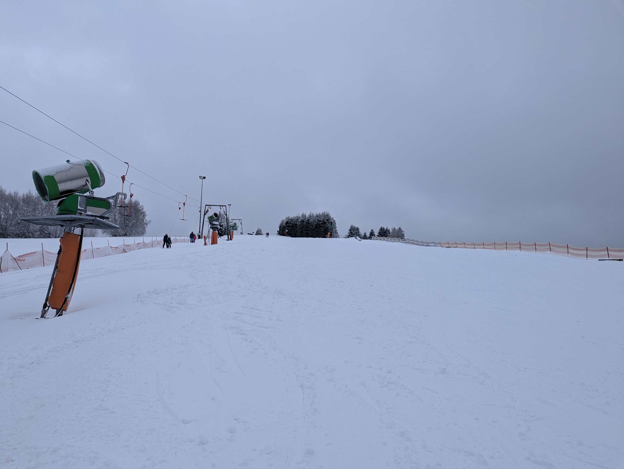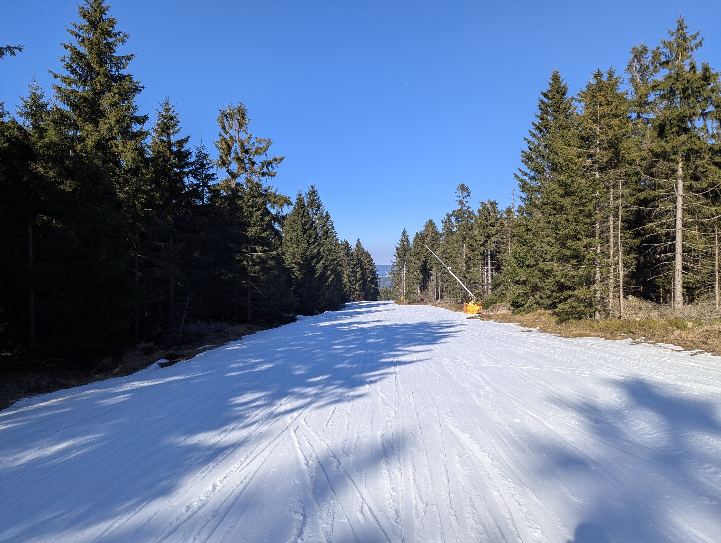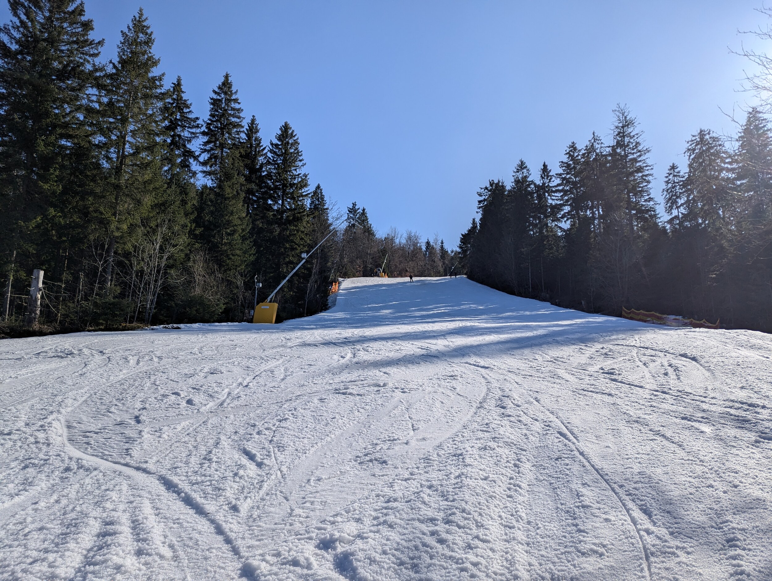 Während der Kornberg schon wieder schließen musste nach zwei Betriebstagen geht es am den beschneiten Hängen noch ziemlich gut.