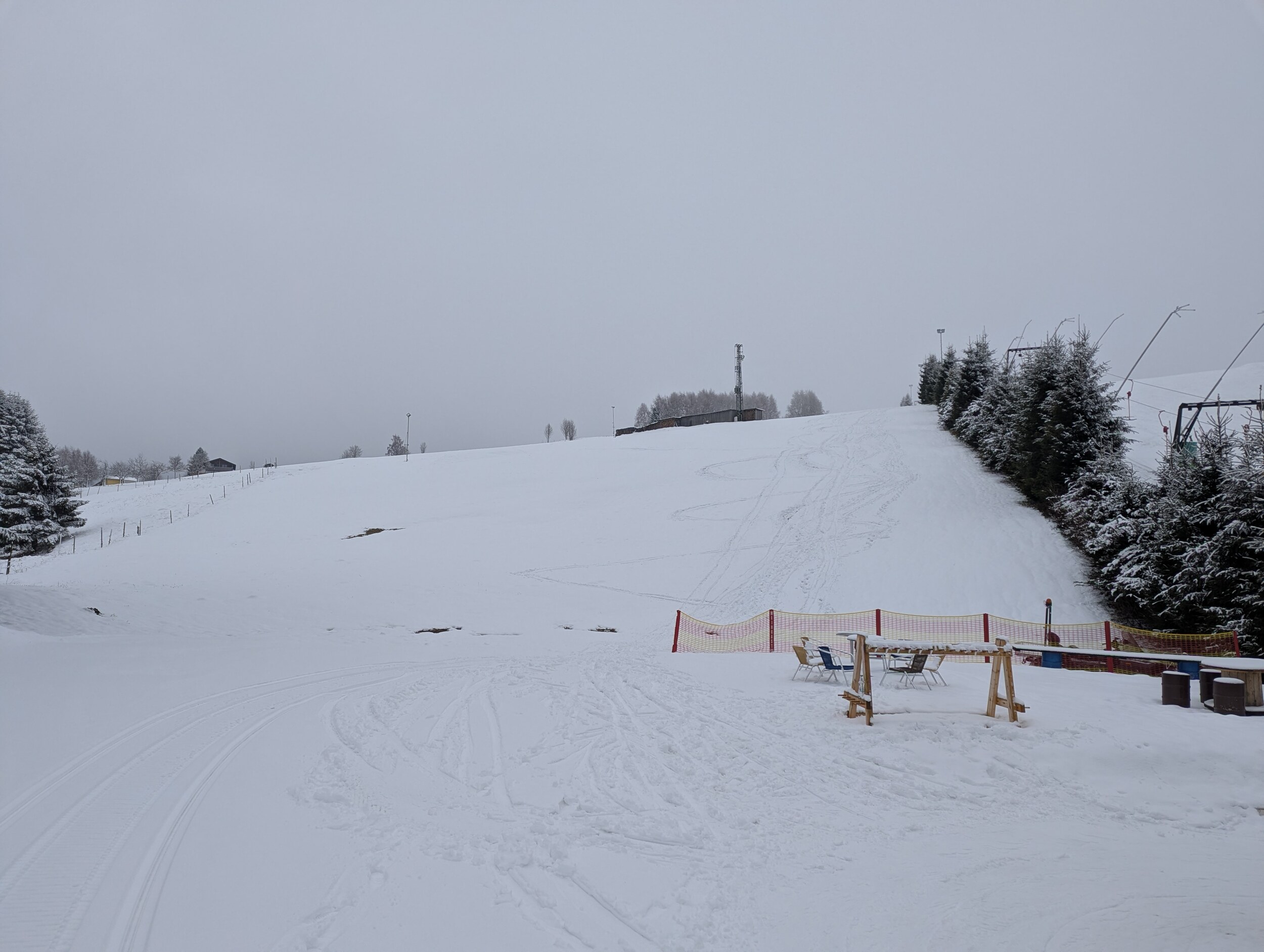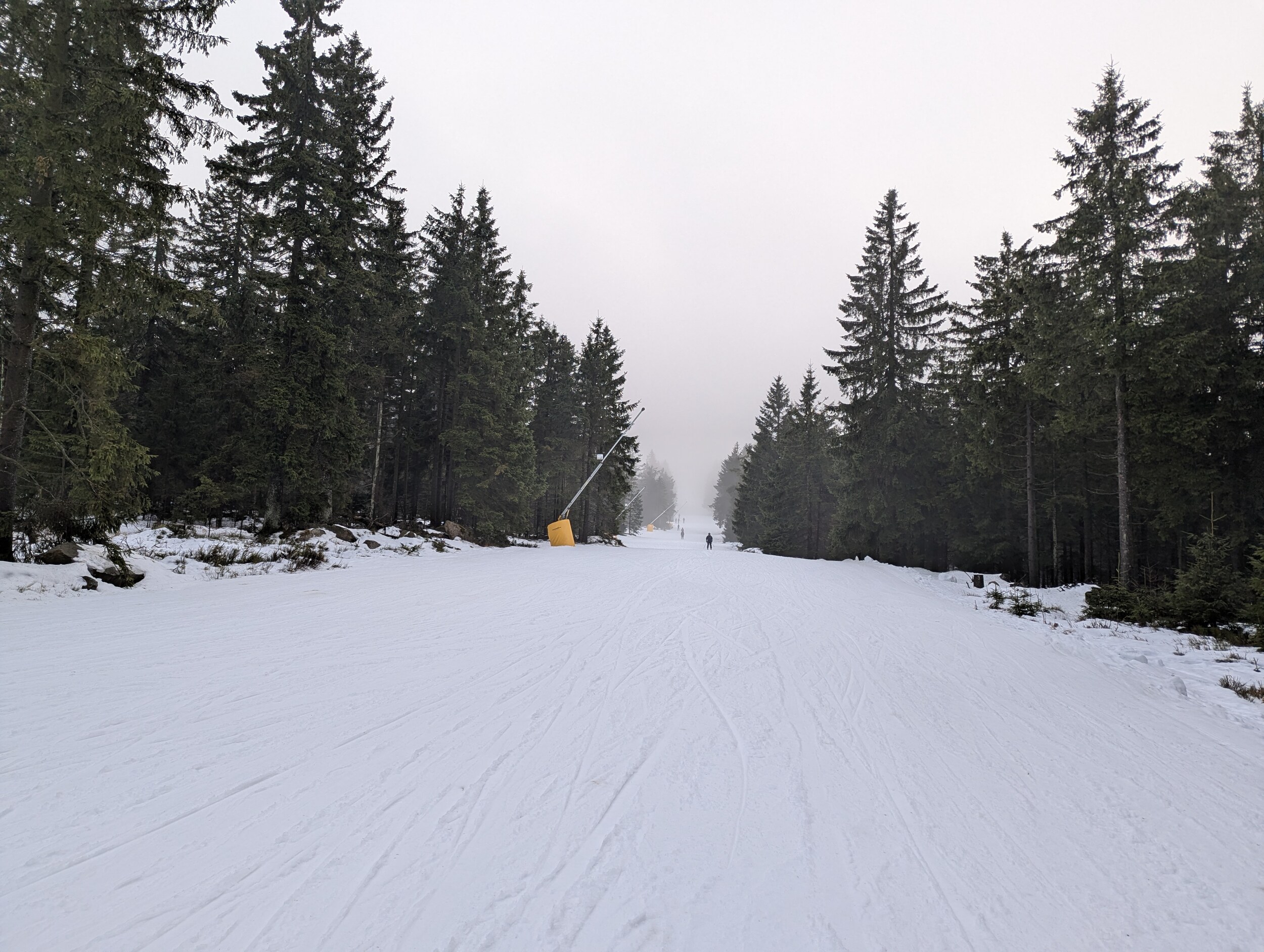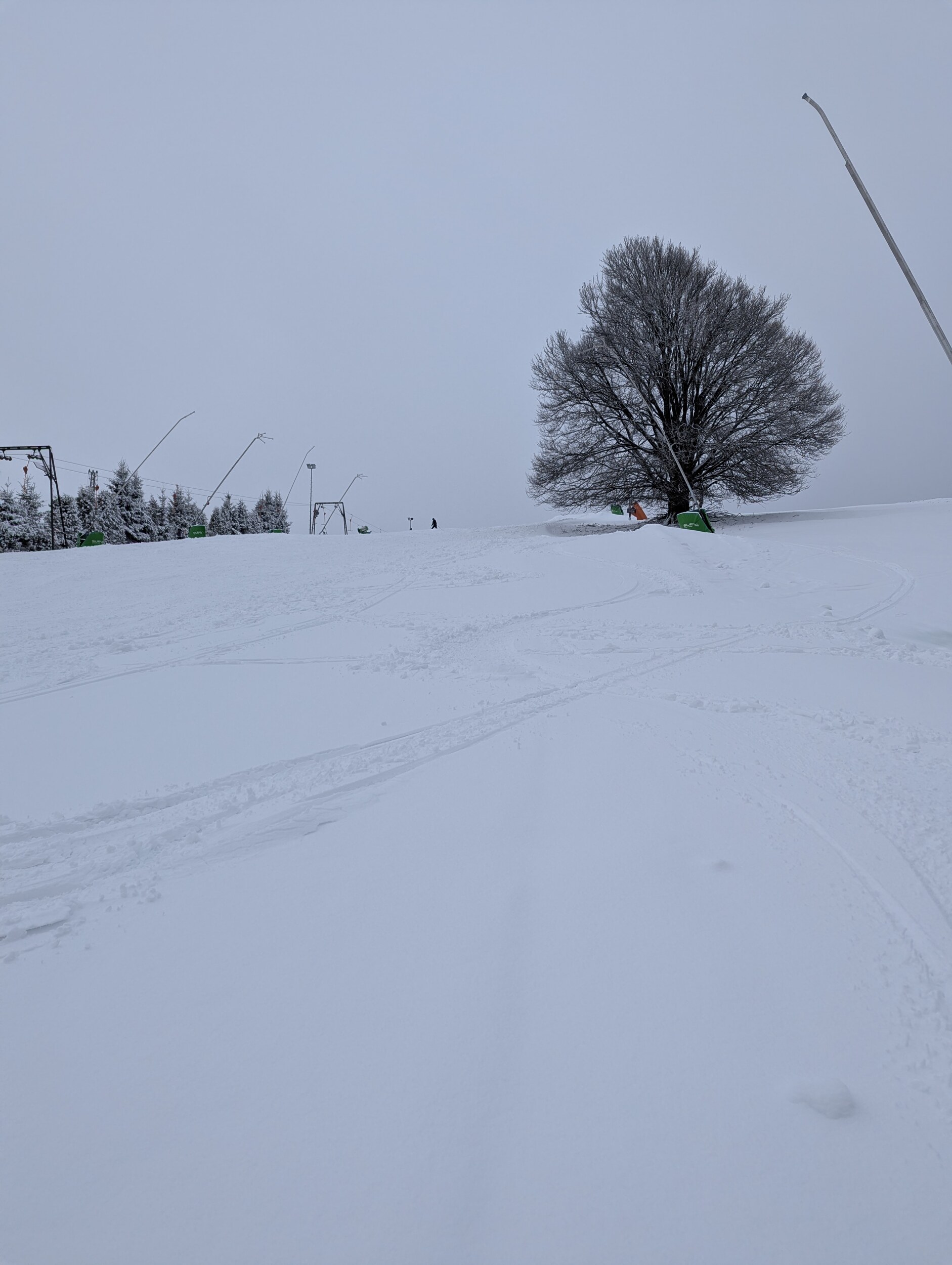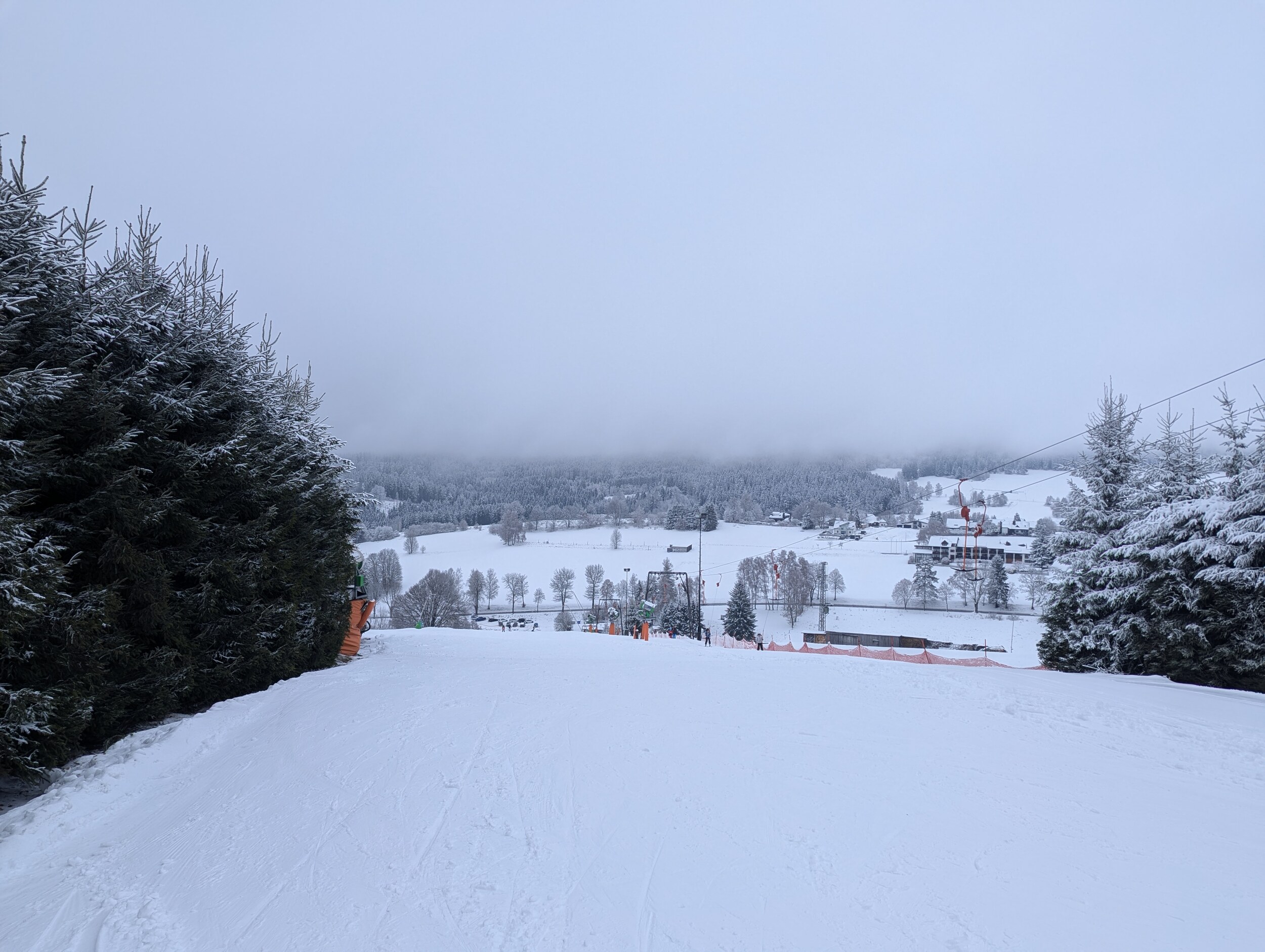 Während der Kornberg schon wieder schließen musste nach zwei Betriebstagen geht es am den beschneiten Hängen noch ziemlich gut.