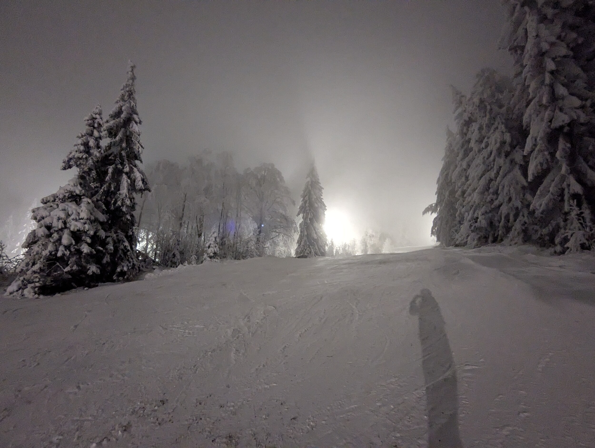 Bis 19:15 Uhr war schon etwas los, danach wurde es schlagartig leer. Es fing dann aber auch an zu regnen. Irgendwann waren nur noch 2 Leute neben mir unterwegs, am Schluss hatte ich dann noch gute 20 Minuten eine Privatpiste, bis ich es um kurz vor halb 9 nach 33 Abfahrten sein ließ. Fazit: Ganz nett mal wieder in der Nähe zu fahren. Wäre der Hang noch etwas länger wäre der super, so mal für 2 h in Ordnung.