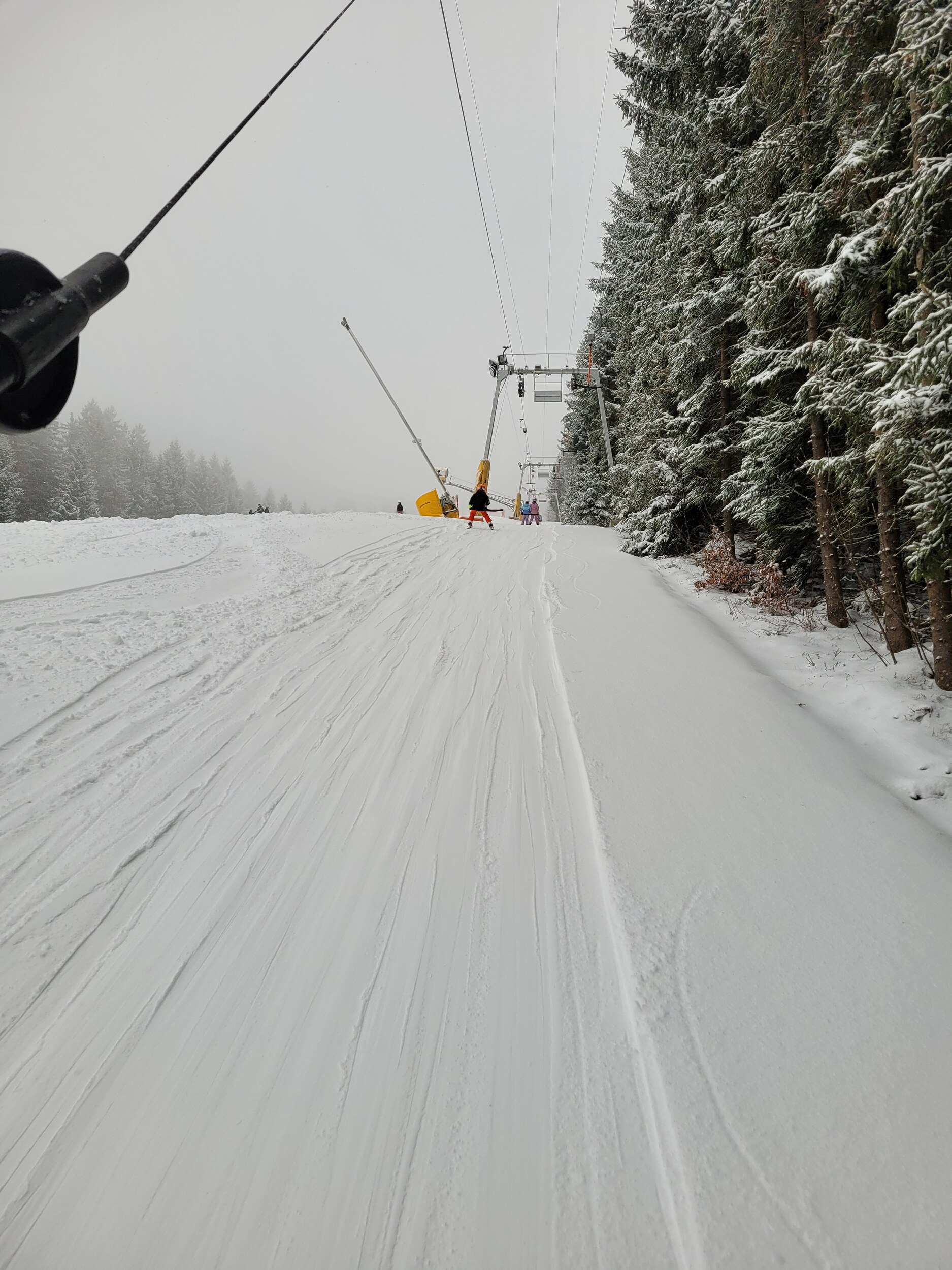 Heute Früh hat es dann nochmal ordentlich reingeregnet. Wir waren am Riedlberg. Ab ca. 11.30Uhr kein Regen, kein Schnee. Bis dahin hat es aber nahezu durchgehend „geschüttet“. Es ging den Umständen entsprechend gut. Aber viele dieser Tage sollten auch dort nicht mehr kommen. Es gab dann doch einige Stellen, wo entweder Eis oder Wasserski angesagt war.