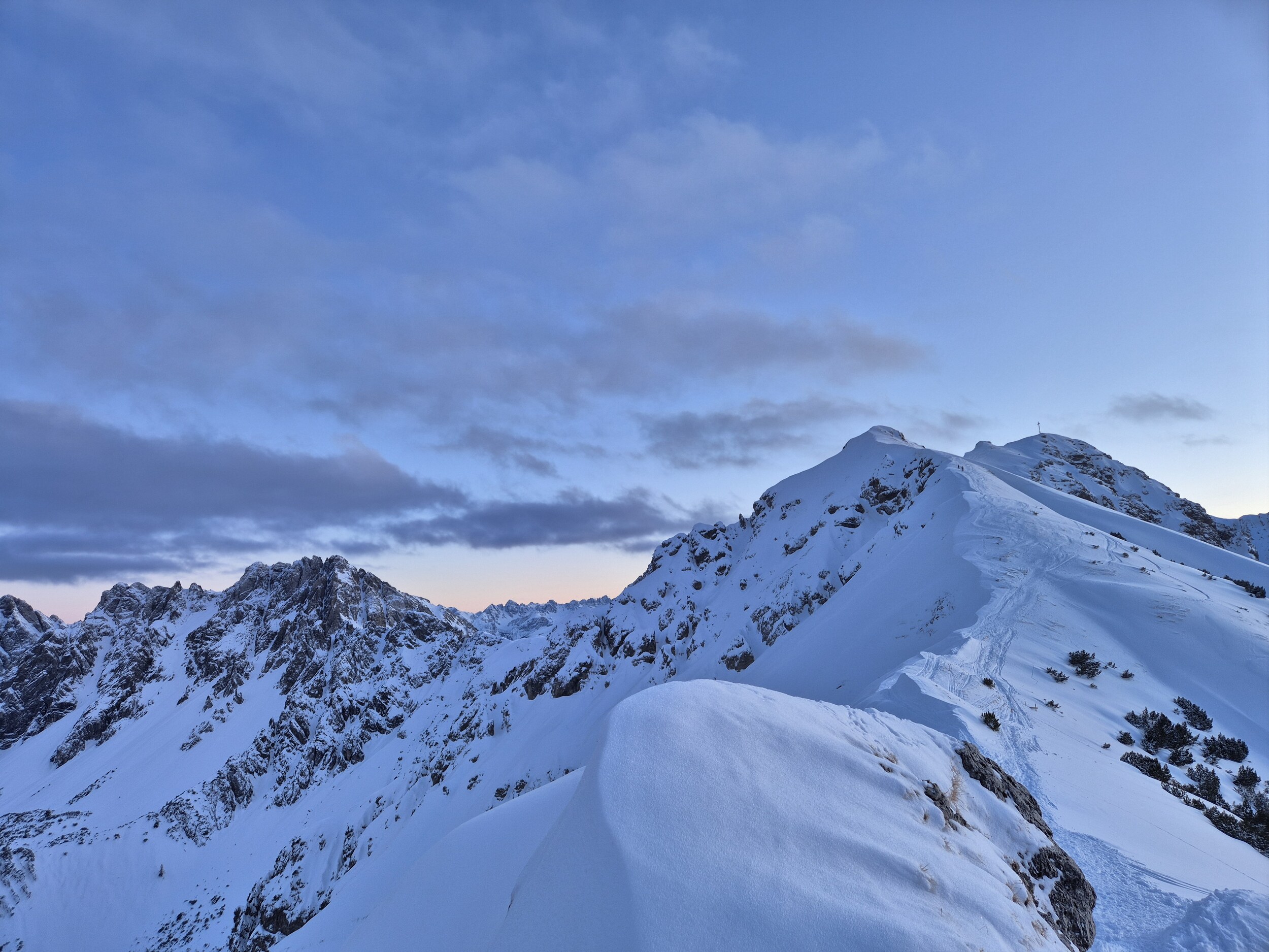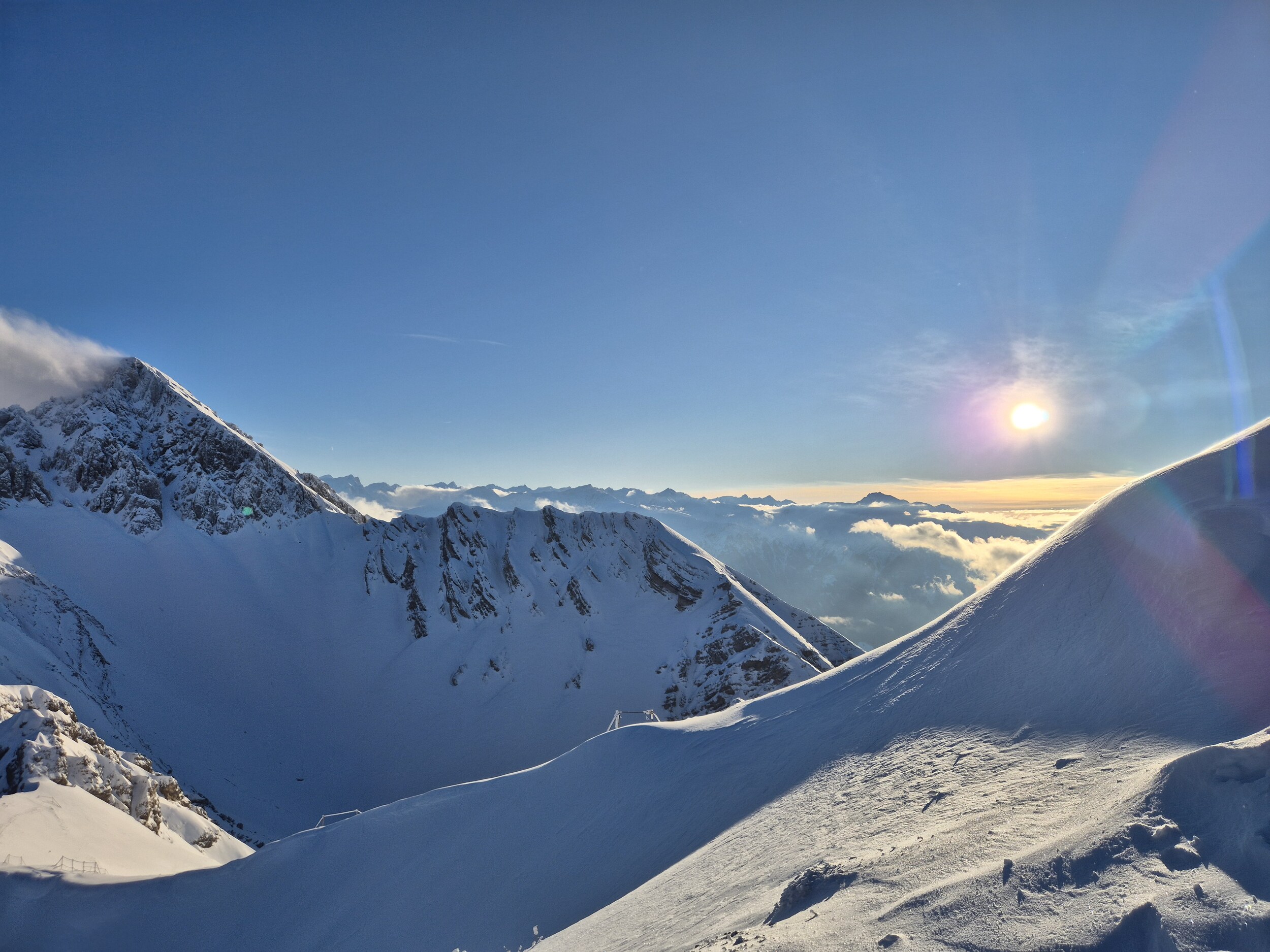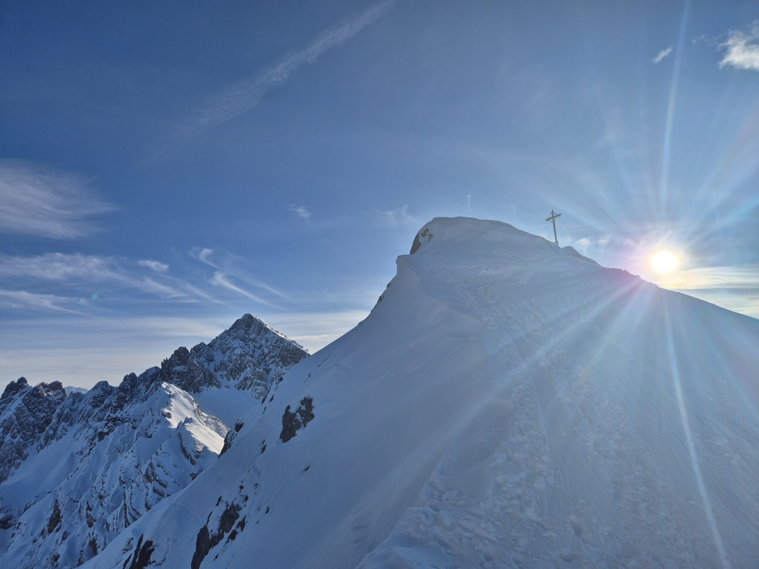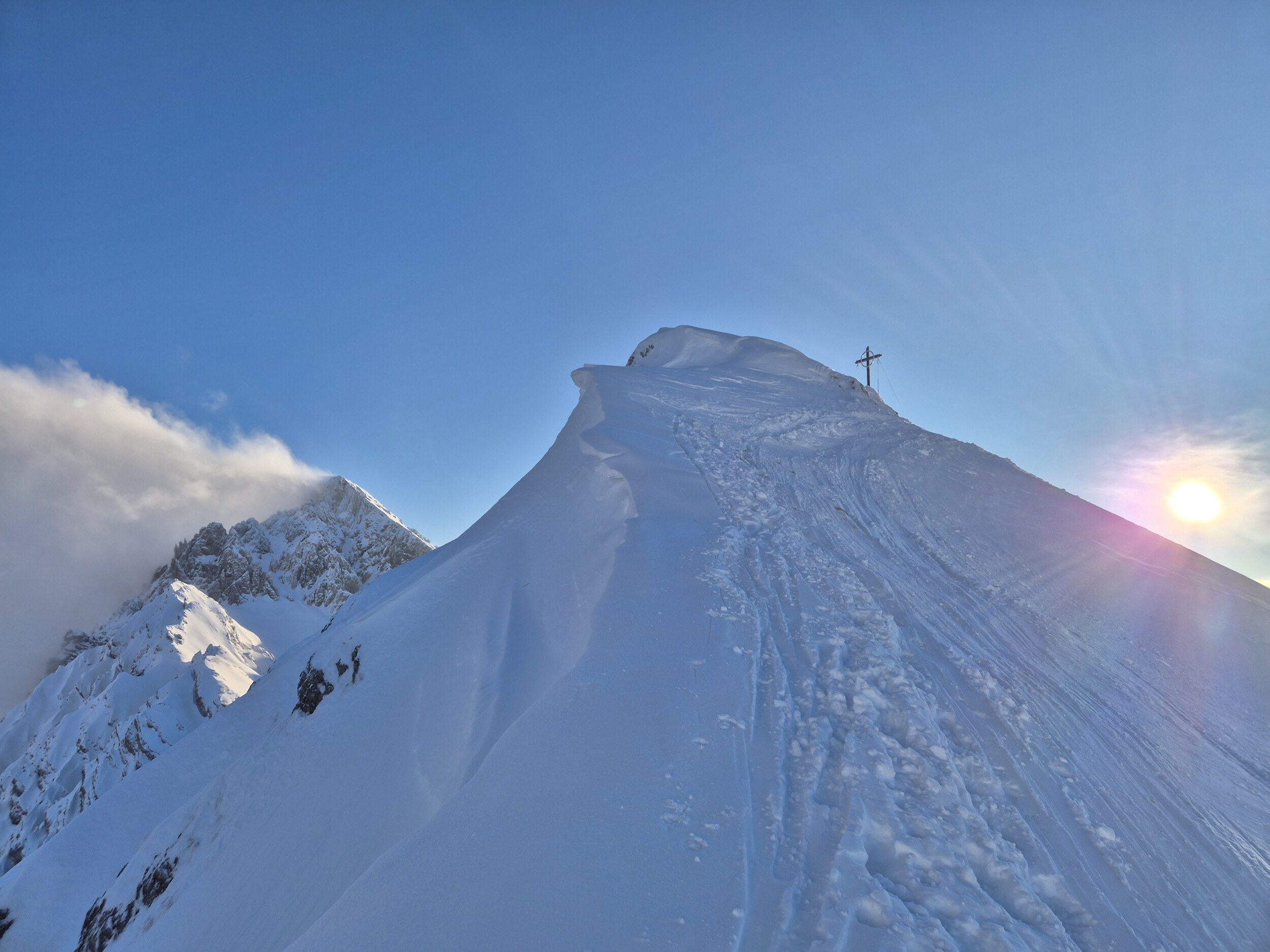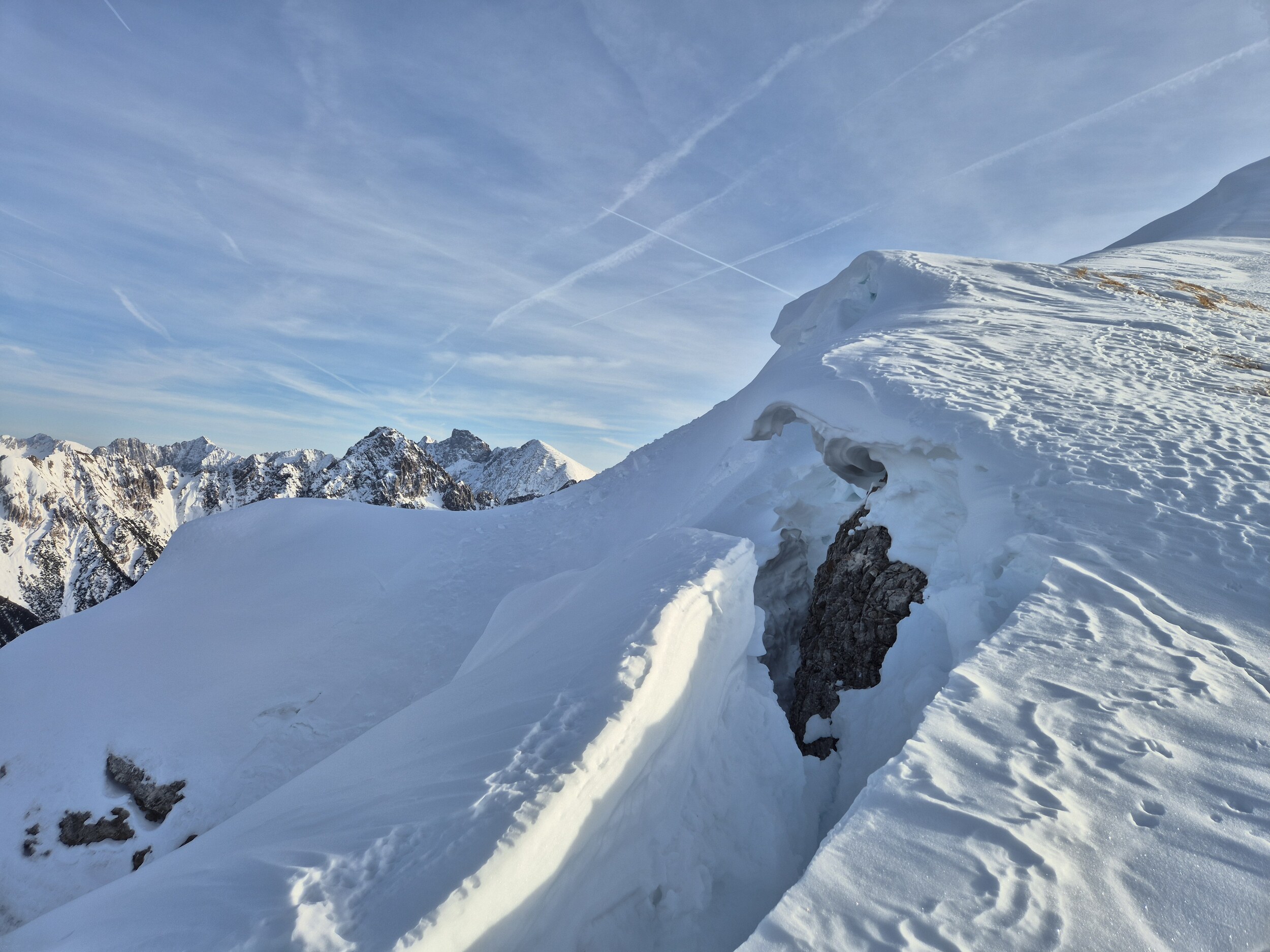 Beste Verhältnisse. Kaltwasserpiste wieder ein Traum. Aber Obacht auf die Wechten!