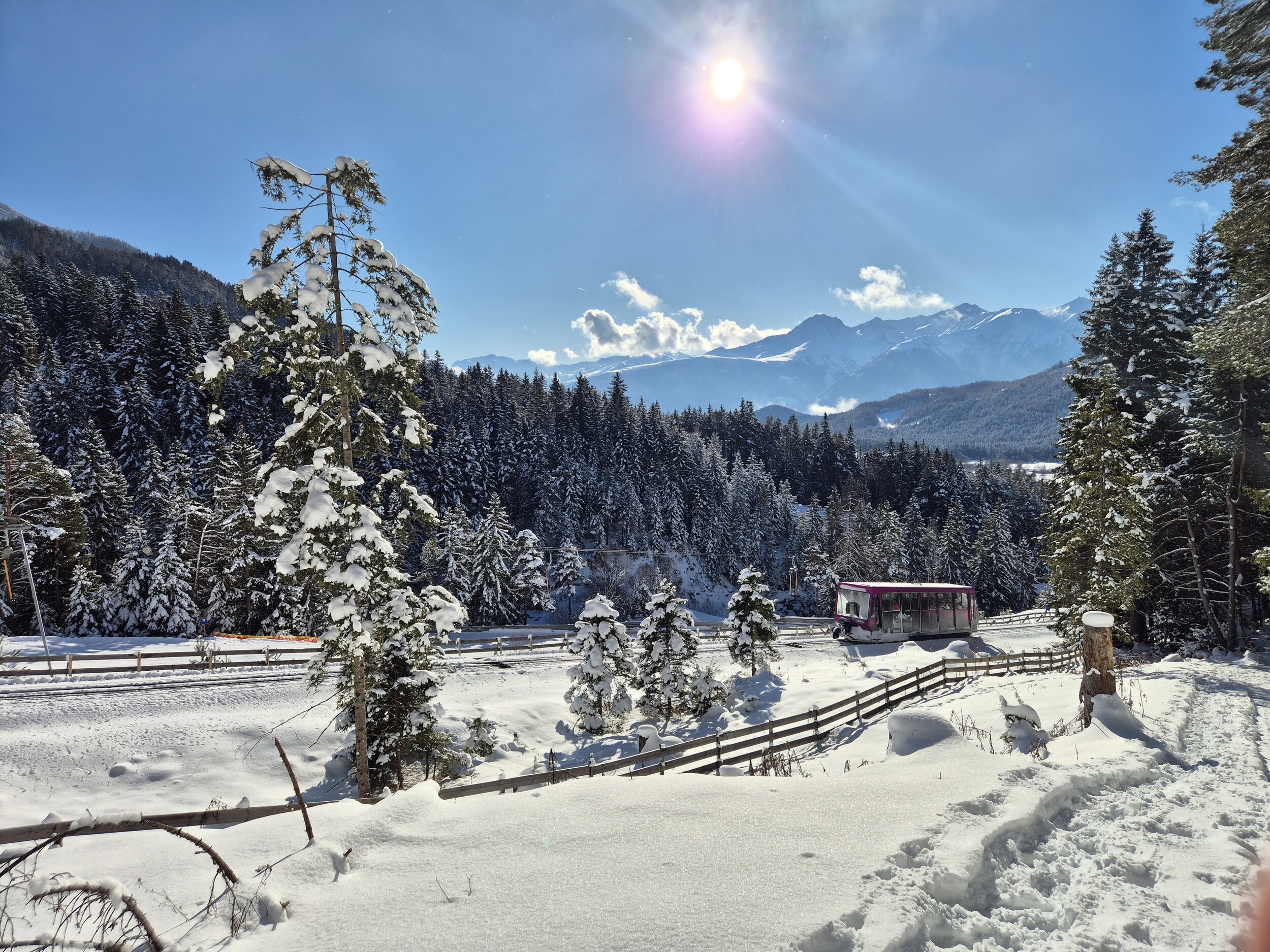Wegen der Krokusferien ist die Piste kaum lohnenswert. So gehts heute mit der Bahn hinunter und das Jahresabonnement ist damit auch eingeweiht...
