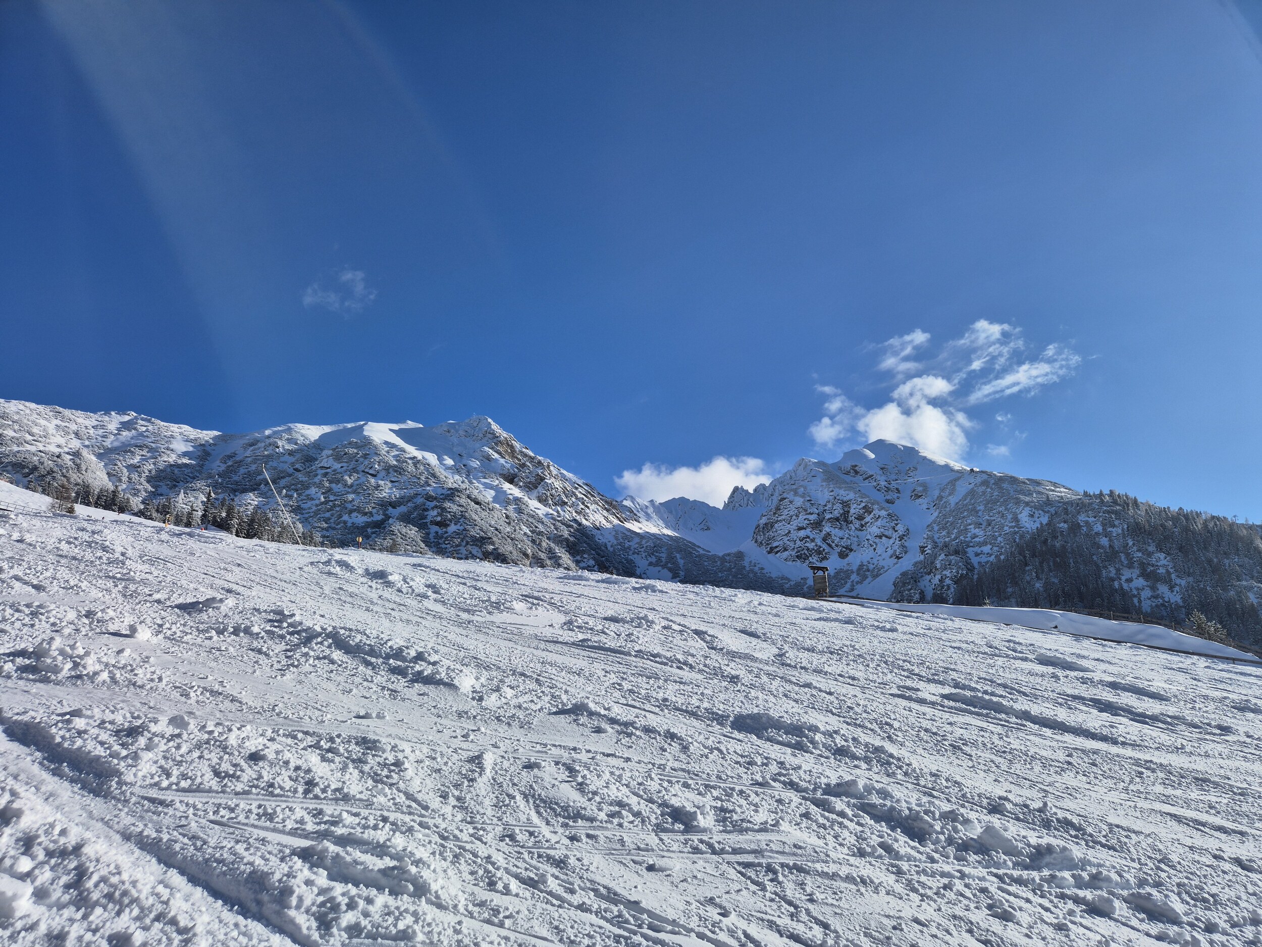 Dank Januarloch bis zum Abend schöne Pisten (bis auf die ortsüblichen Steine oben am Joch)!