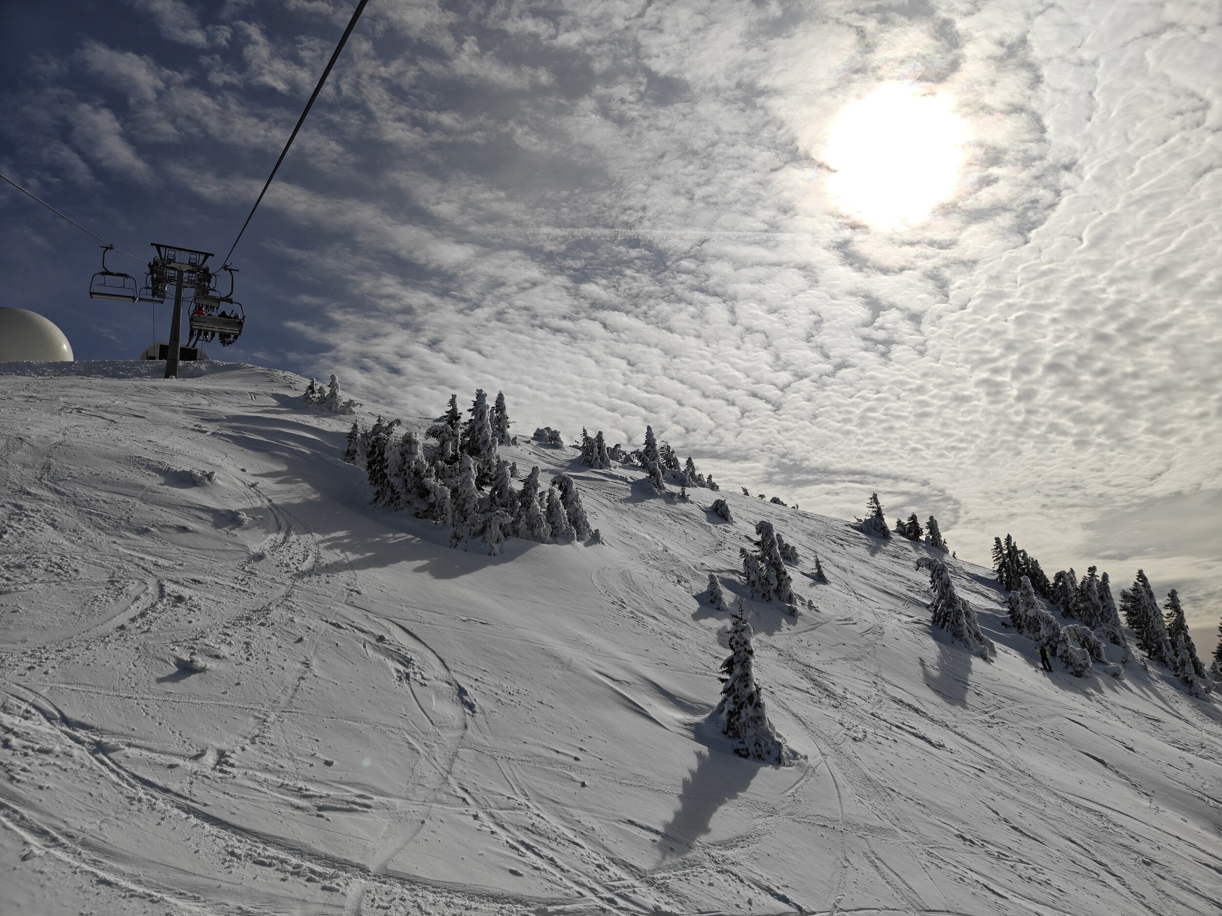 Zum zweiten Mal war ich im Gebiet Jurasurleman oberhalb des Lac Léman. Ich war letztes Jahr bereits einmal dort, damals war das Wetter allerdings nicht gut und es hatte deutlich weniger Schnee. Als wir um ca. 10:30 in Dappes angekommen sind, habe ich meine Entscheidung dort hinzufahren bereits hinterfragt und ich stellte mich auf mehr anstehen statt fahren ein. Die Schlange am La Dole Sessellift war riesig und einen Parkplatz haben wir mit Glück noch ergattert. Glücklicherweise haben sich diese Befürchtungen aber (grösstenteils) nicht bewahrheitet und ich konnte einen grossartigen Skitag mit besten Schneebedingungen geniessen.