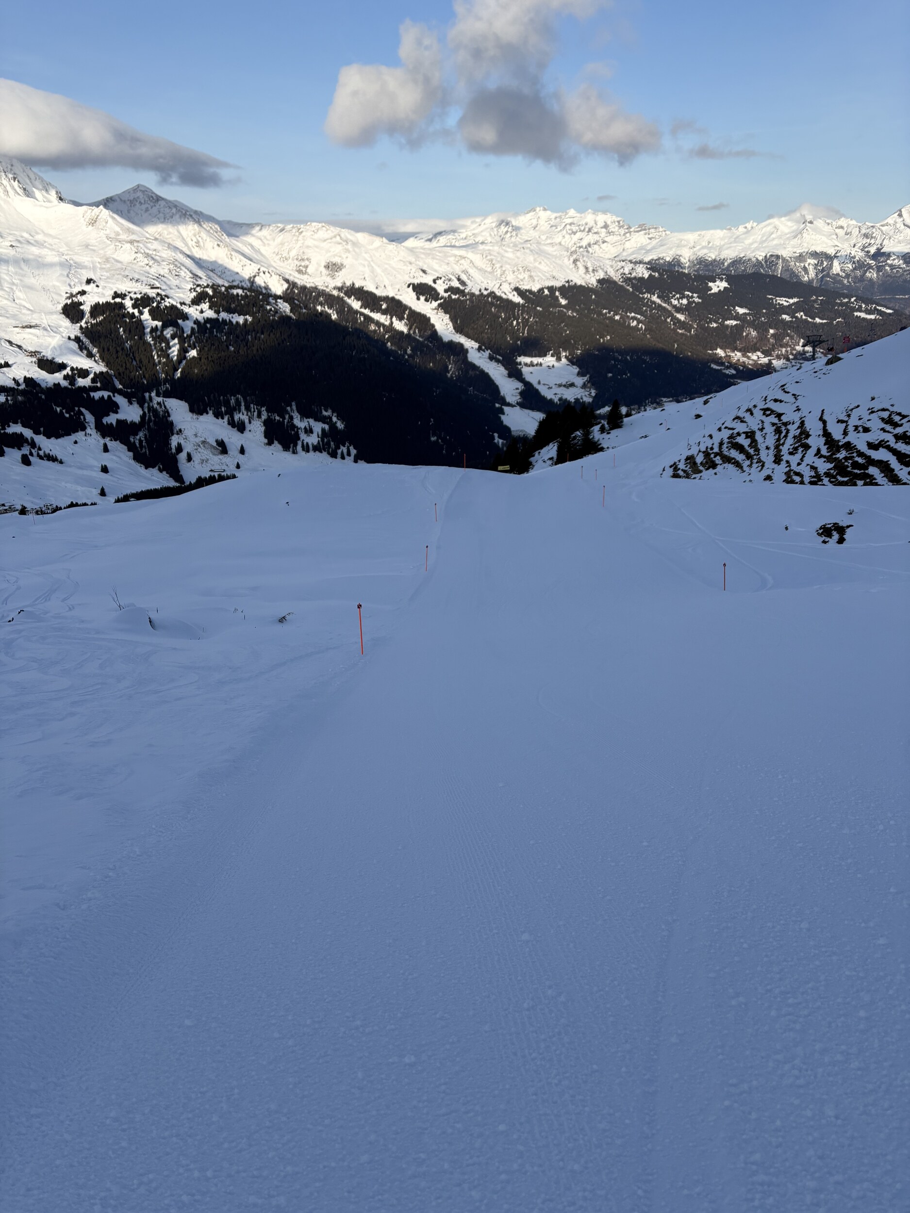 Die Talabfahrt nach Valbella macht Spass und hat genügend Schnee. Es ist ungewohnt, dort grossflächig auf technischem Schnee zu fahren. Im untersten Abschnitt hat die Piste zudem einen neuen Verlauf (siehe hier: viewtopic.php?p=52228#p52228). Der Schlepplift ist aber tatsächlich extrem langsam unterwegs.