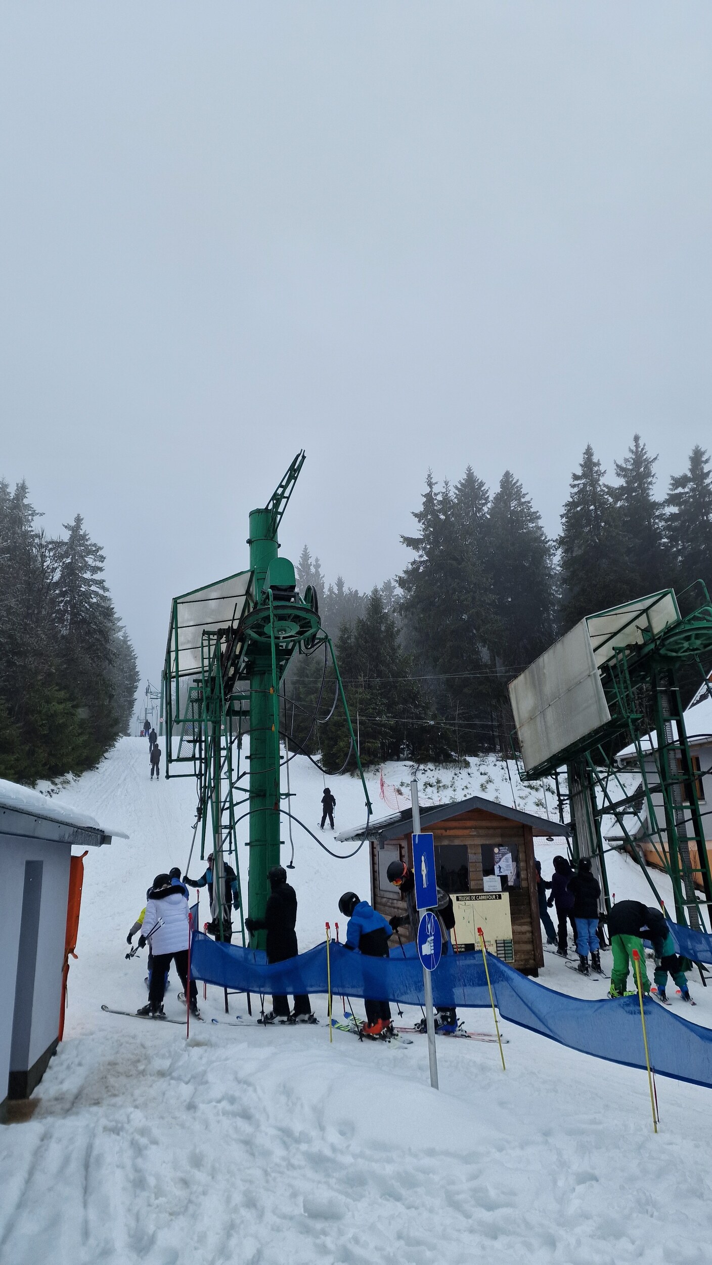 Die beiden Carrefour Lifte welche mit Abstand am stärksten frequentiert waren. Der linke Lift lief dabei auch sehr beachtlich schnell, mindestens 3m/s. Als die Skikurse vorbei waren konnte man dann auch ohne lange Wartezeit fahren.