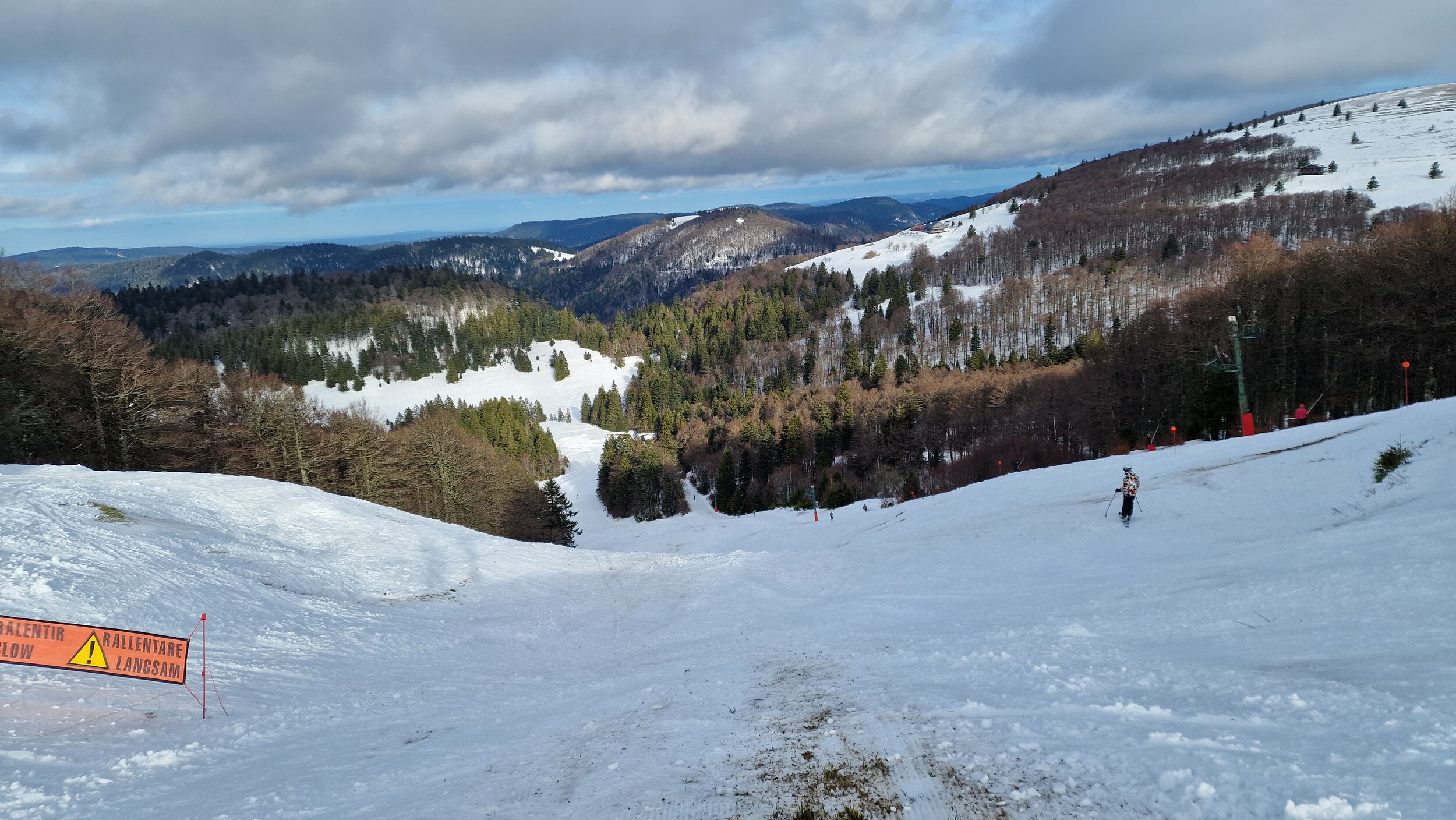 Ich war heute in La Bresse unterwegs und zum ersten mal bei Vollbetrieb. Das macht tatsächlich einen riesen Unterschied, denn mit ausreichend Naturschnee kann La Bresse sehr viele unterschiedliche Abfahrtsmöglichkeiten bieten. Bin echt sehr positiv überrascht worden, obwohl ich das Gebiet eigentlich schon kenne. Der Tag hat richtig Spaß gemacht und die Pisten haben trotz warmer Temperaturen überraschend gut gehalten. An einigen reinen Naturschneepisten kommen bereits deutliche braune Stellen hervor, aber alle ohne Steine weshalb das kein Porblem war. Alles geöffnete Pisten konnte man gut befahren. Für einen Dienstag war es überraschend voll, aber natürlich nicht so voll dass man hätte anstehen müssen.